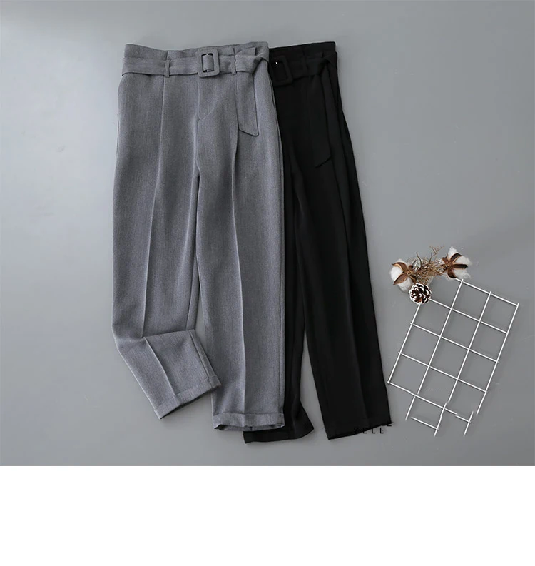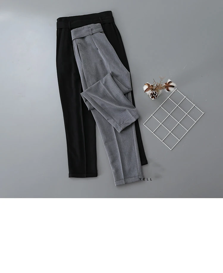 Yipinpay 2023 Korean Fashion Woman's Suits Pants Slim Vintage Street Leisure Crimping Harem Pants Female Belt Chic Pantalones