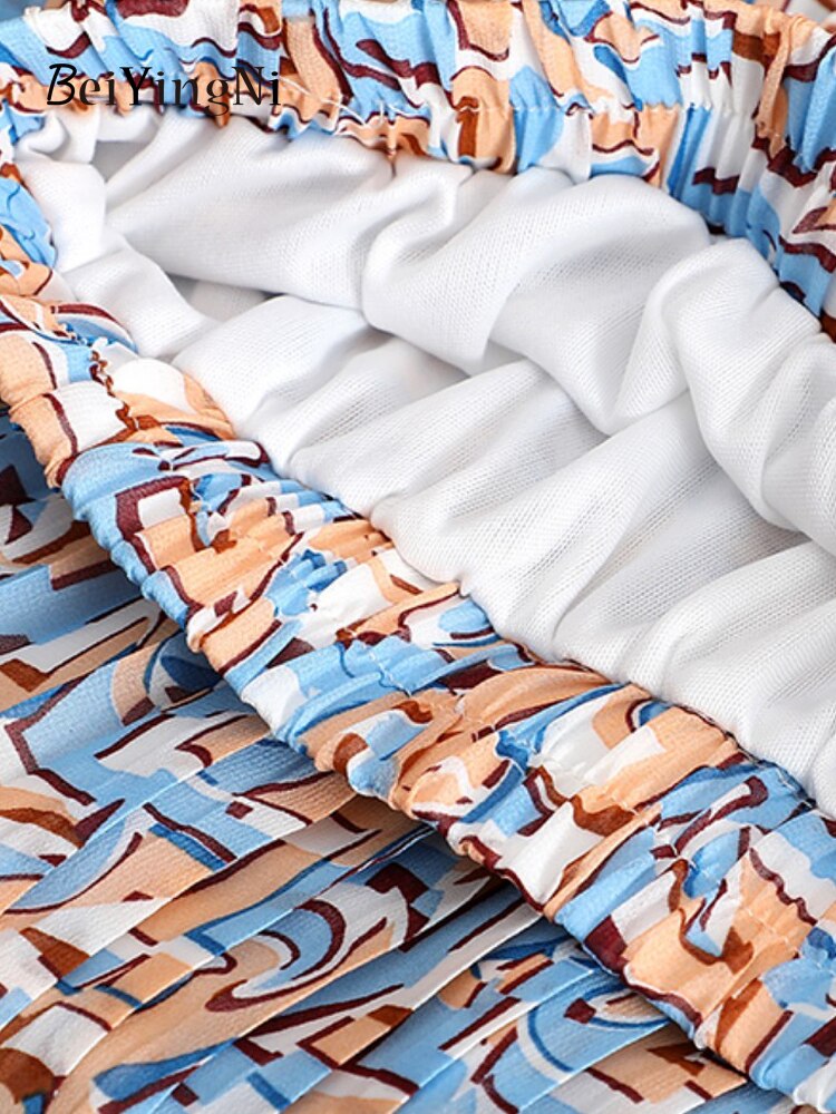 yipinpay 2023 Korean Stylish Pleated Skirts for Women Fairy Spring Summer Midi Skirt Ladies Printed Slim A-line Faldas Female