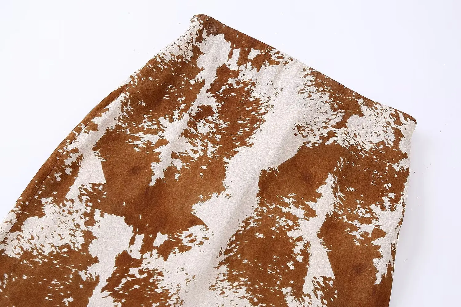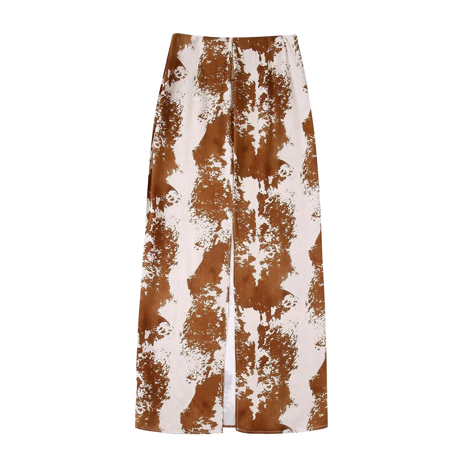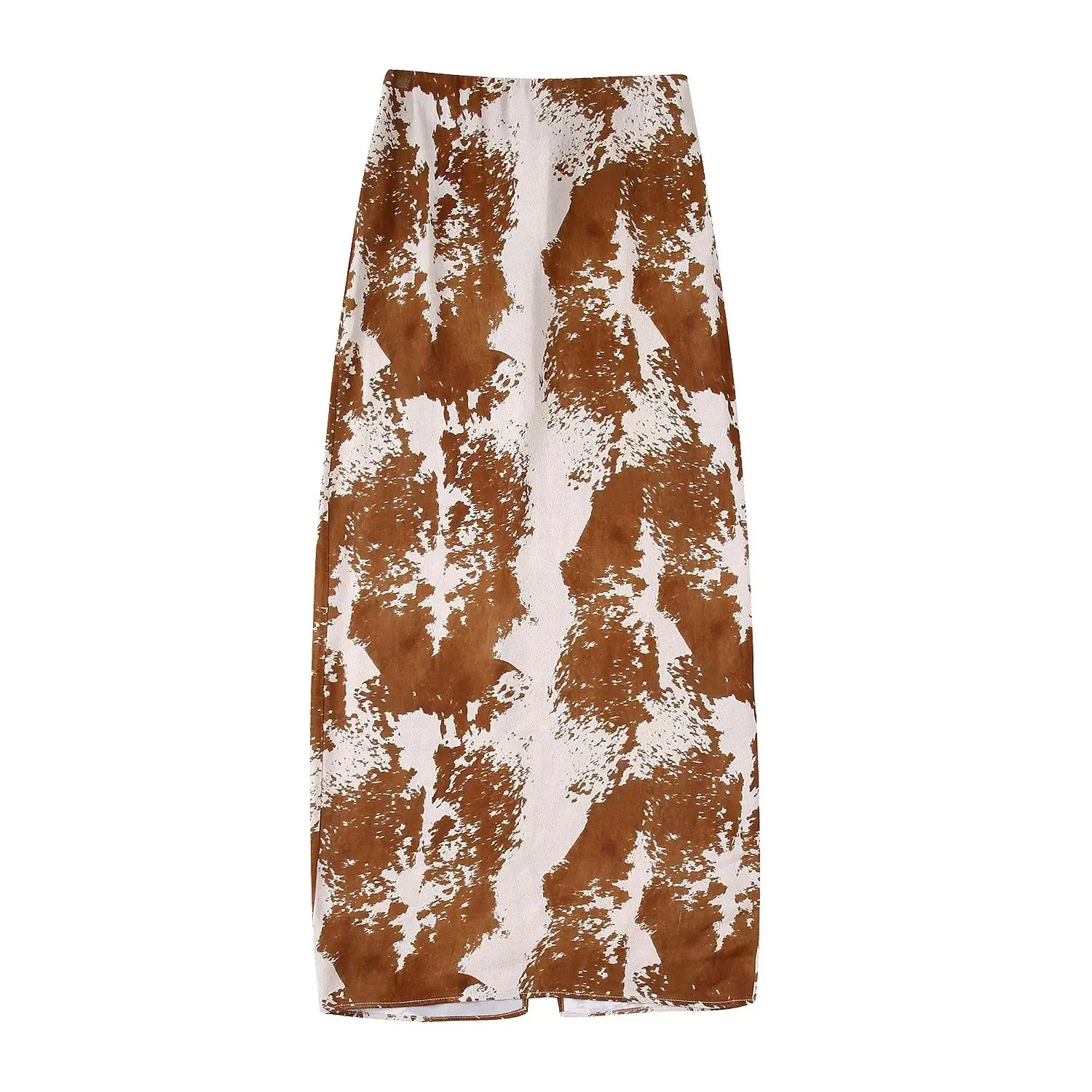 Yipinpay 2023 Ladies Printed Straight Skirts Spring Autumn High Waist Back Split Skirt Female Zipper Midi Pencil Skirt