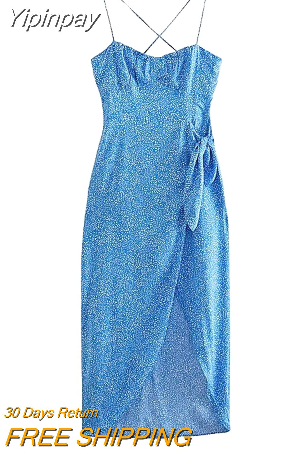 Yipinpay 2023 Leopard Print Corset Dress Woman Knot Slip Long Dress Women Summer Backless Sexy Midi Dresses Elegant Party Dresses
