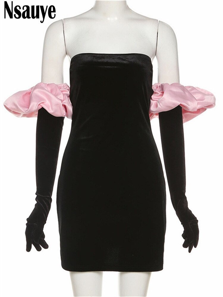 yipinpay 2023 Long Puff Sleeve Off Shoulder Autumn Winter Elegant Evening Party White Black Mini Dress Sexy Women Kawaii Dresses