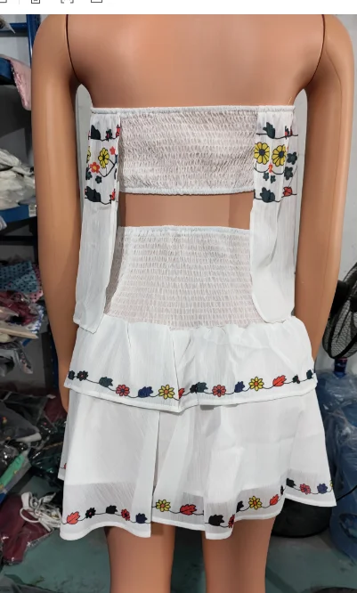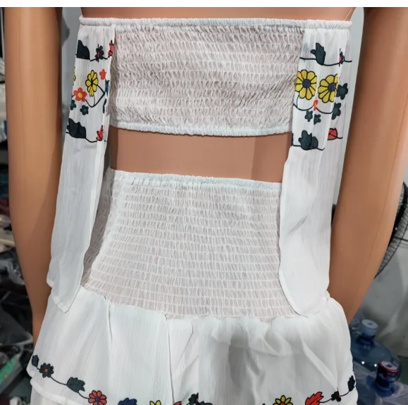 Yipinpay 2023 New Fashion Floral Print Romper Women White Bandeau Layered Ruffles Rompers
