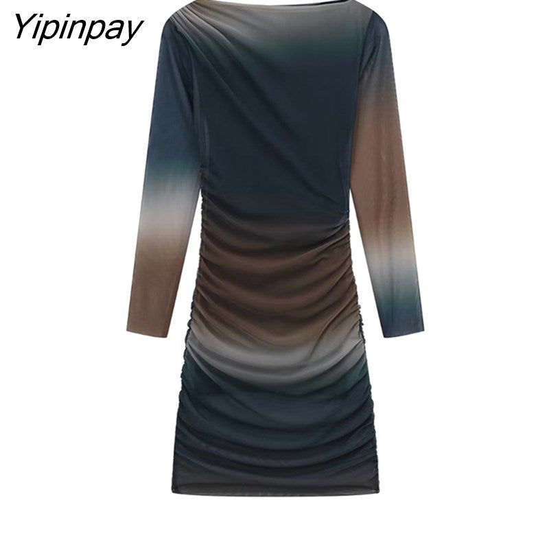 Yipinpay 2023 New Fashion Tulle Dresses Spring Summer O-neck Slim Party Sexy Vestidos Long Sleeve Back Zipper Mini Dresses