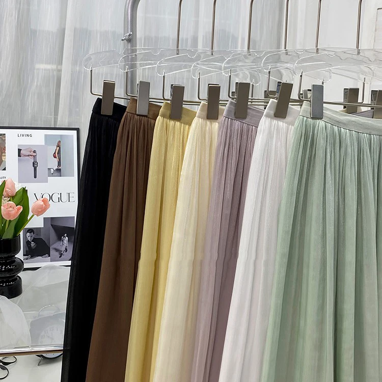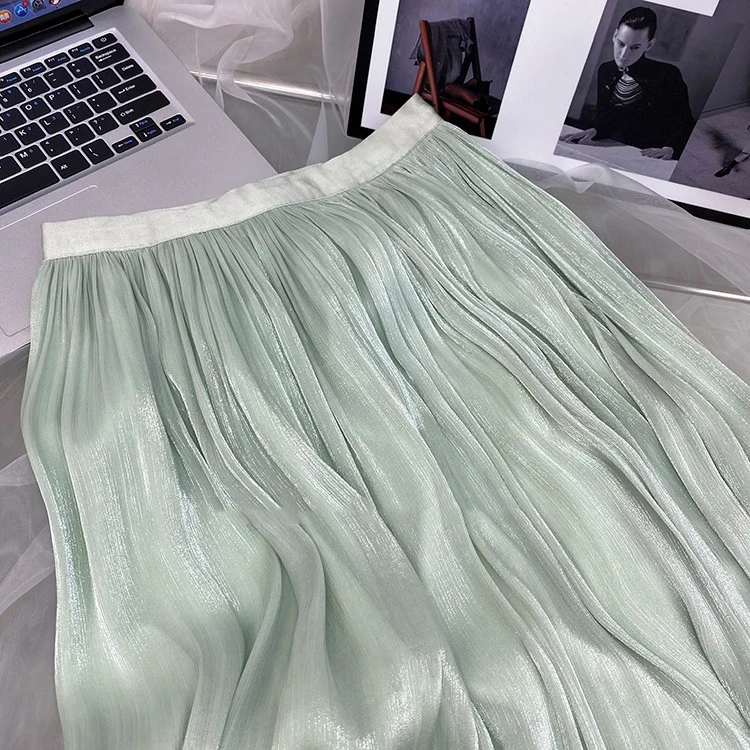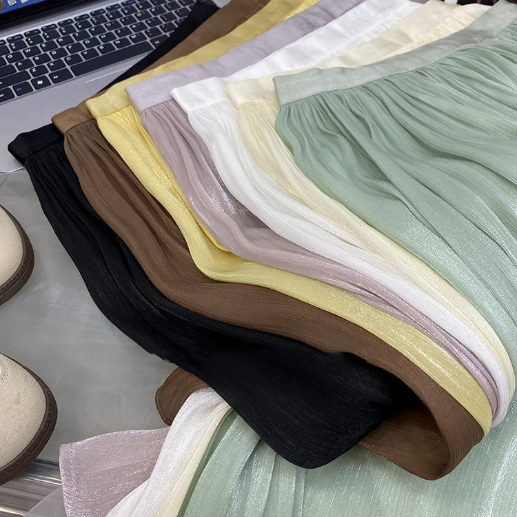 Yipinpay 2023 New Stylish Chiffon Pleated Skirt Women Solid Color Elegant Luxury Princess Fairy Midi Skirts Ladies Gentle Jupes