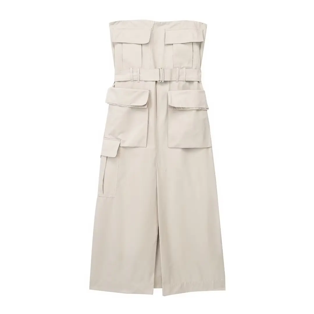 Yipinpay 2023 Off Shoulder Long Dress Women Summer Sleeveless Dress Woman Strapless Backless Midi Dresses Cargo Casual Dresses