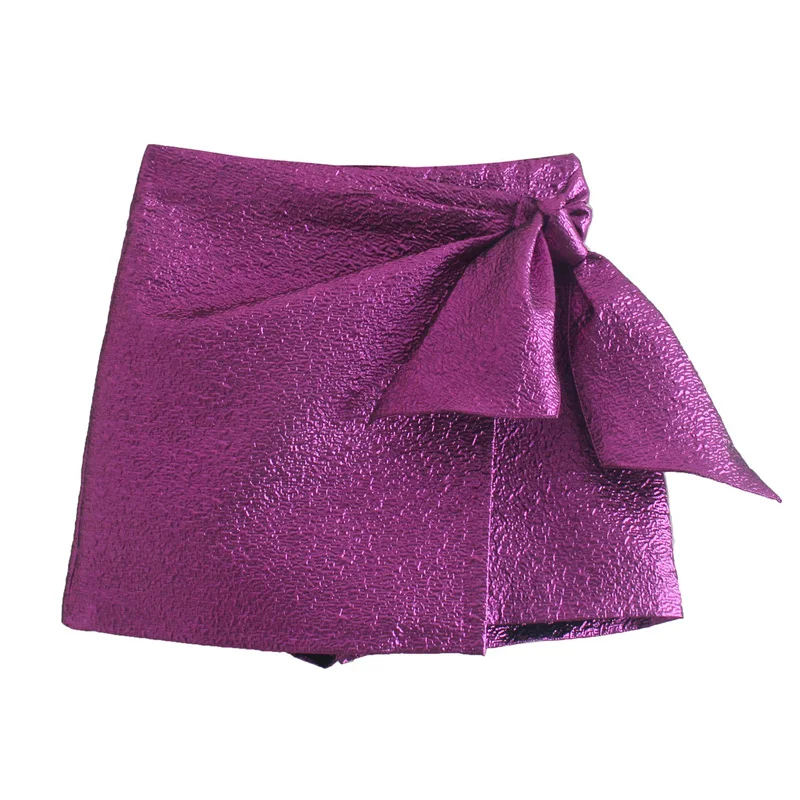 Yipinpay 2023 Purple Bow Skirt Shorts Woman Knot High Waist Skorts Sexy Fashion Shorts Women Y2k Streetwear Shiny Party Bottoms