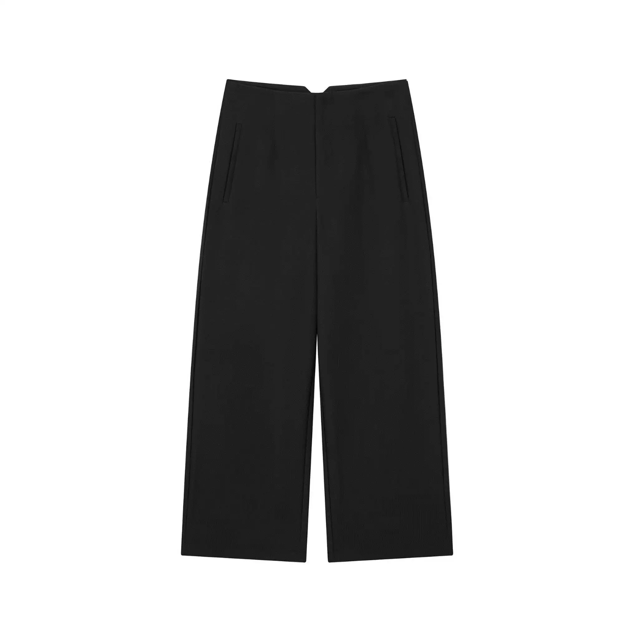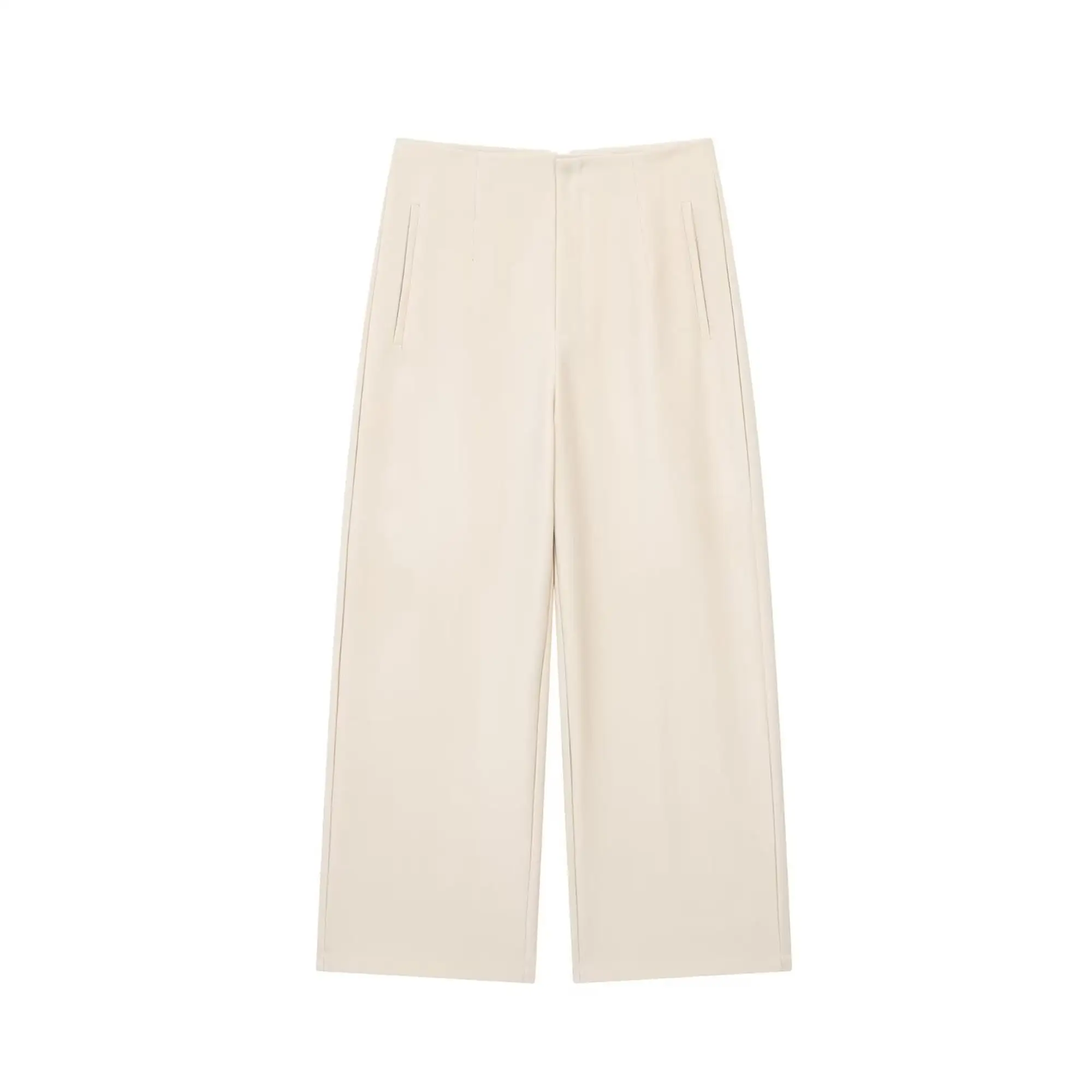 Yipinpay 2023 Solid Straight Pants For Women Fashion Causal High Waist Wide Leg Pants High Street Fashion Causal Trousers Two Colors