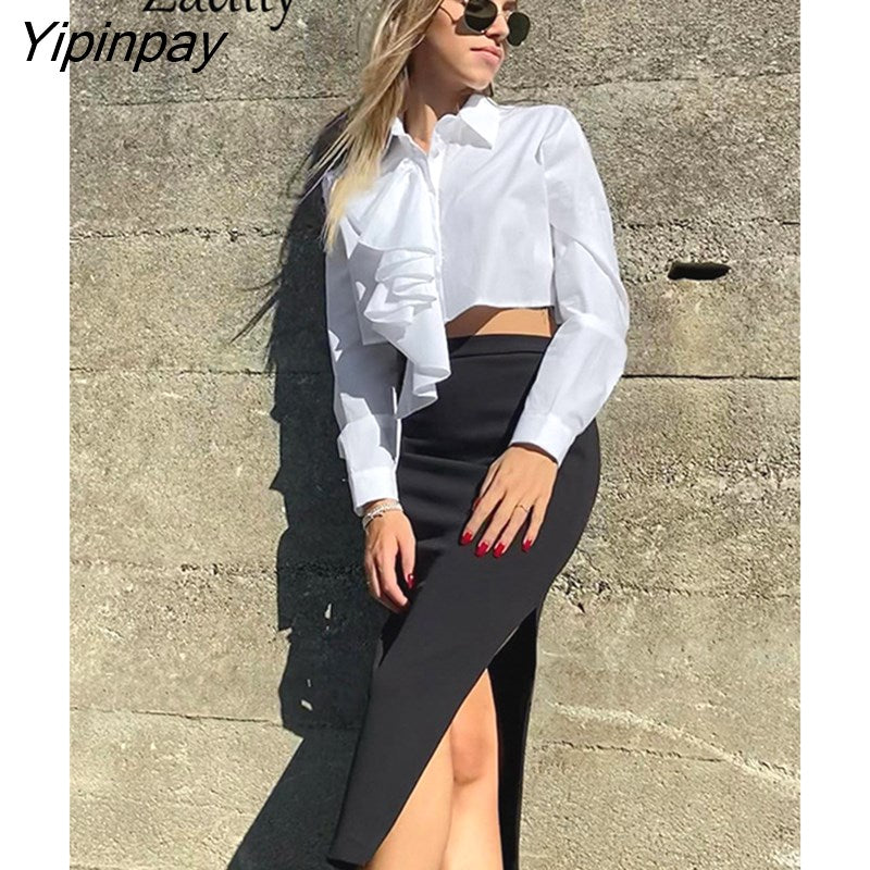 Yipinpay 2023 Spring Elegant Long Sleeve Women Whiter Shirt England Style Y2K Ruffles Button Up Woman Crop Tops Blouse Clothing