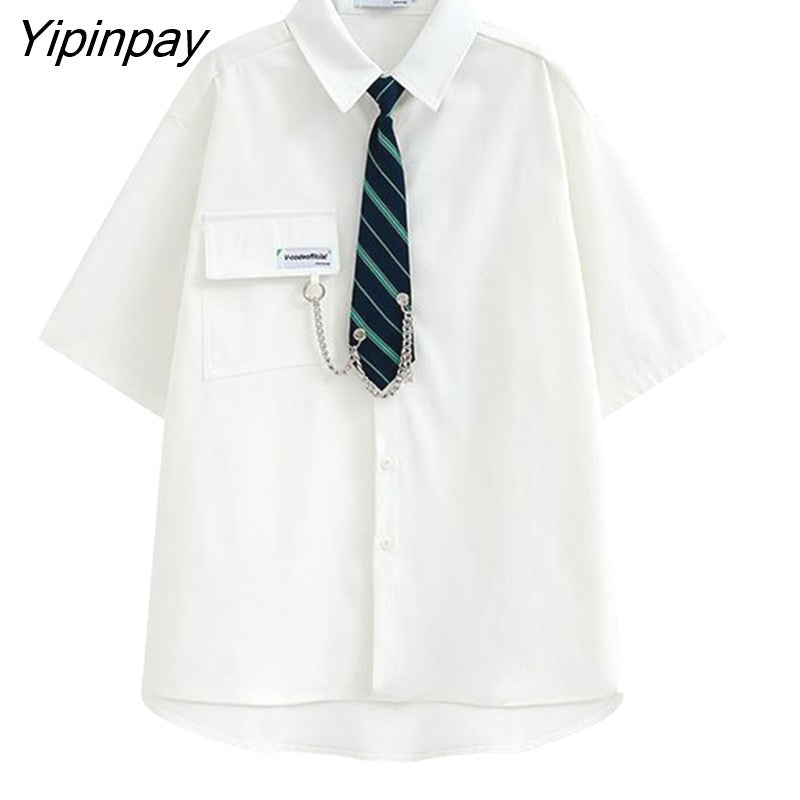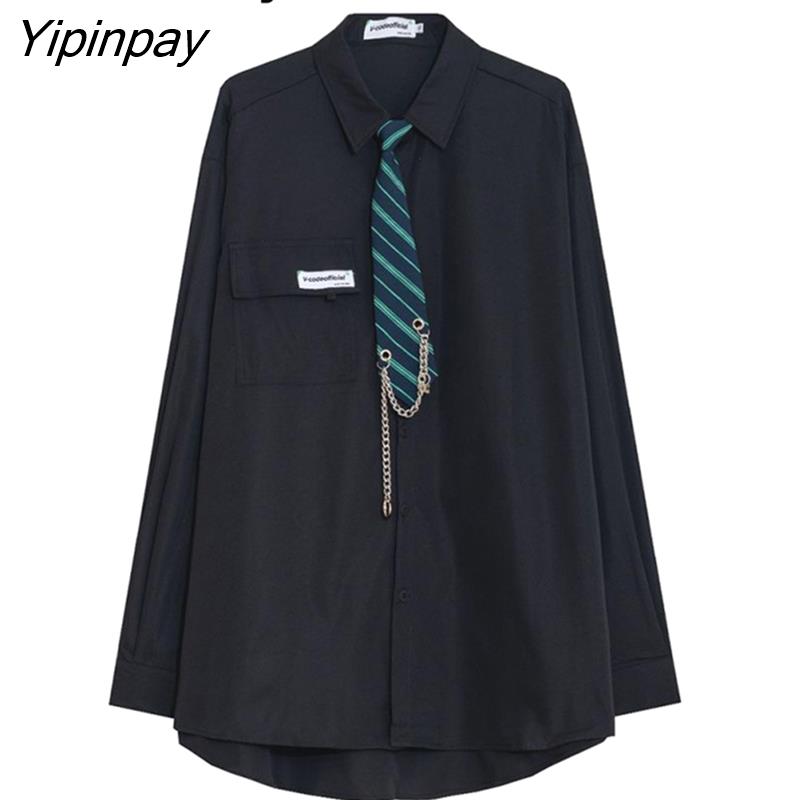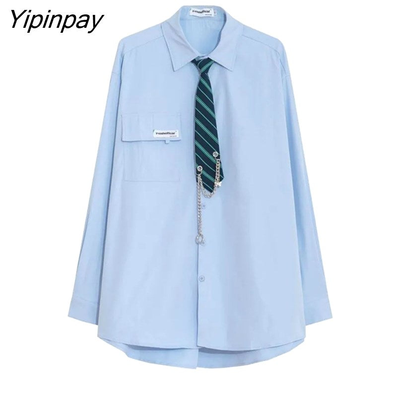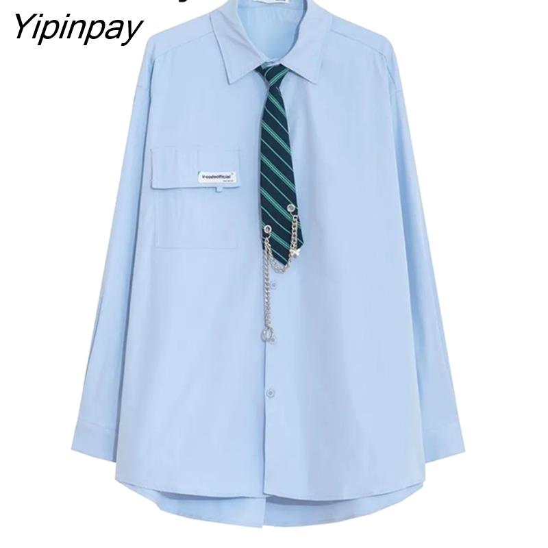 Yipinpay 2023 Spring Japan Style Tie Button Up Solid Shirt Blouse Women JK Long Sleeve Loose Ladies Shirts Oversize Streetwear Top