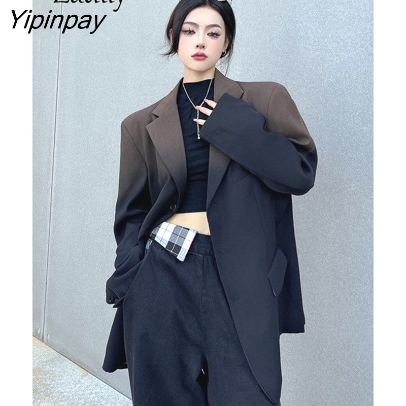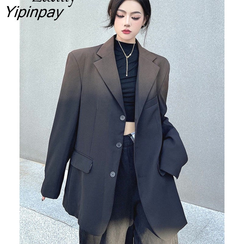 Yipinpay 2023 Spring New In Gradient Loose Women Blazer Streetwear Oversize Long Sleeve BF Ladies Suit Winter Female Blazers