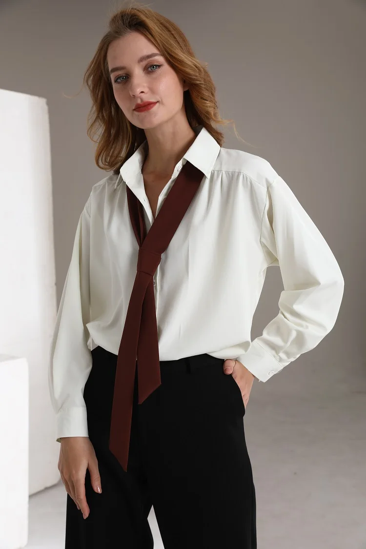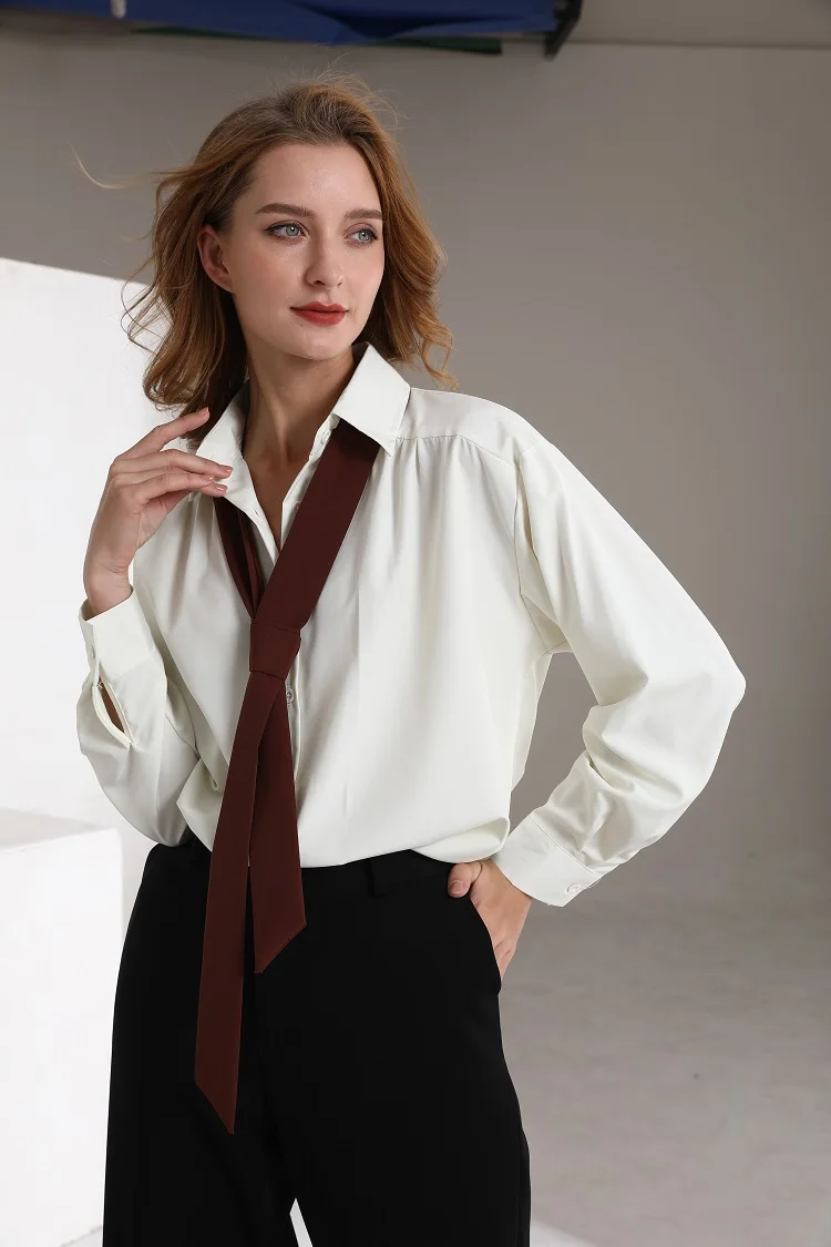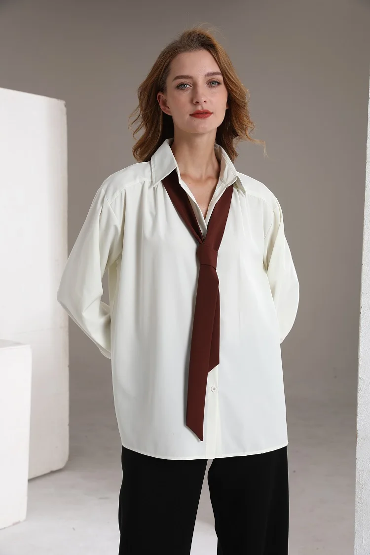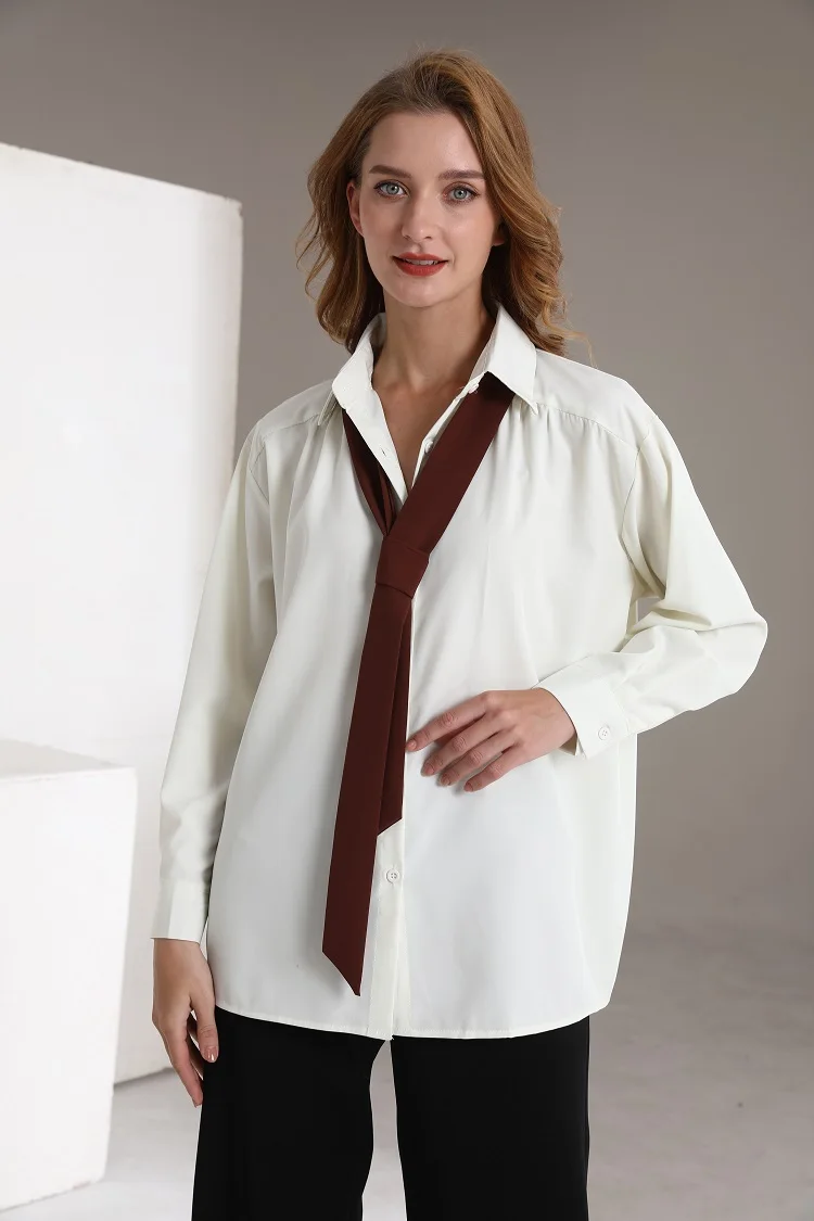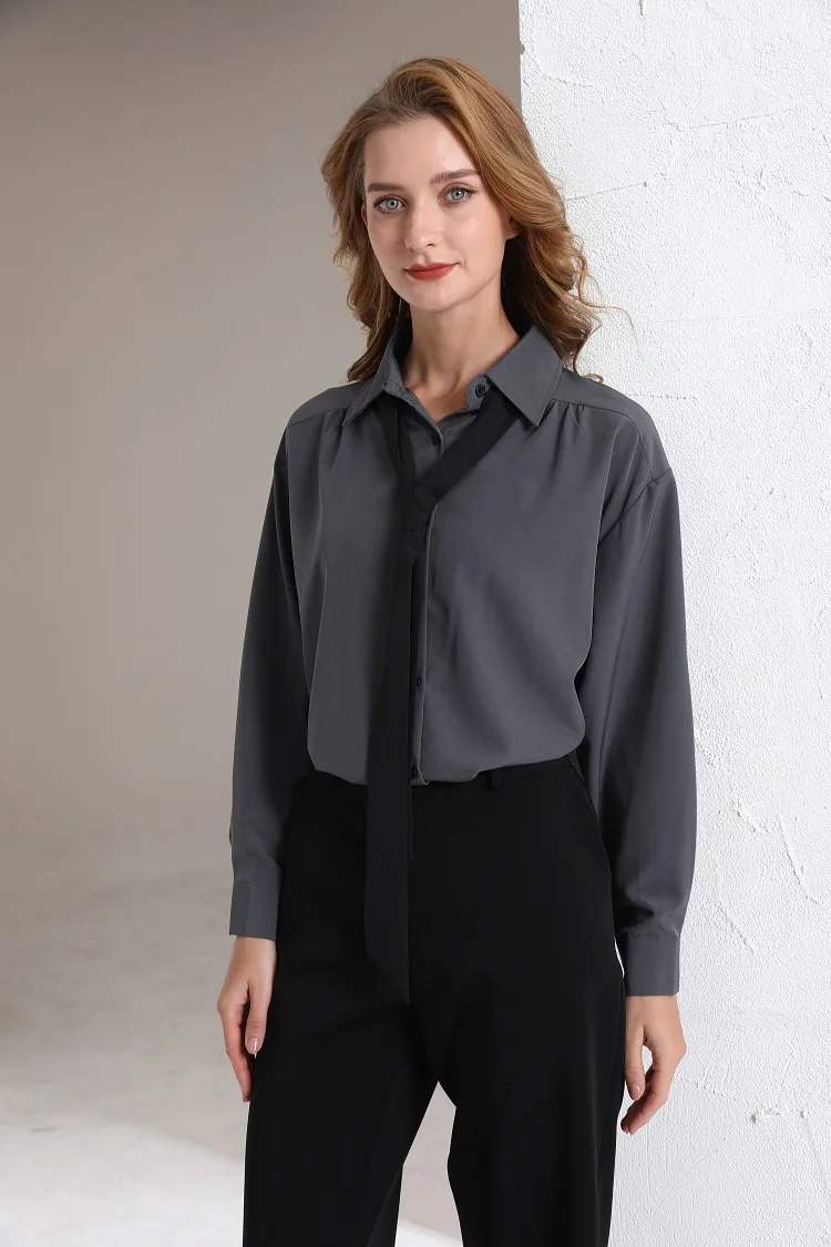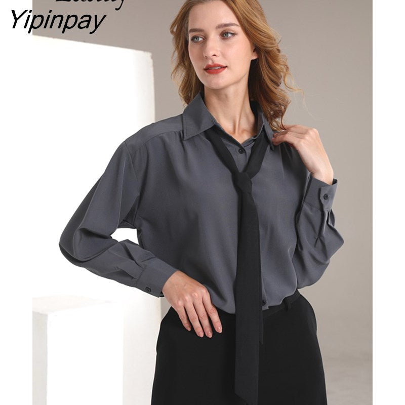 Yipinpay 2023 Spring New In Office Lady Long Sleeve Shirt Women Korean Style Button Up Tie Loose Work Blouse Tunic Female CLothing