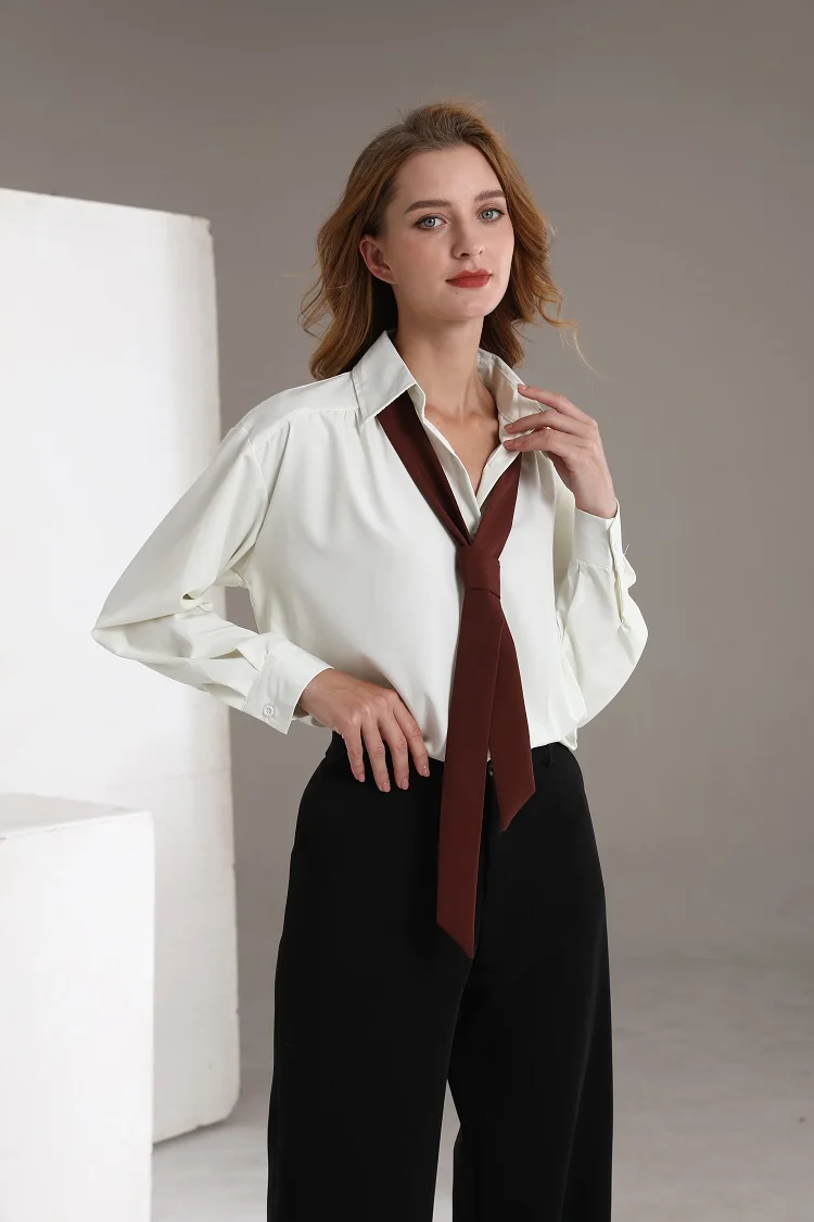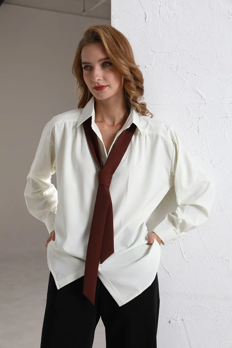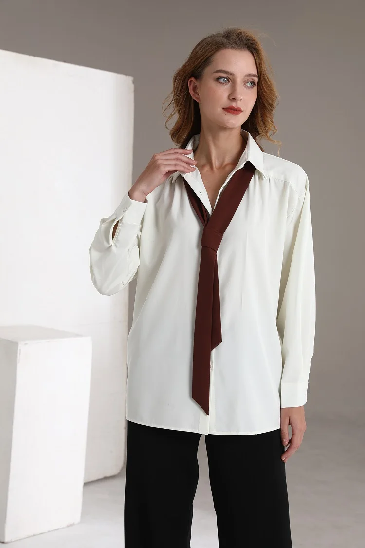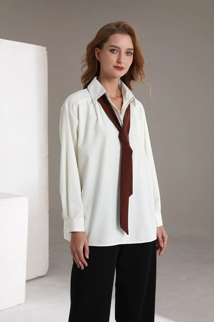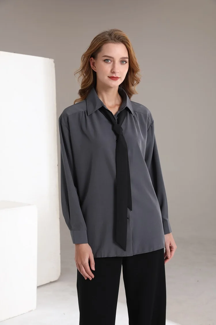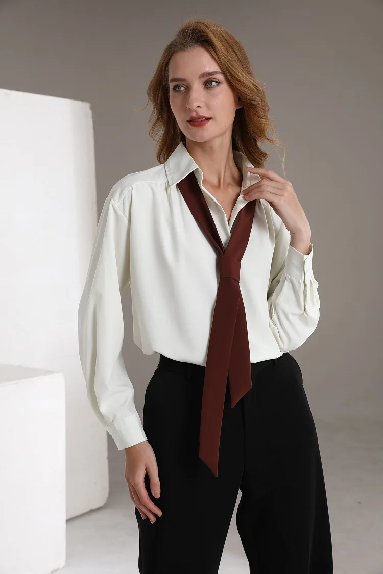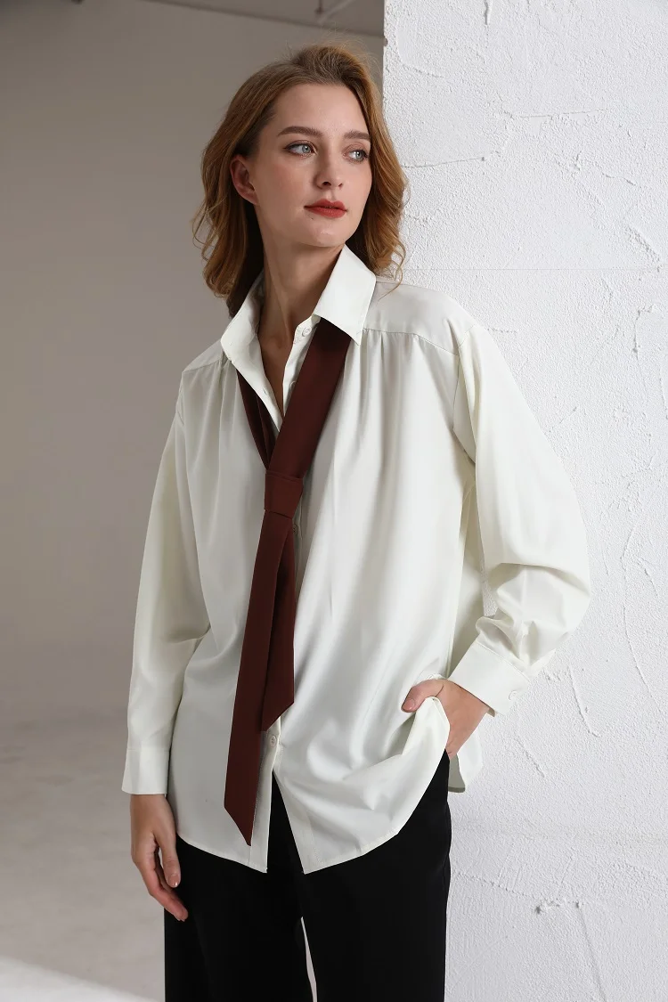 Yipinpay 2023 Spring New In Office Lady Long Sleeve Shirt Women Korean Style Button Up Tie Loose Work Blouse Tunic Female CLothing