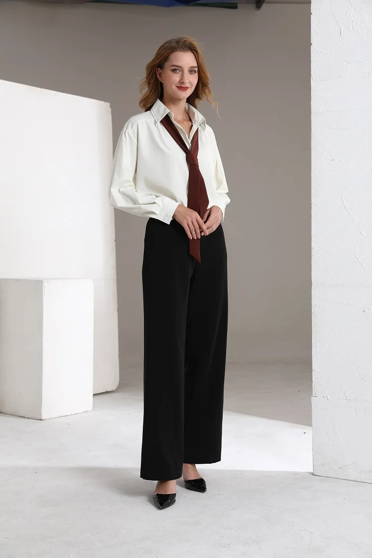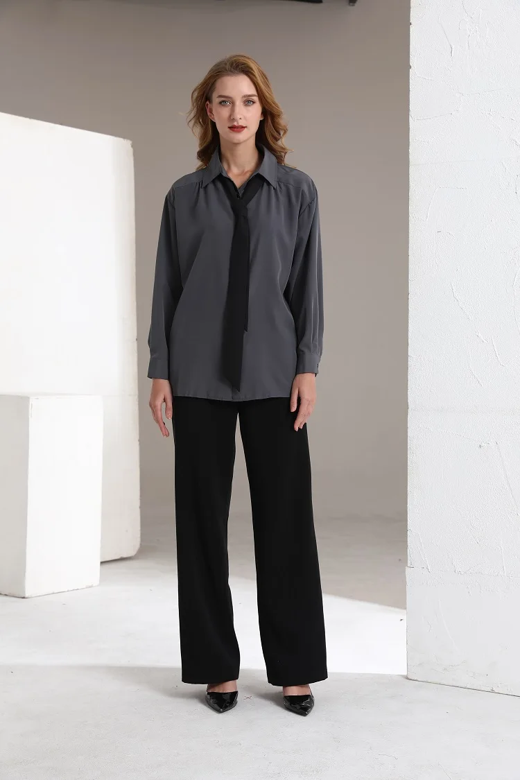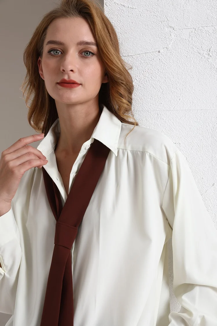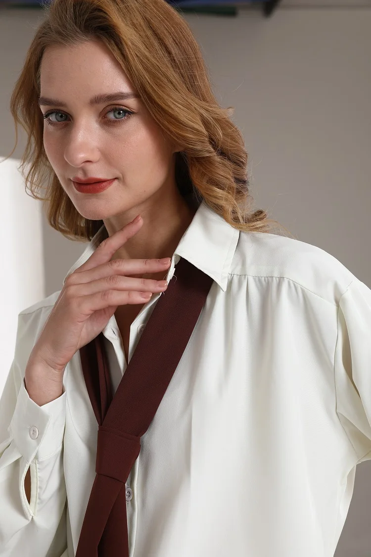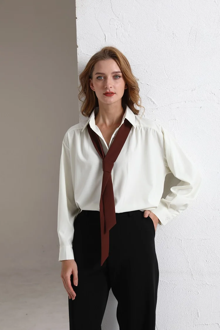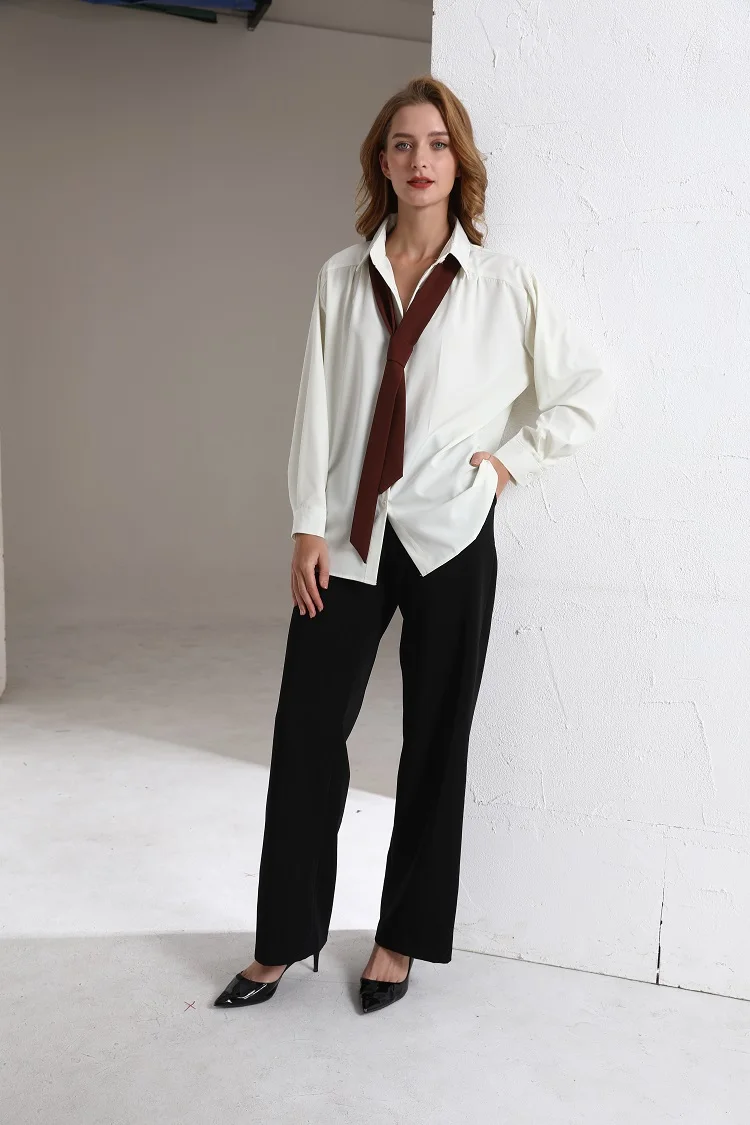 Yipinpay 2023 Spring New In Office Lady Long Sleeve Shirt Women Korean Style Button Up Tie Loose Work Blouse Tunic Female CLothing