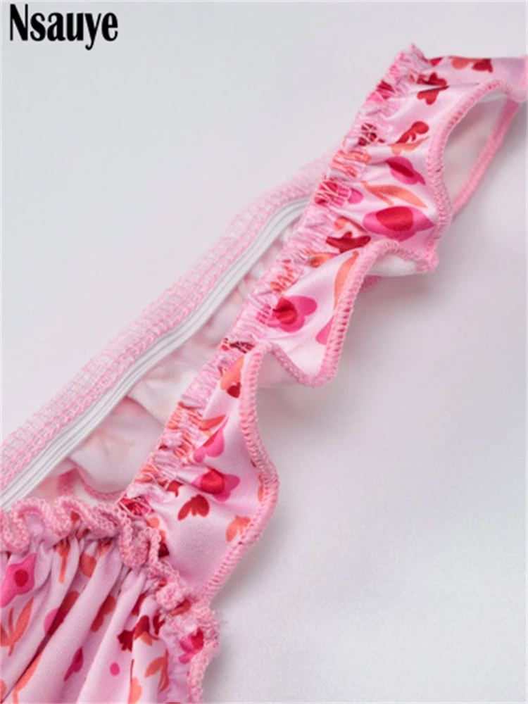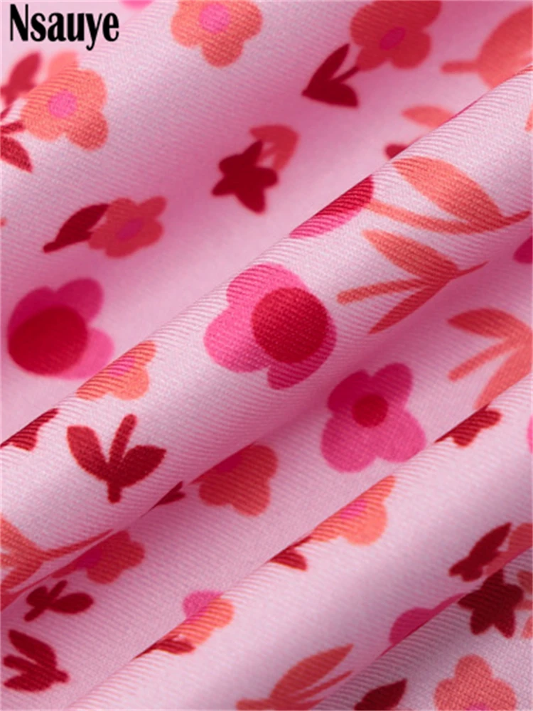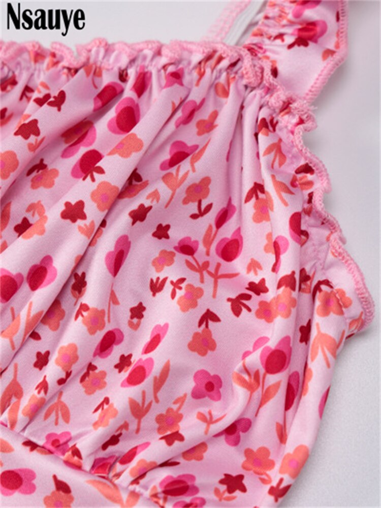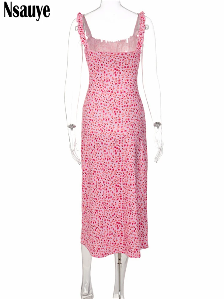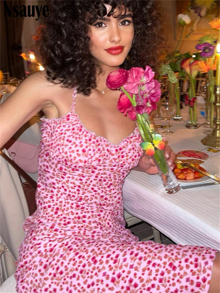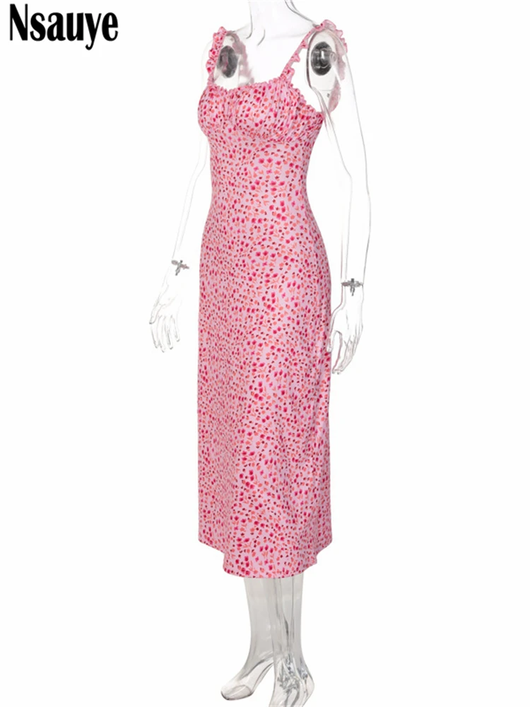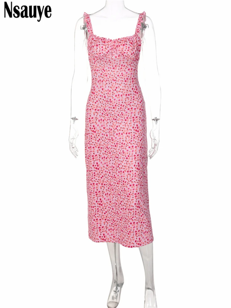 yipinpay 2023 Summer Beach Elegant Women Casual Pink Strap Print Floral Midi Dress Bodycon Women Ruched Party Sexy Club Dresses