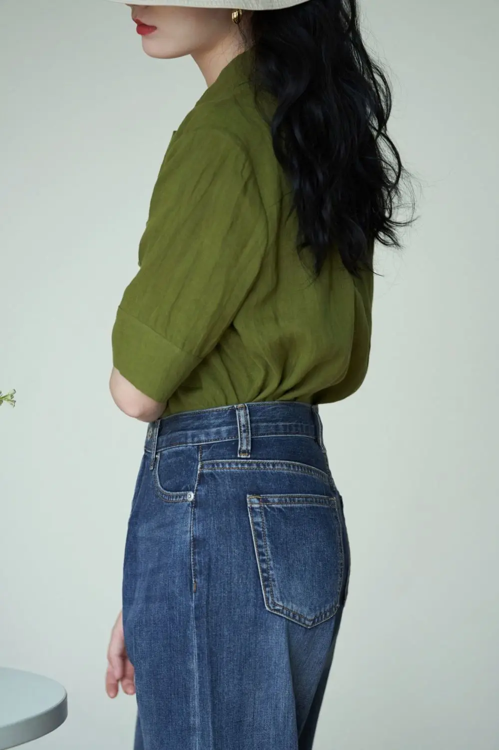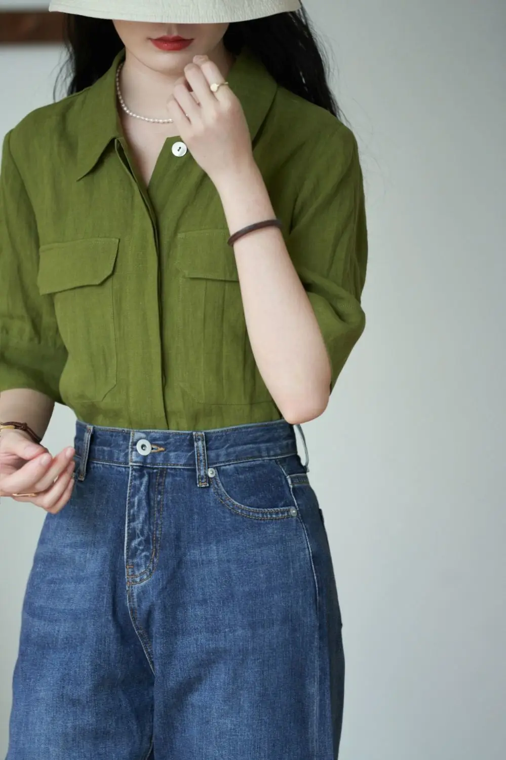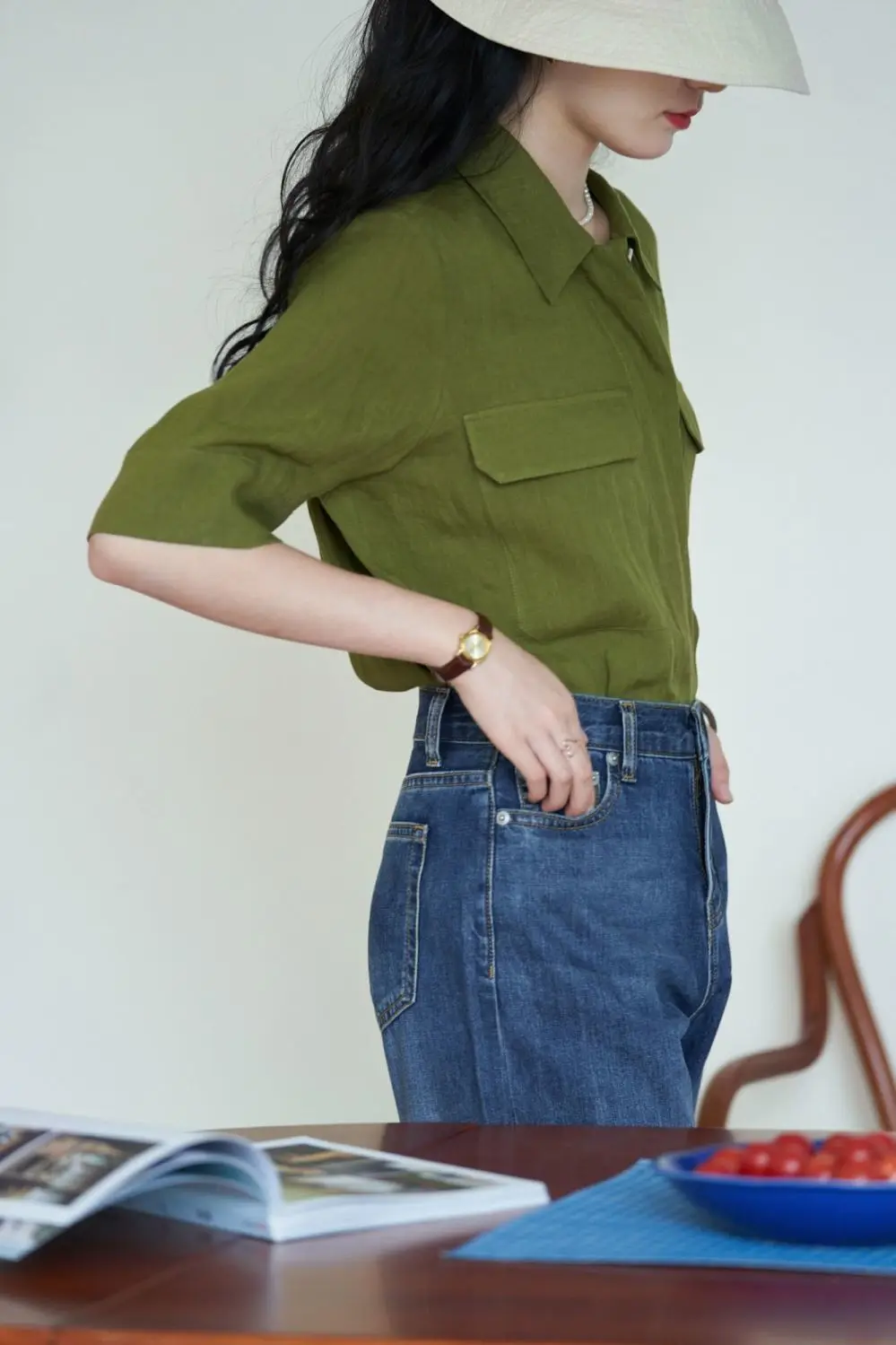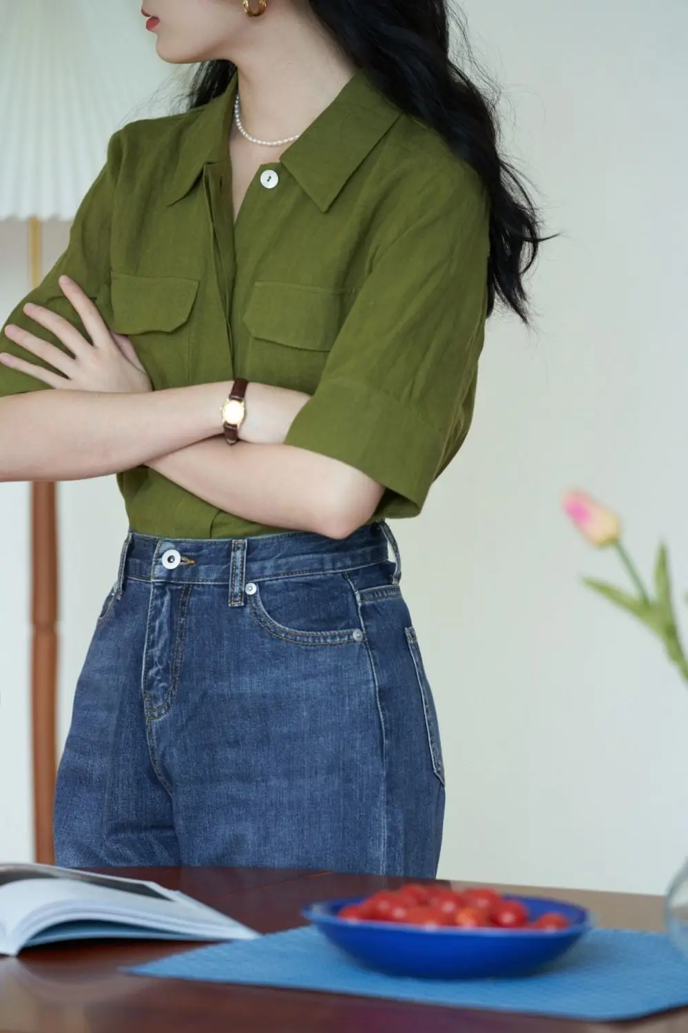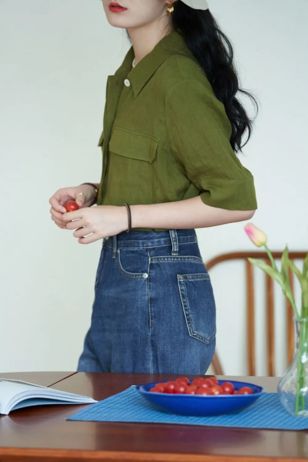 Yipinpay 2023 Summer Casual Short Sleeve Chiffon Shirt Women Vintage Pocket Button Ladies Ladies Blouse Female Clothing Tops