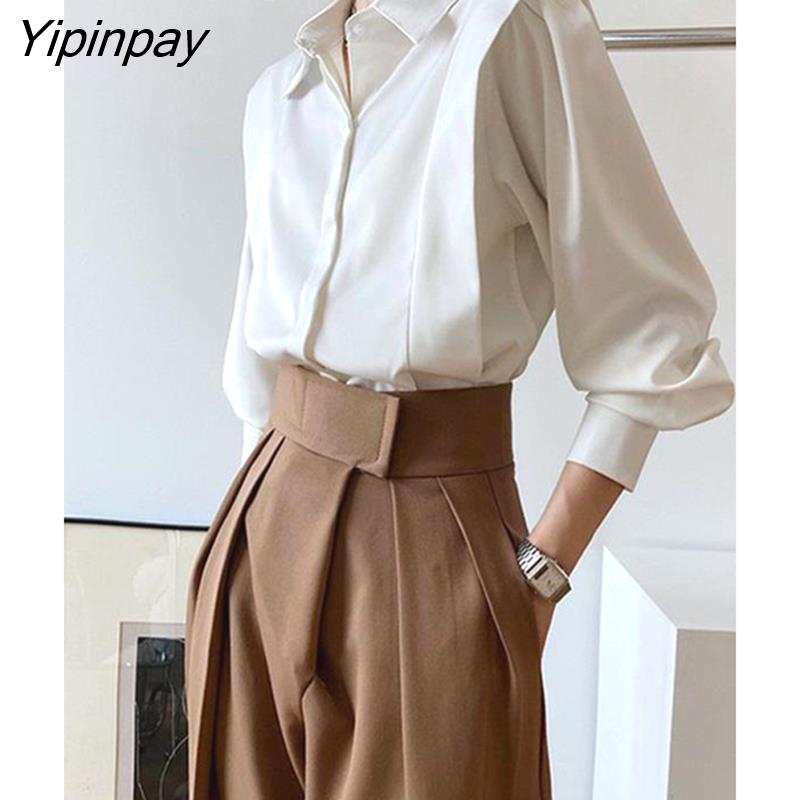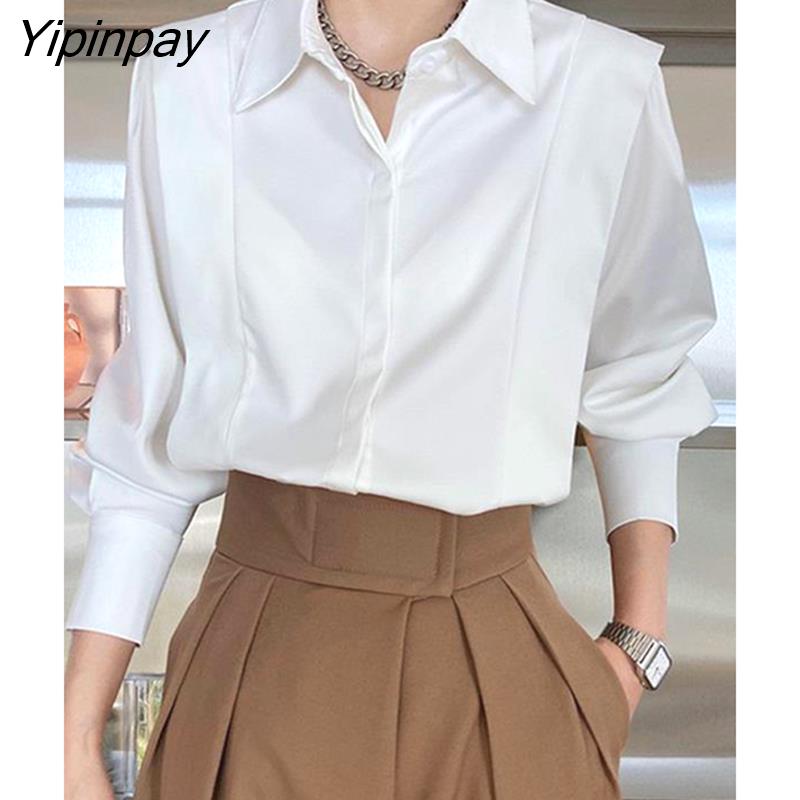 Yipinpay 2023 Summer Elegant Long Sleeve Solid Work Shirt Women Office Lady Button Up White Shirt Blouse Casual Female Clothes 920