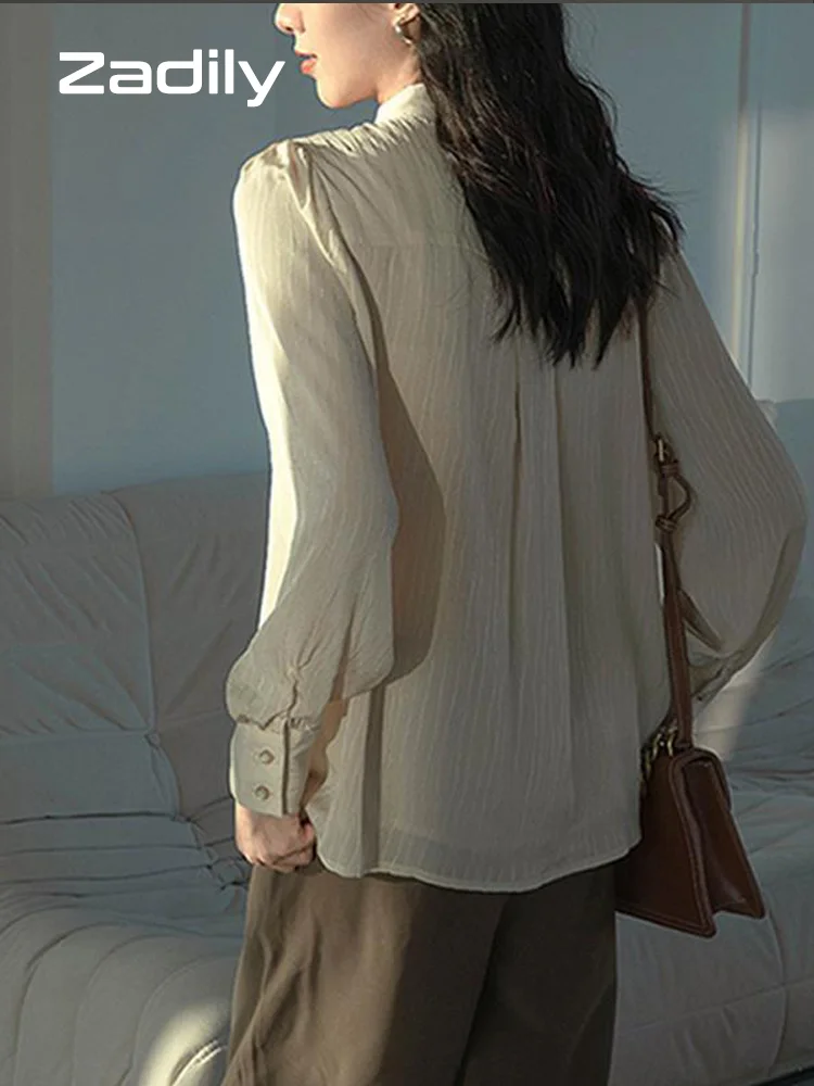 Yipinpay 2023 Summer Long Sleeve Women Chiffon Shirt Korean Style Stripe Button Ladies Blouse Office Lady Work Female Clothing