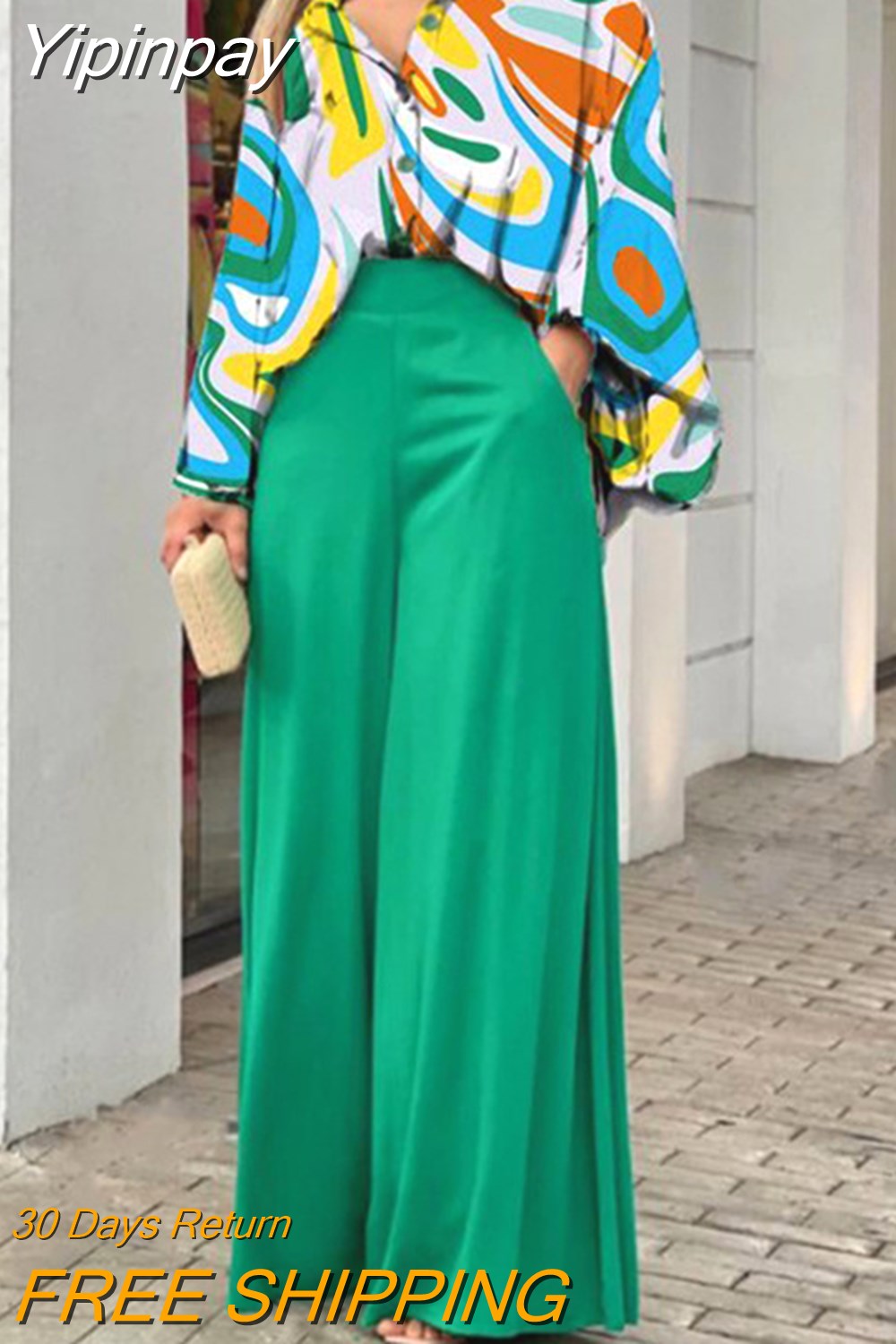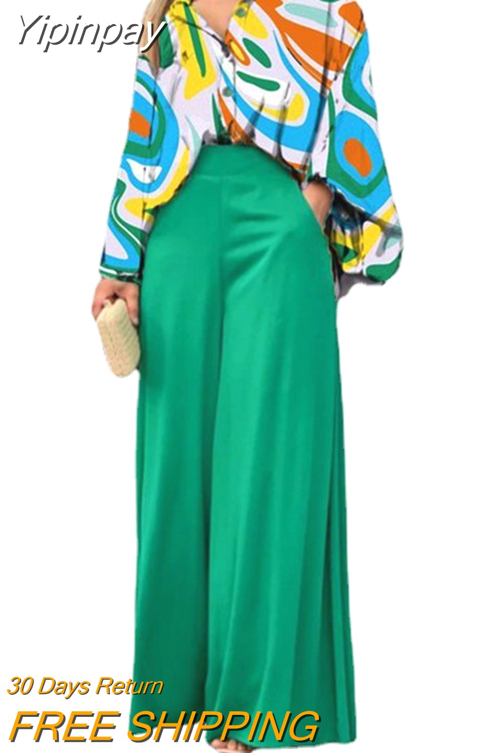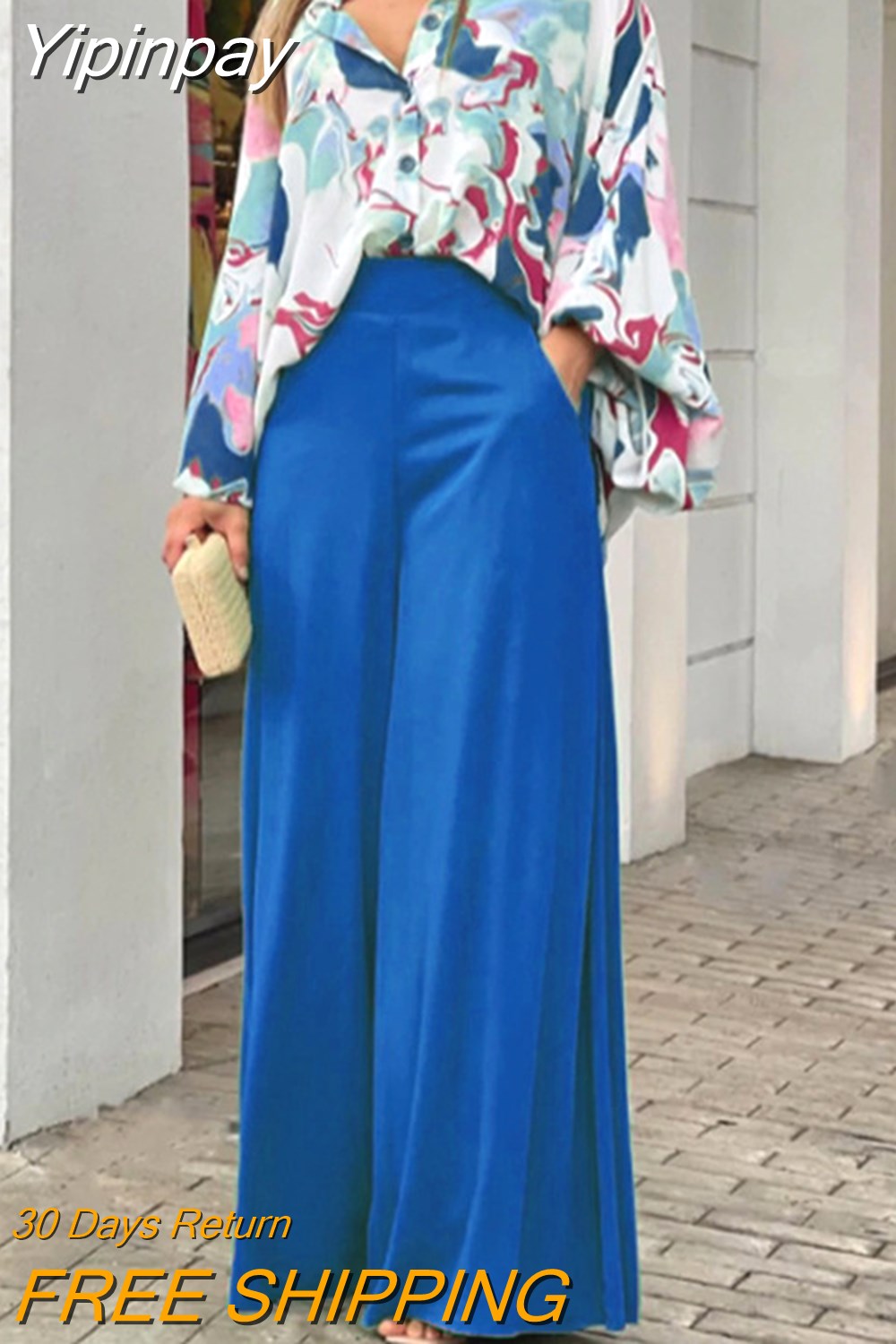 Yipinpay 2023 Summer Loose Large Size Casual Printed Shirt Top Wide Leg Pants Two Piece Set Female Suit Fashion Outfits