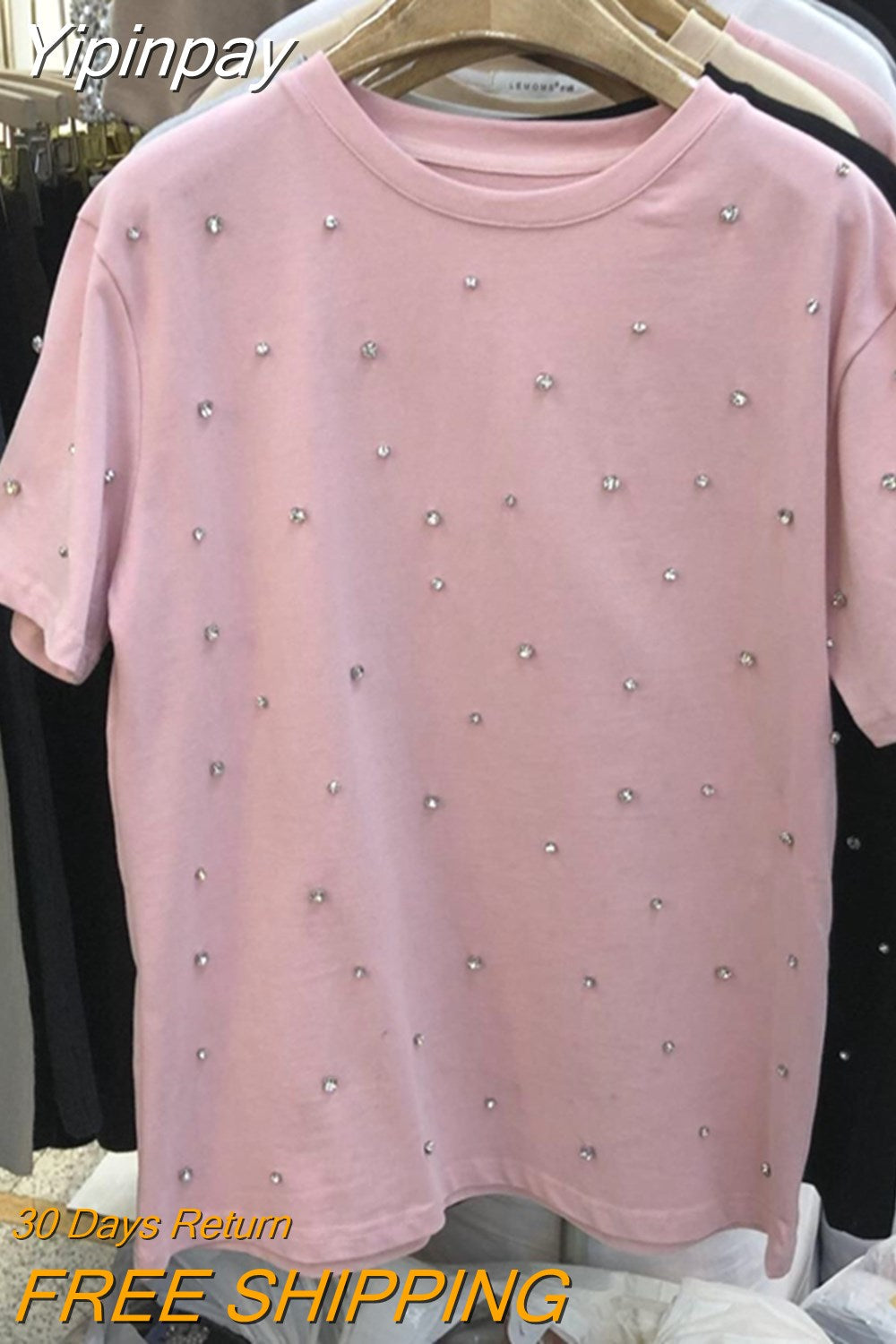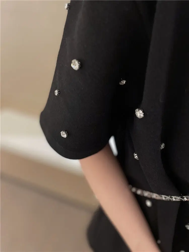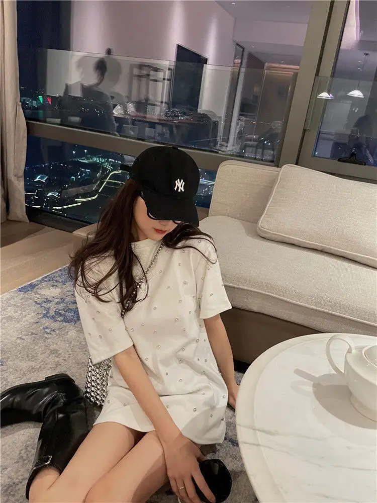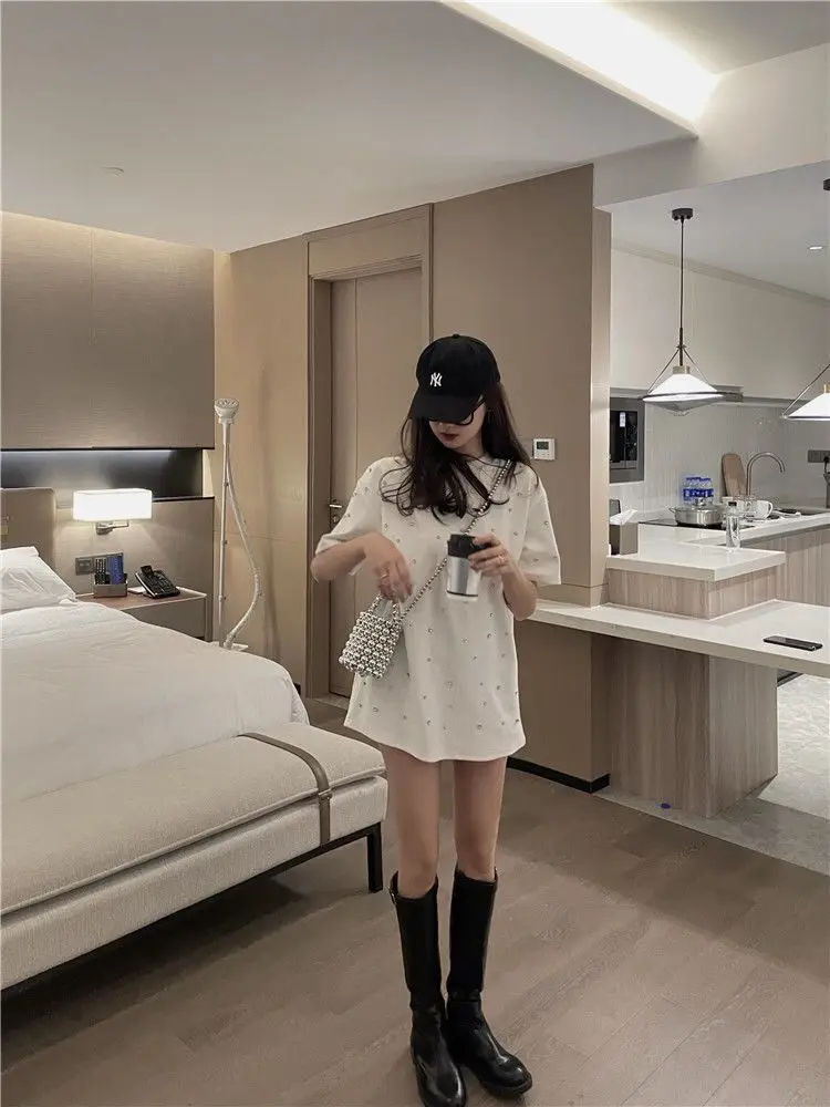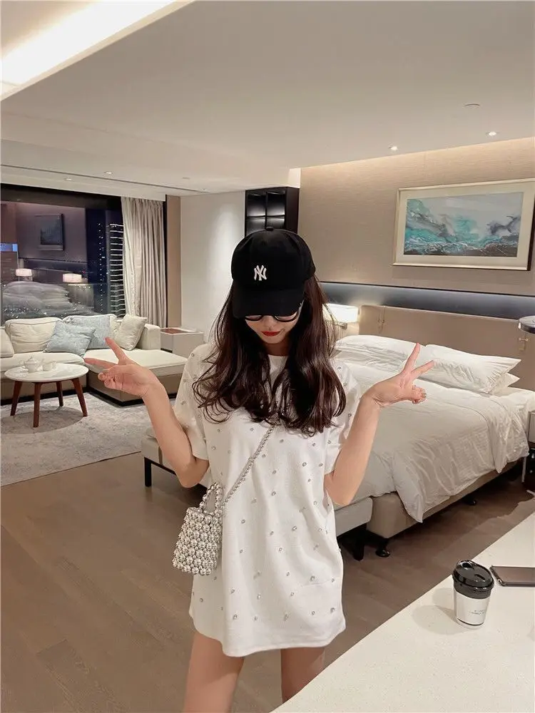Yipinpay 2023 Summer Women T-shirt Casual Loose Diamond Cotton Half Sleeve Tshirt Big Female Basic Tops Tees Heavy Industry 4XL