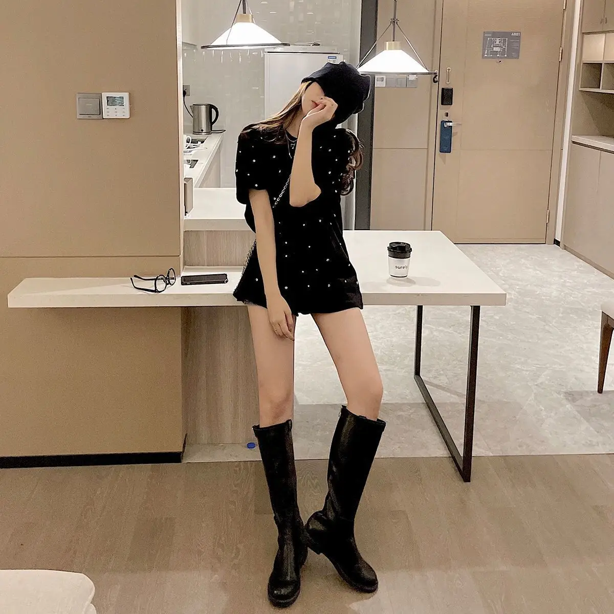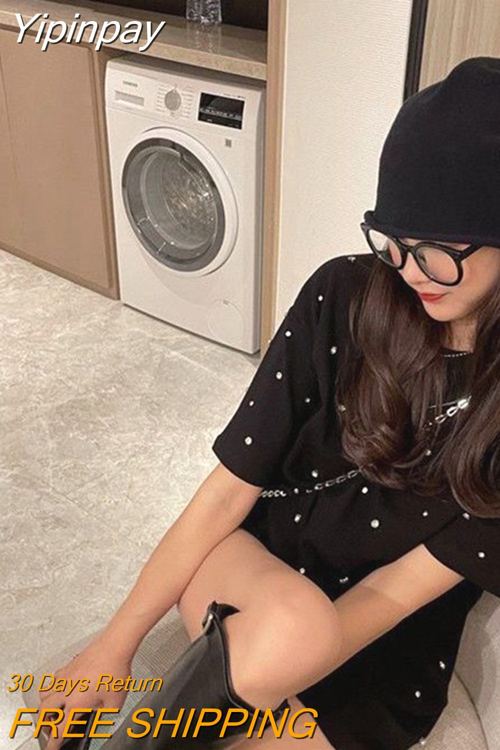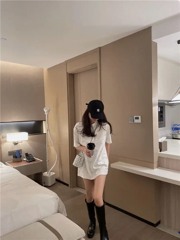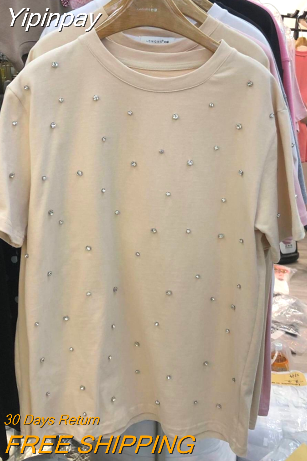 Yipinpay 2023 Summer Women T-shirt Casual Loose Diamond Cotton Half Sleeve Tshirt Big Female Basic Tops Tees Heavy Industry 4XL