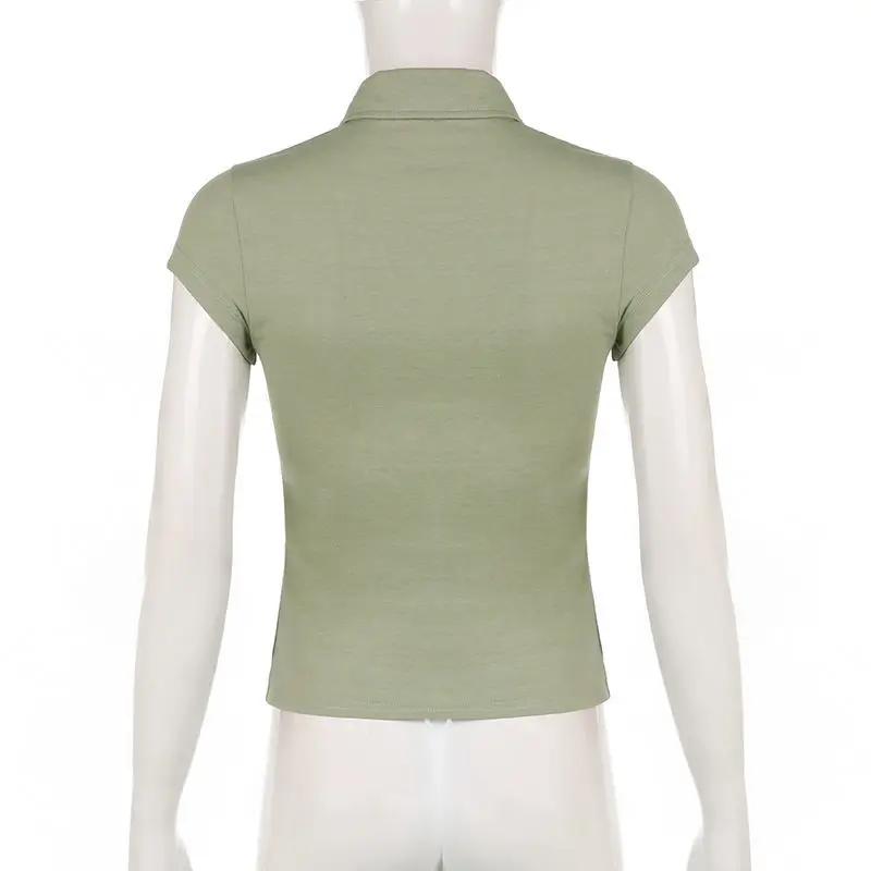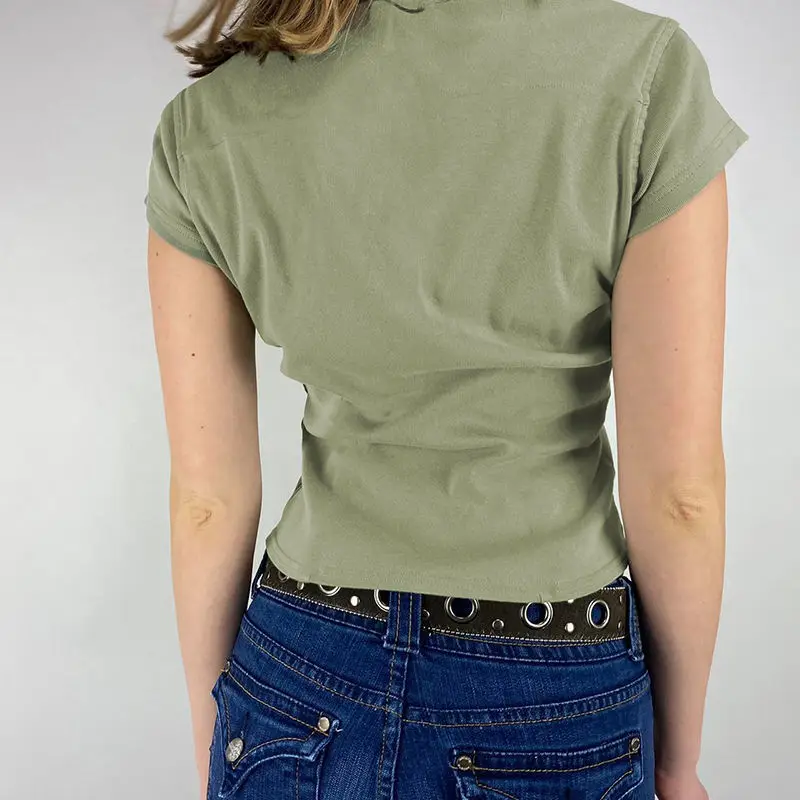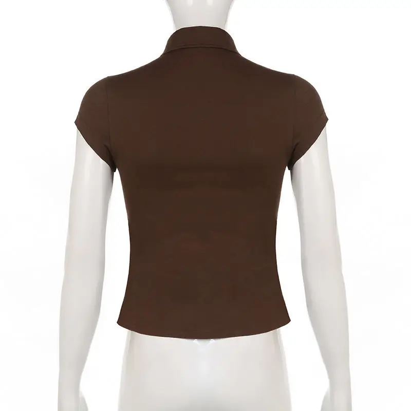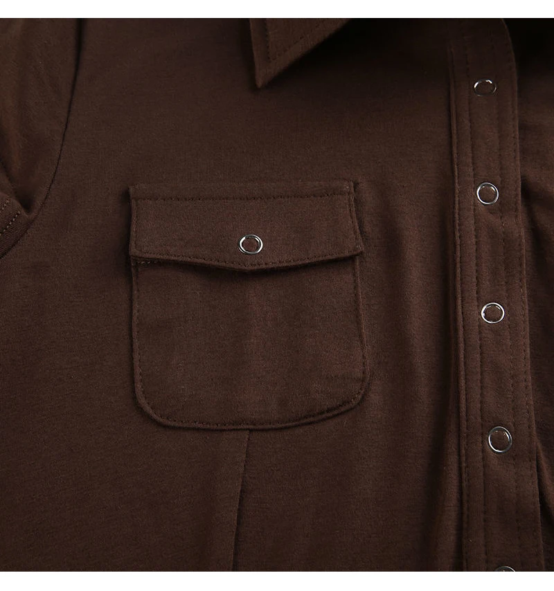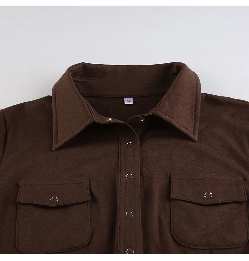 Yipinpay 2023 Summer Y2K Short Sleeve CowBoy Shirt Women Safari Style Button Up Pocket Slim Ladies Tops Female Clothing Blouse