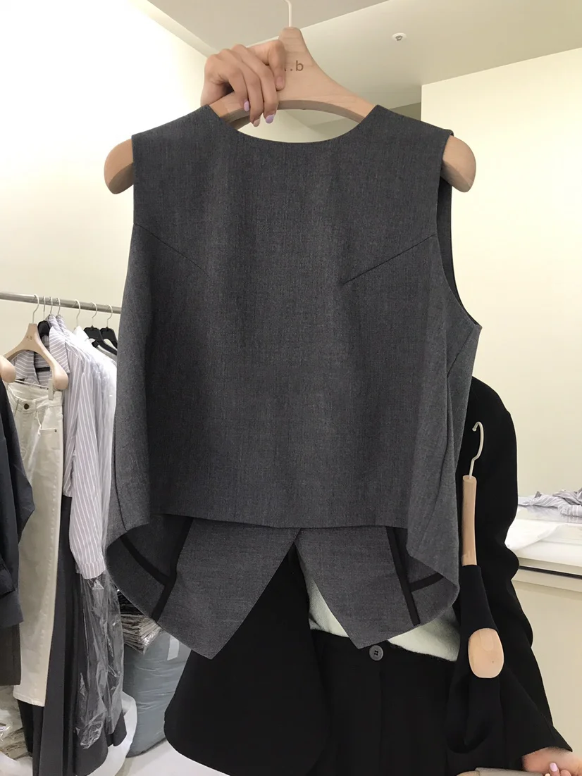 Yipinpay 2023 Temperament O Neck Sleeveless Black Suit Vest Women OL Wild Crop Tops Chalecos Mujer Split Waistcoat Jacket Coat