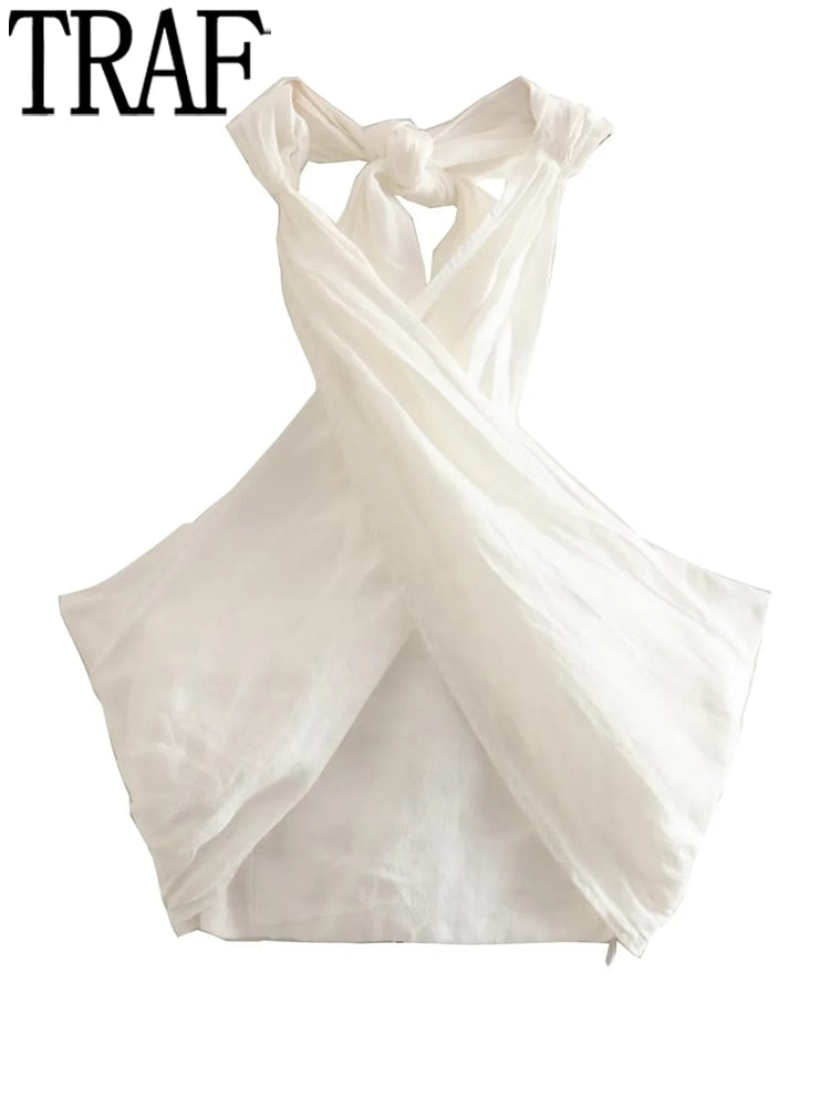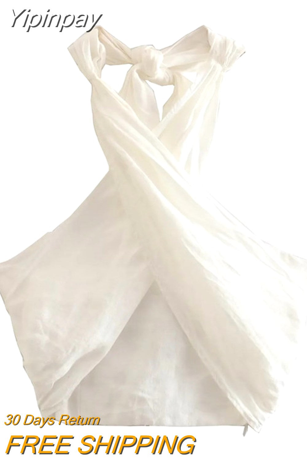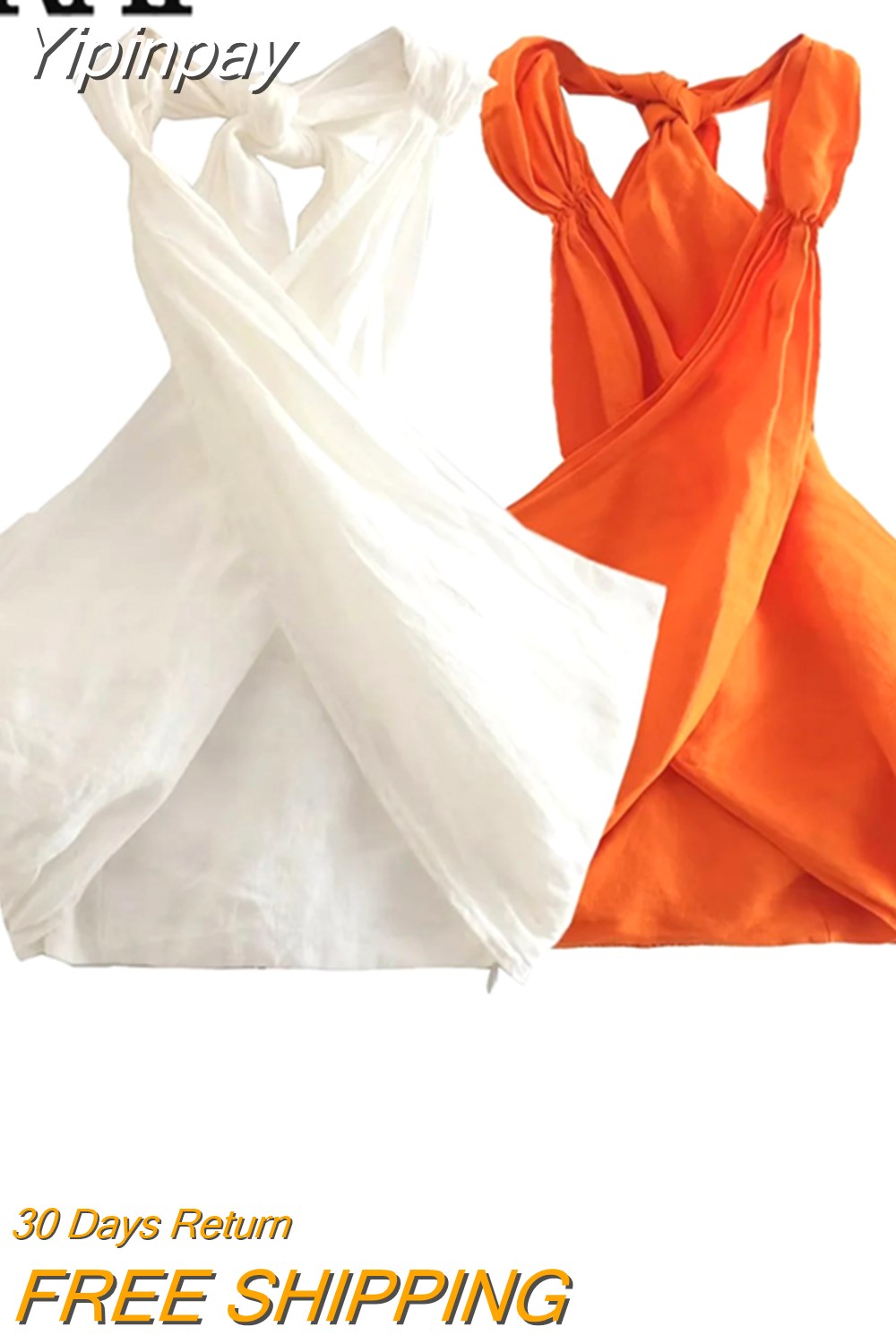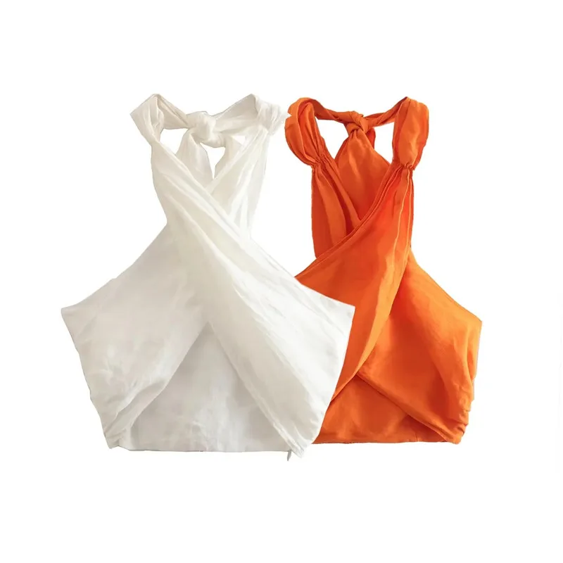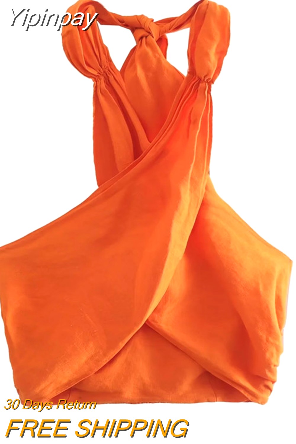 Yipinpay 2023 White Halter Top Women Backless Crop Top Sexy Off Shoulder Summer Tops Y2k Streetwear Orange Sleeveless Tank Tops