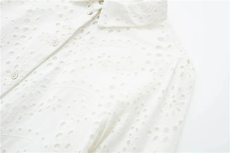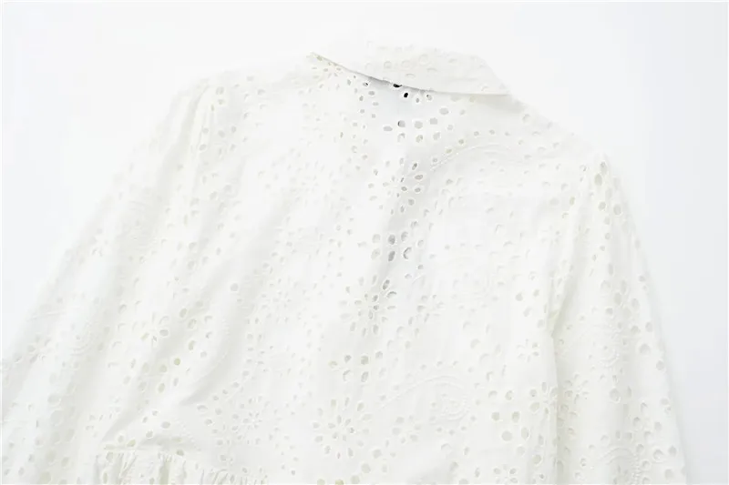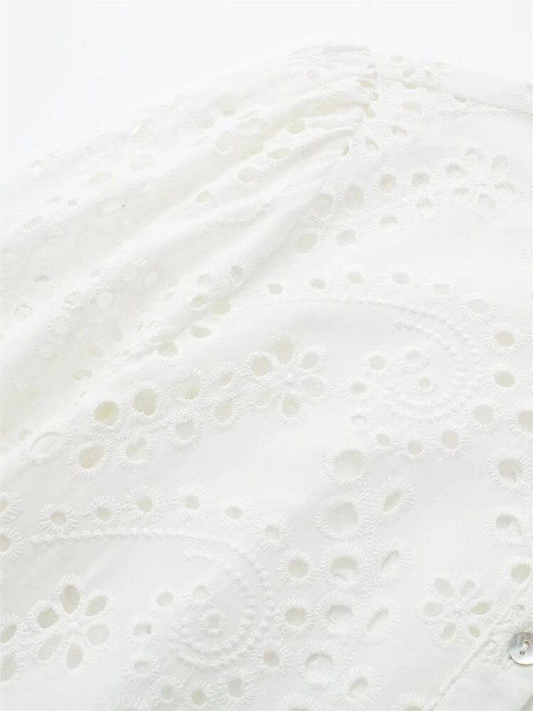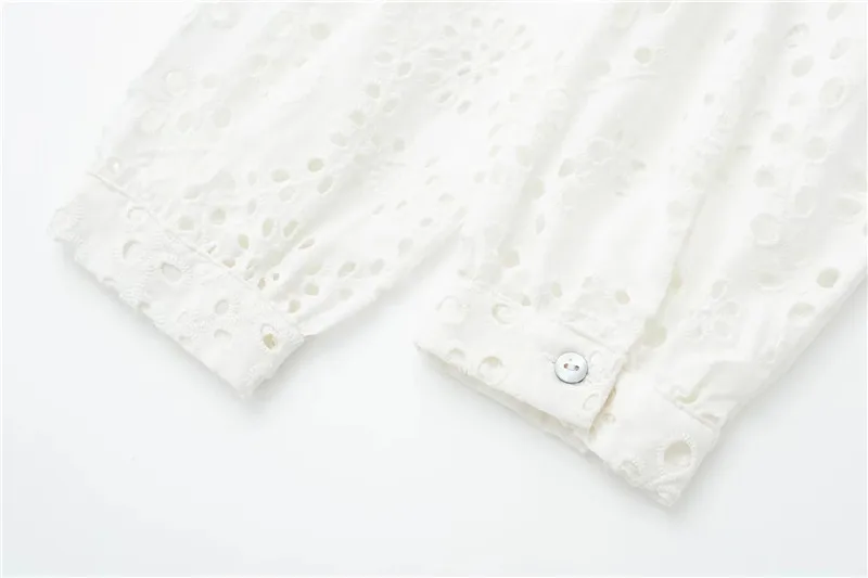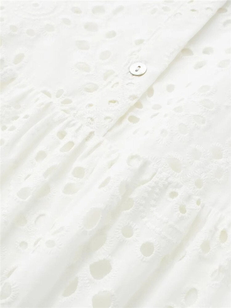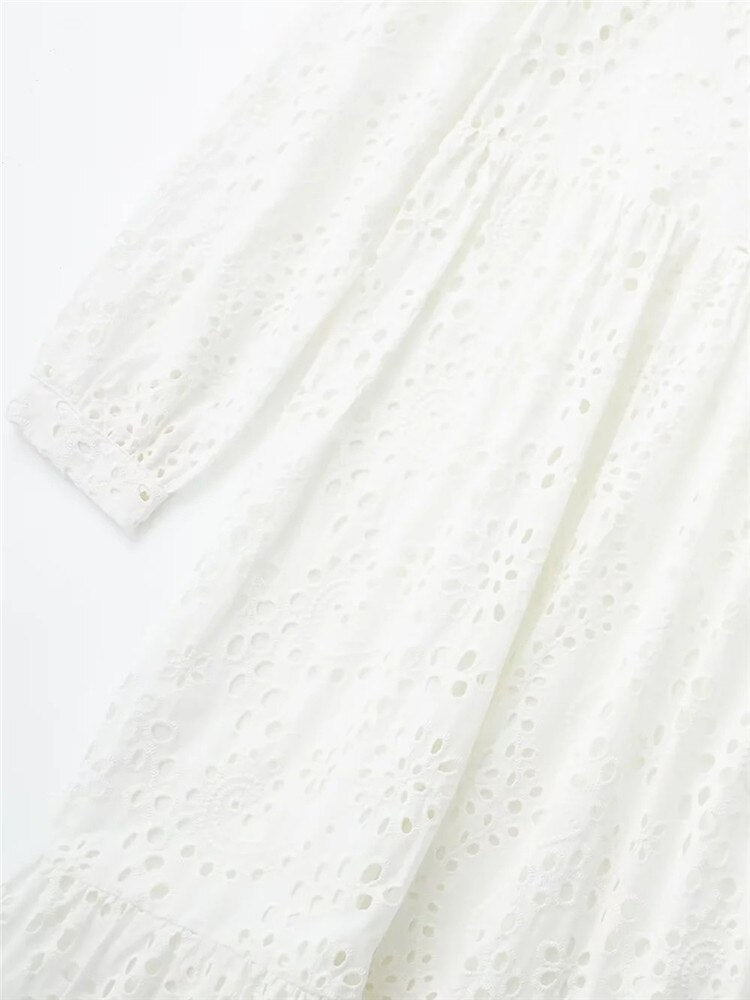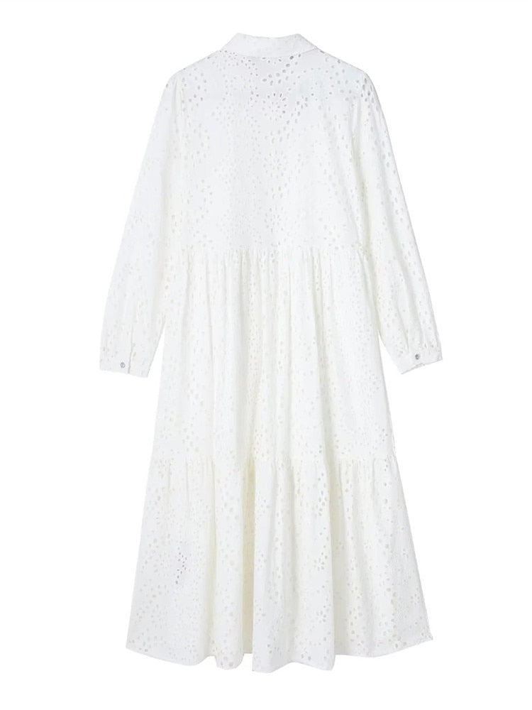 Yipinpay 2023 White Long Dress Women Cut Out Embroidery Shirt Dress Woman Long Sleeve Midi Dresses Women's Elegant Loose Dresses