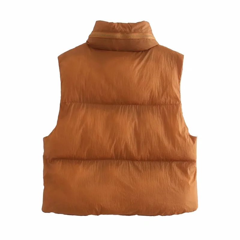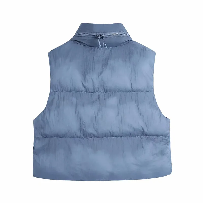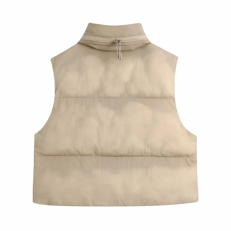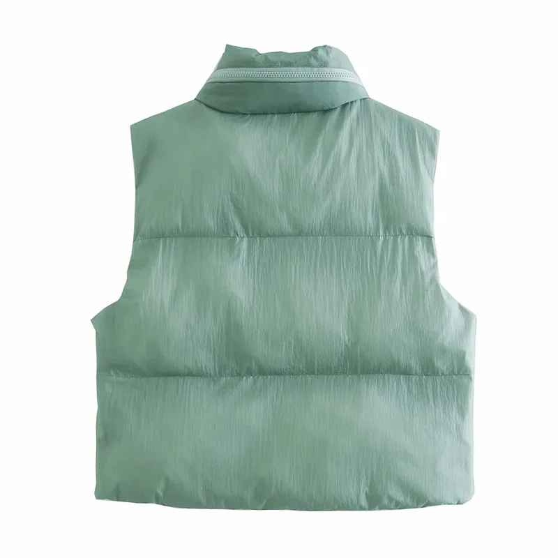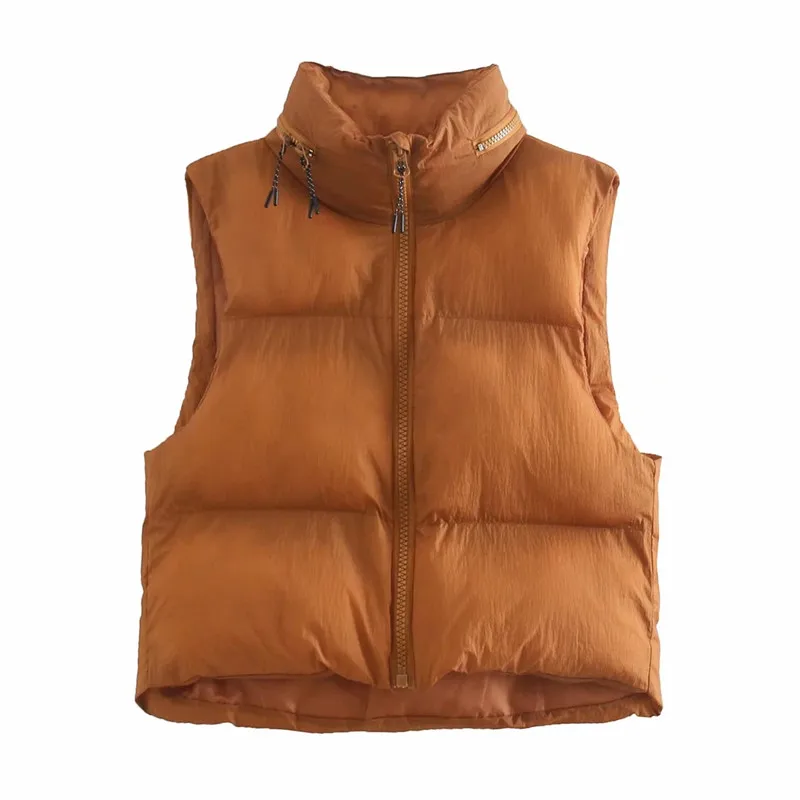 Yipinpay 2023 Winter Black Cropped Vest Coat Women Fashion Keep Warm Sleeveless High Collar Zip Up Wasitcoats Woman Casual Vest Top