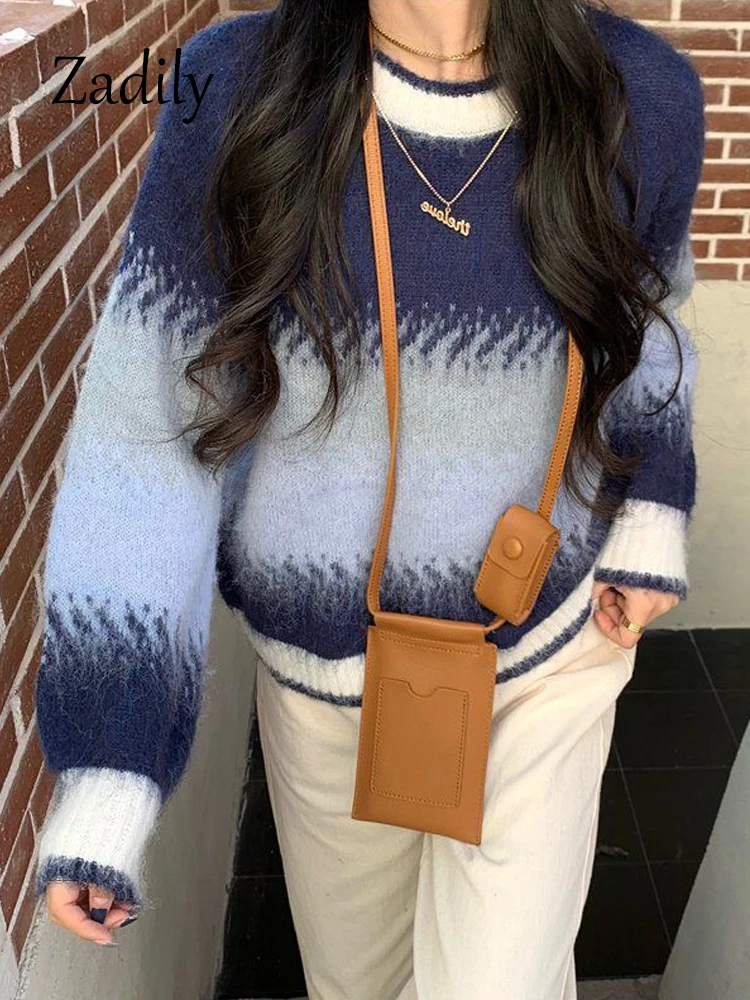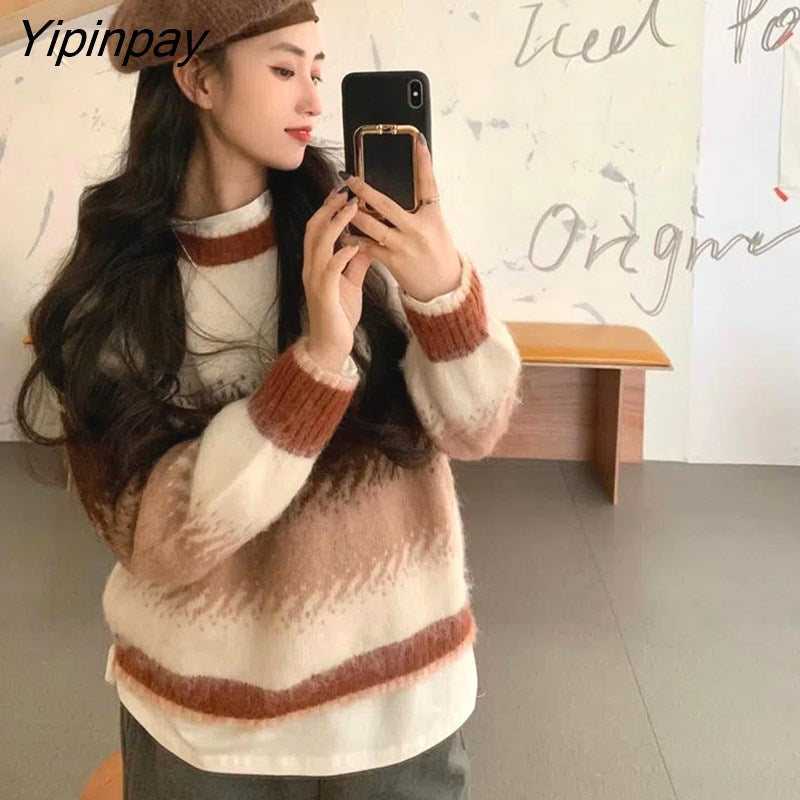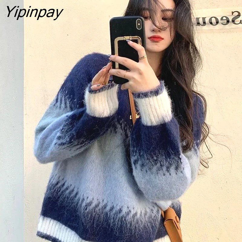 Yipinpay 2023 Winter Korea Style Gradient O Neck Women Sweater Casual Loose Long Sleeve Warm Ladies Knit Pullover Female Clothing