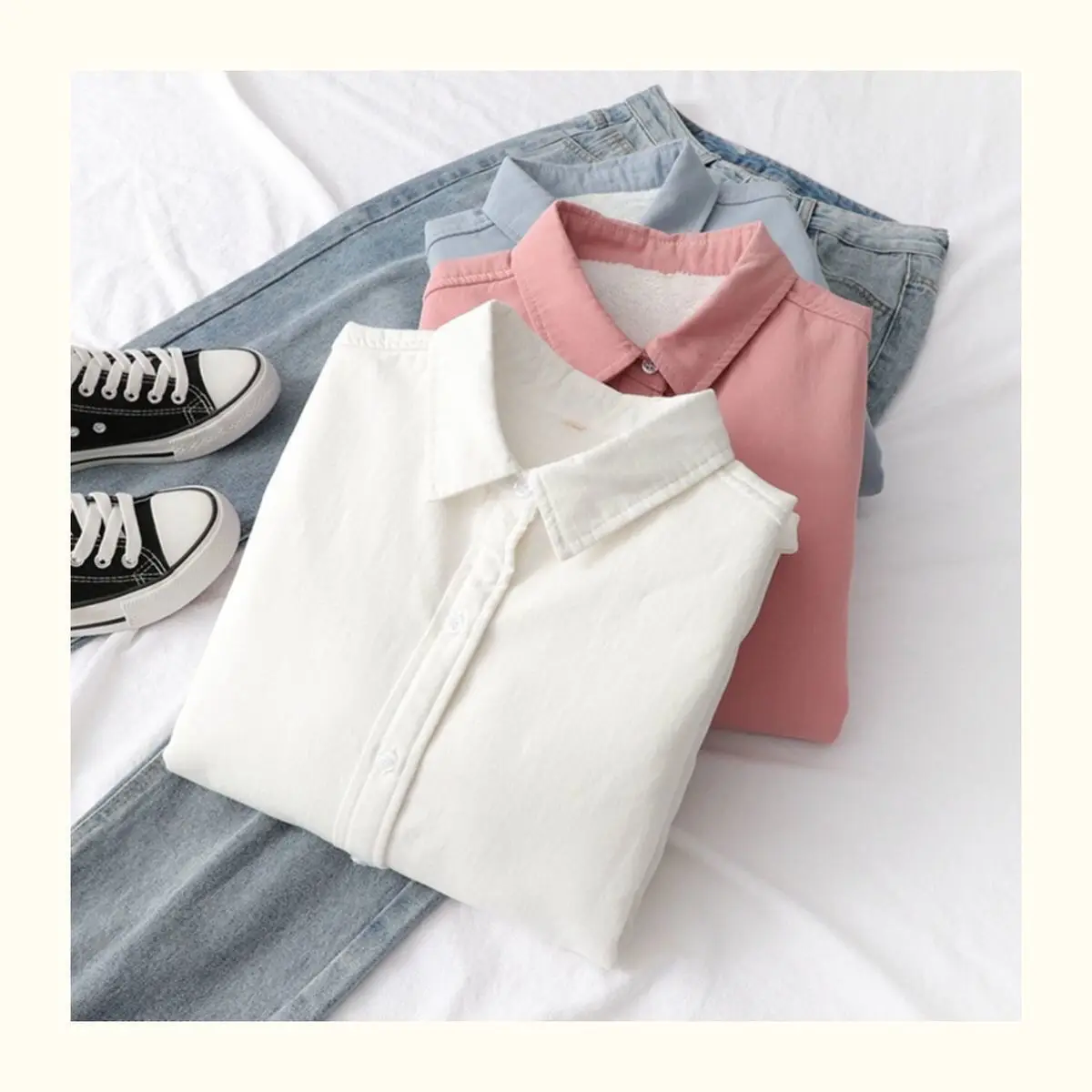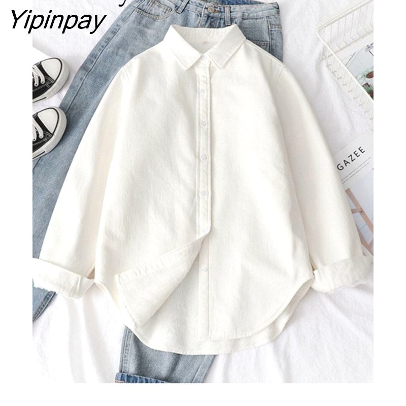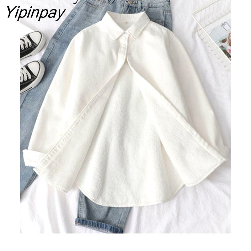 Yipinpay 2023 Winter Korean Style Long Sleeve Wool Liner Shirt Women Casual Button Thick Ladies Tunic Autunm Female Clothing Tops