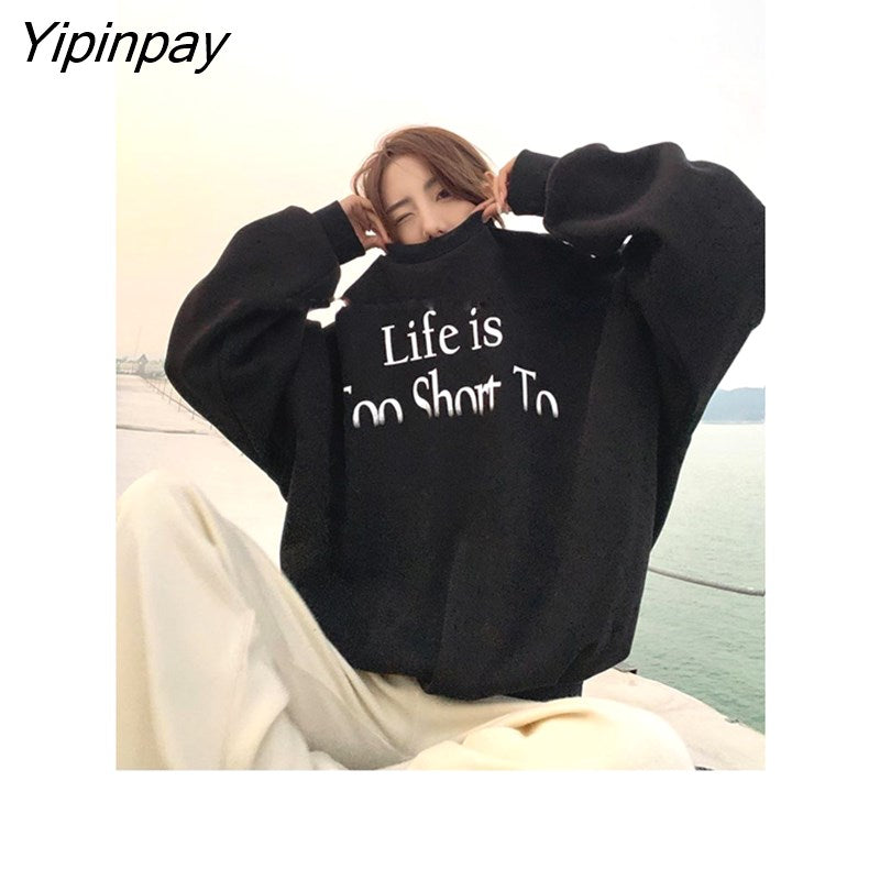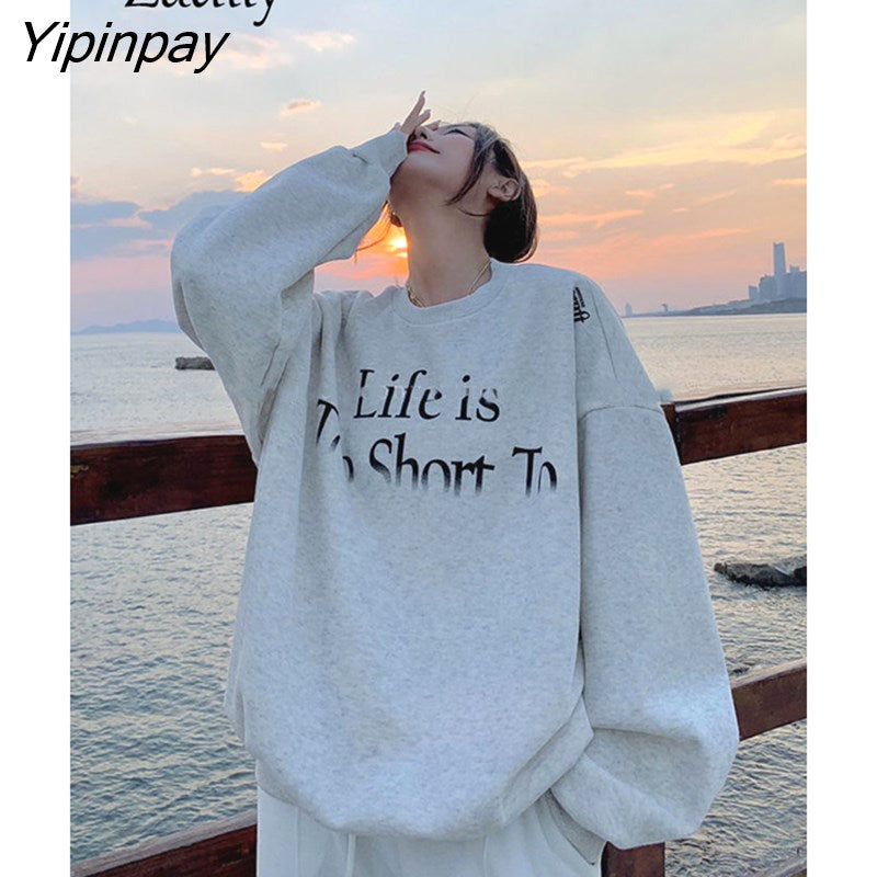 Yipinpay 2023 Winter Korean Style Oversieze Letter Print Thick Sweatshirt Women Minimalist Long Sleeve Hoodies Female Top Clothing