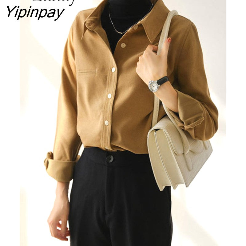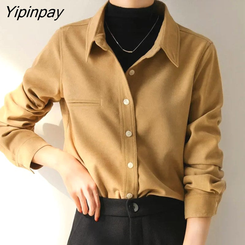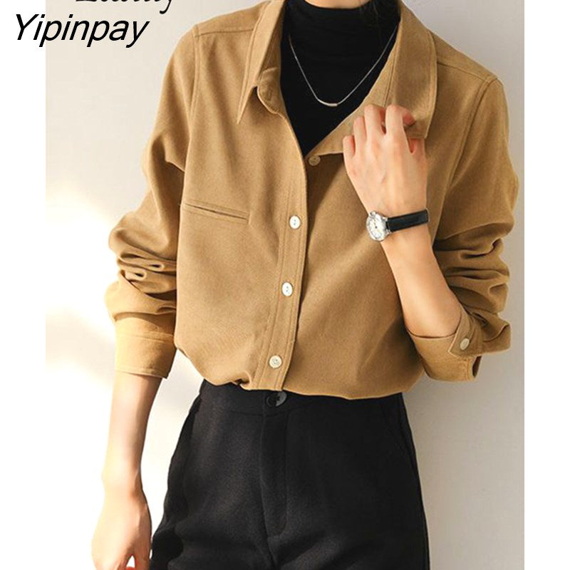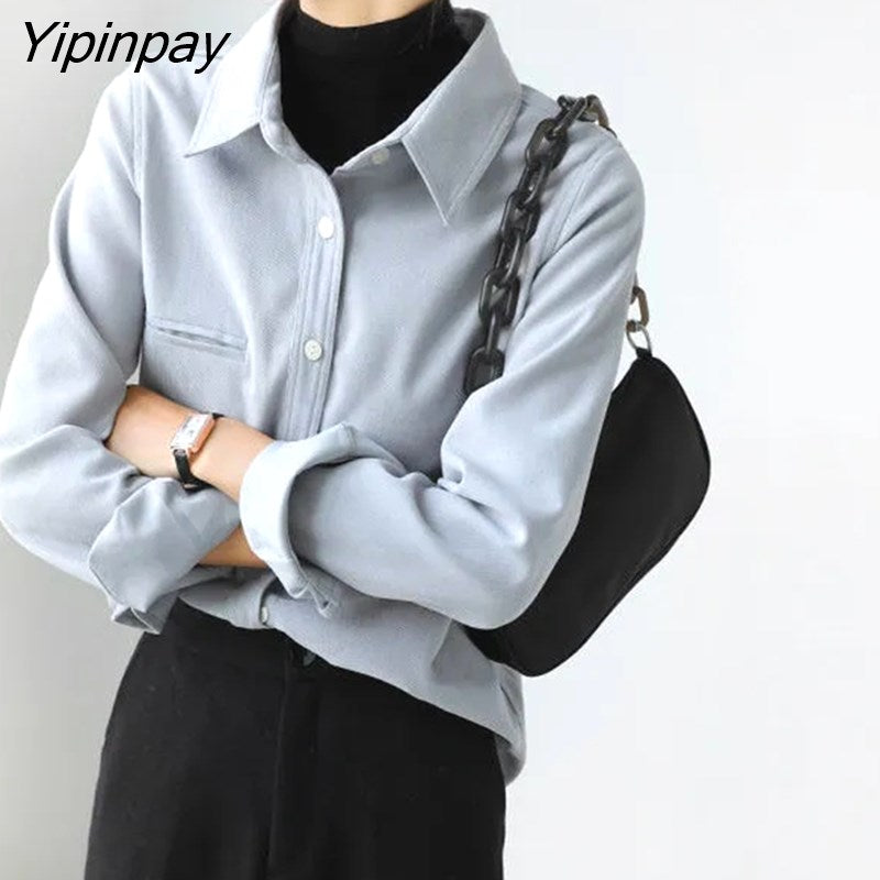 Yipinpay 2023 Winter Office Lady Long Sleeve Thick Shirt Women Korean Style Button Up Tunic Blouse Fall Work Female Clothing Tops