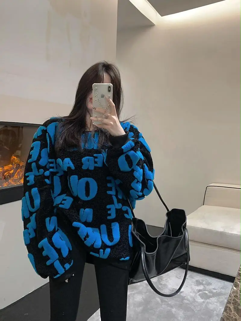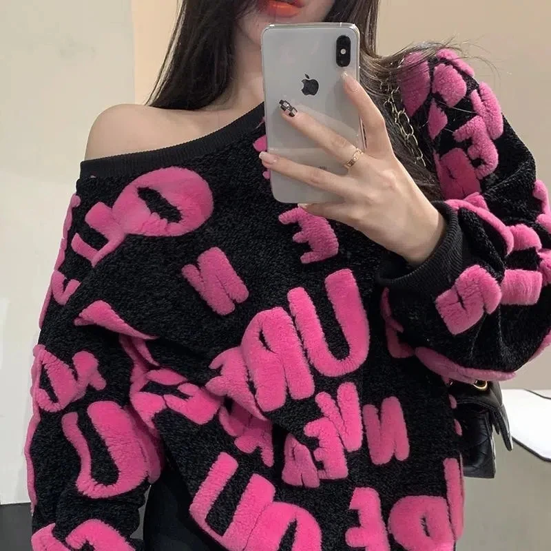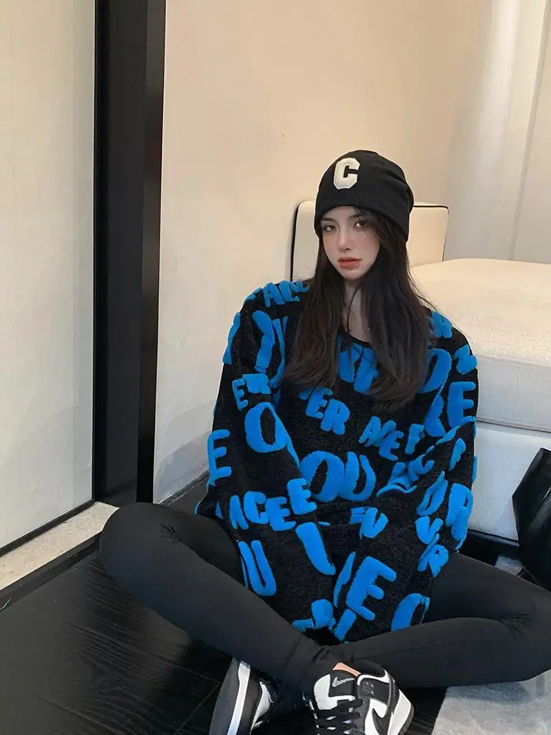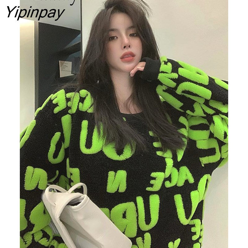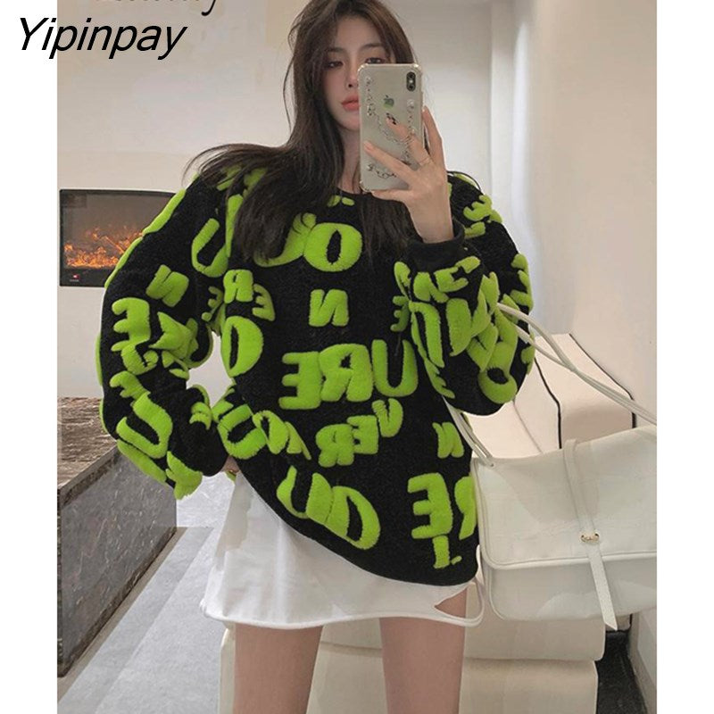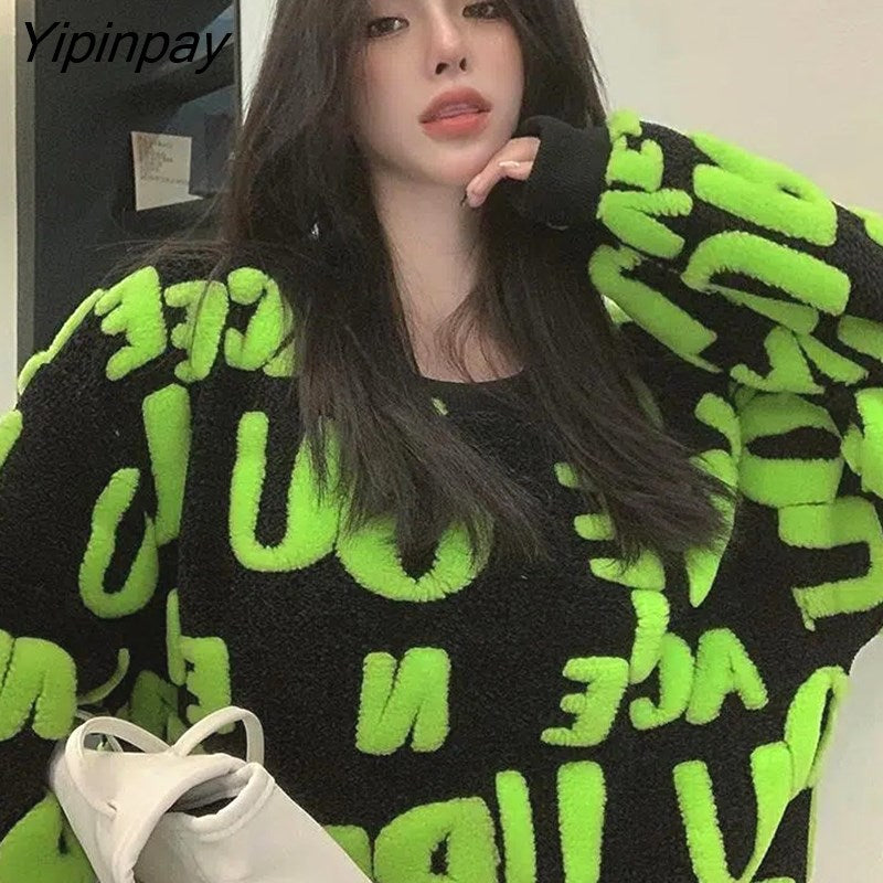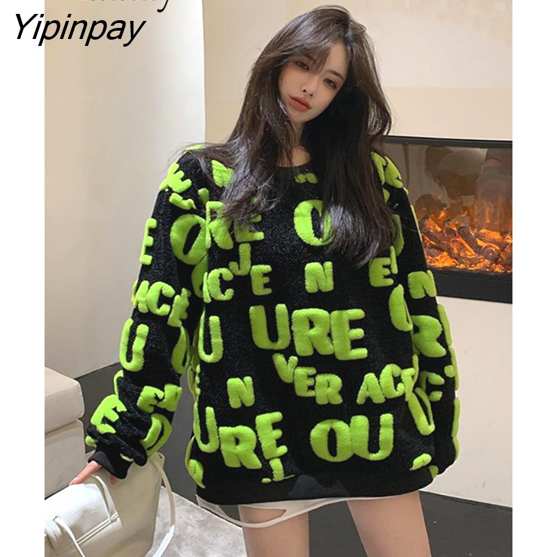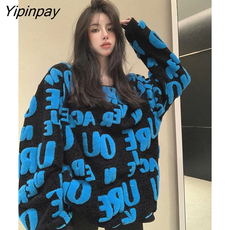 Yipinpay 2023 Winter Oversize Long Sleeve Women Sweater Streetwear O Neck Letter Embroidery Knit Ladies Pullover Female Clothing