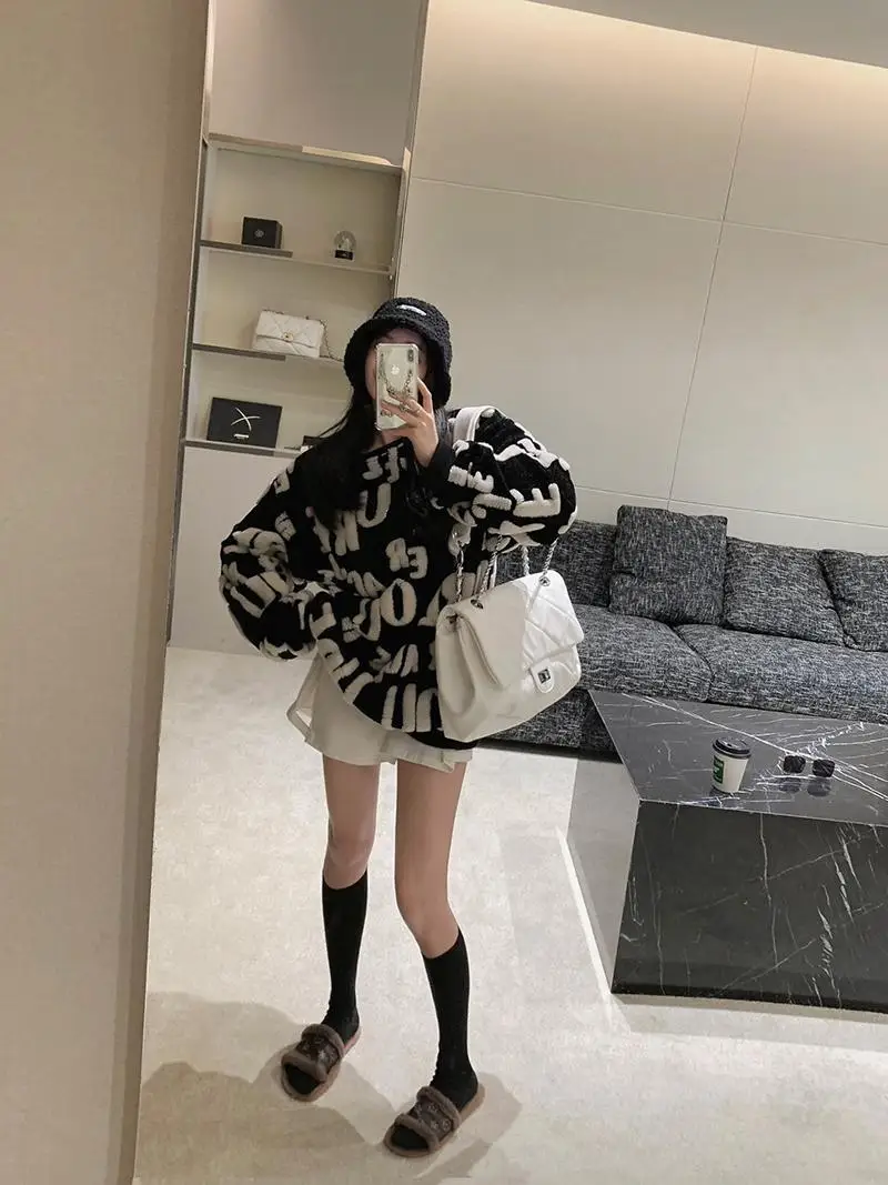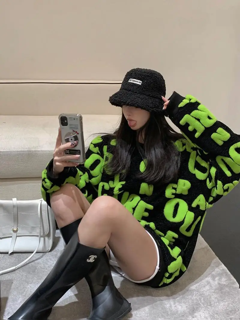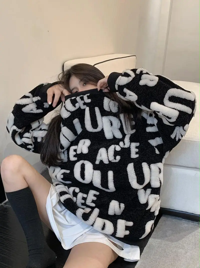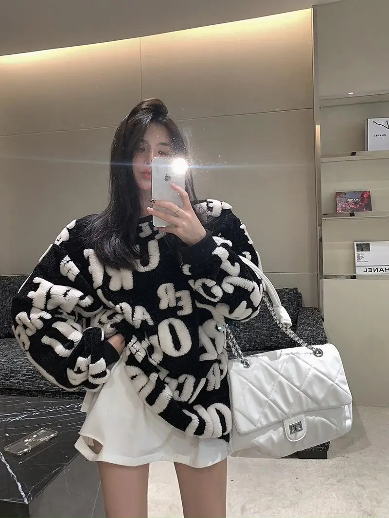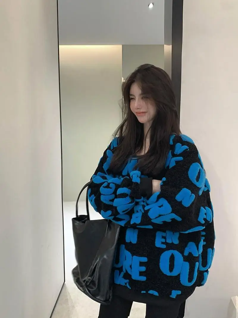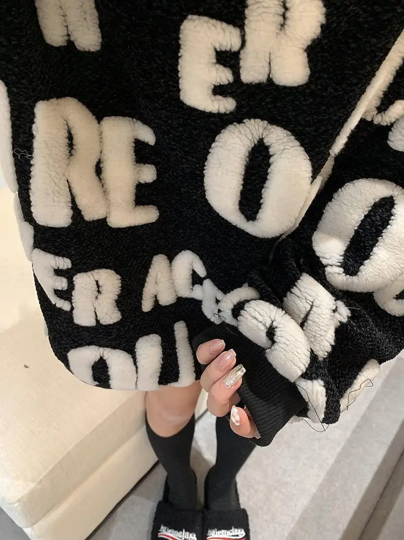 Yipinpay 2023 Winter Oversize Long Sleeve Women Sweater Streetwear O Neck Letter Embroidery Knit Ladies Pullover Female Clothing