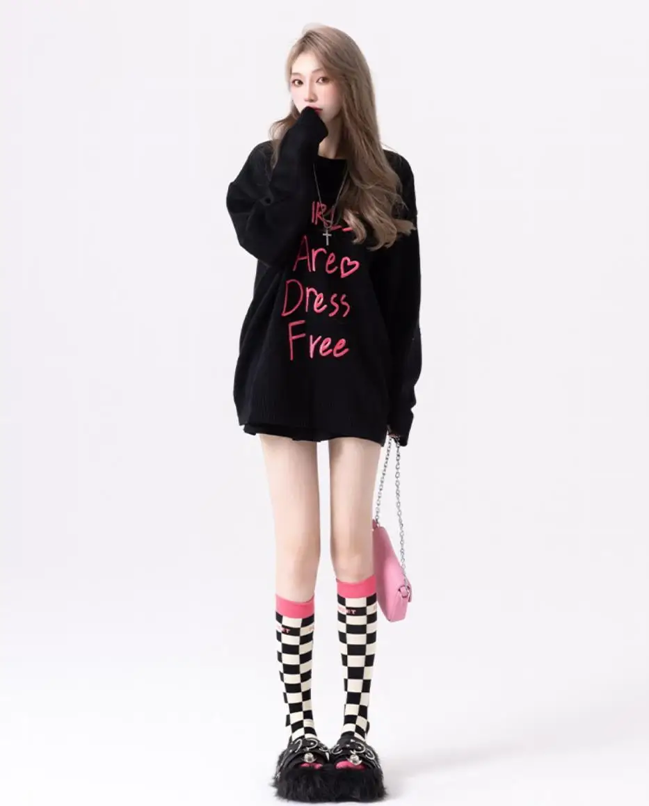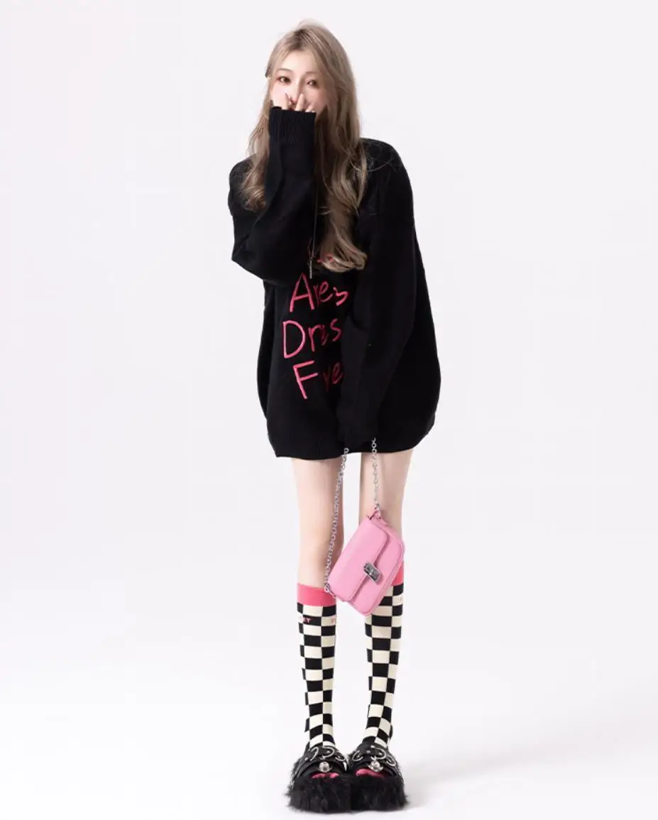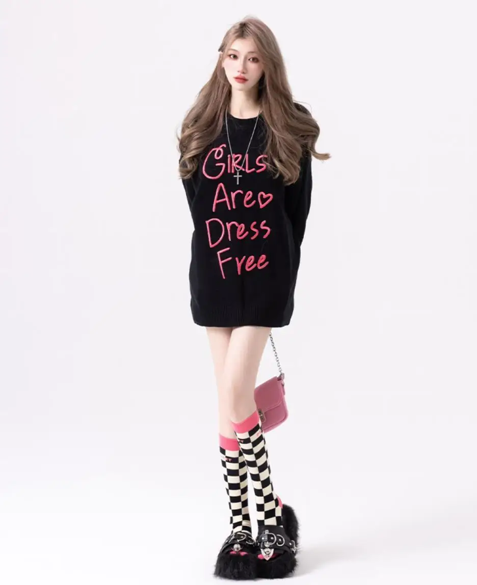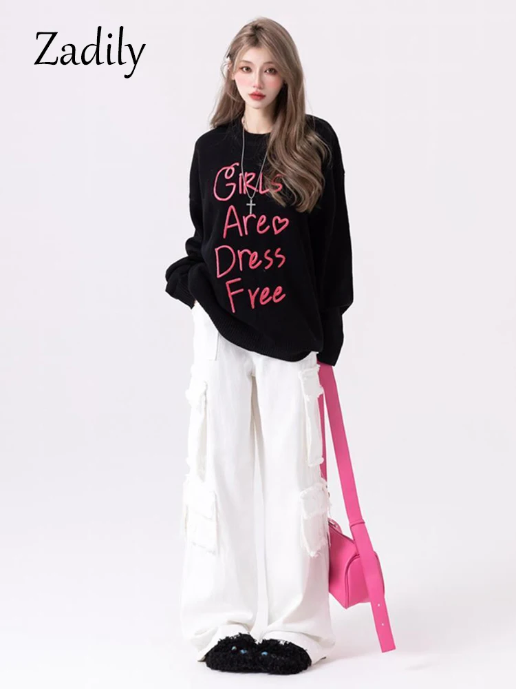 Yipinpay 2023 Winter Oversize Long Sleeve Women Sweater Streetwear O Neck Letter Print Knit Ladies Pullover Female Clothing Tops