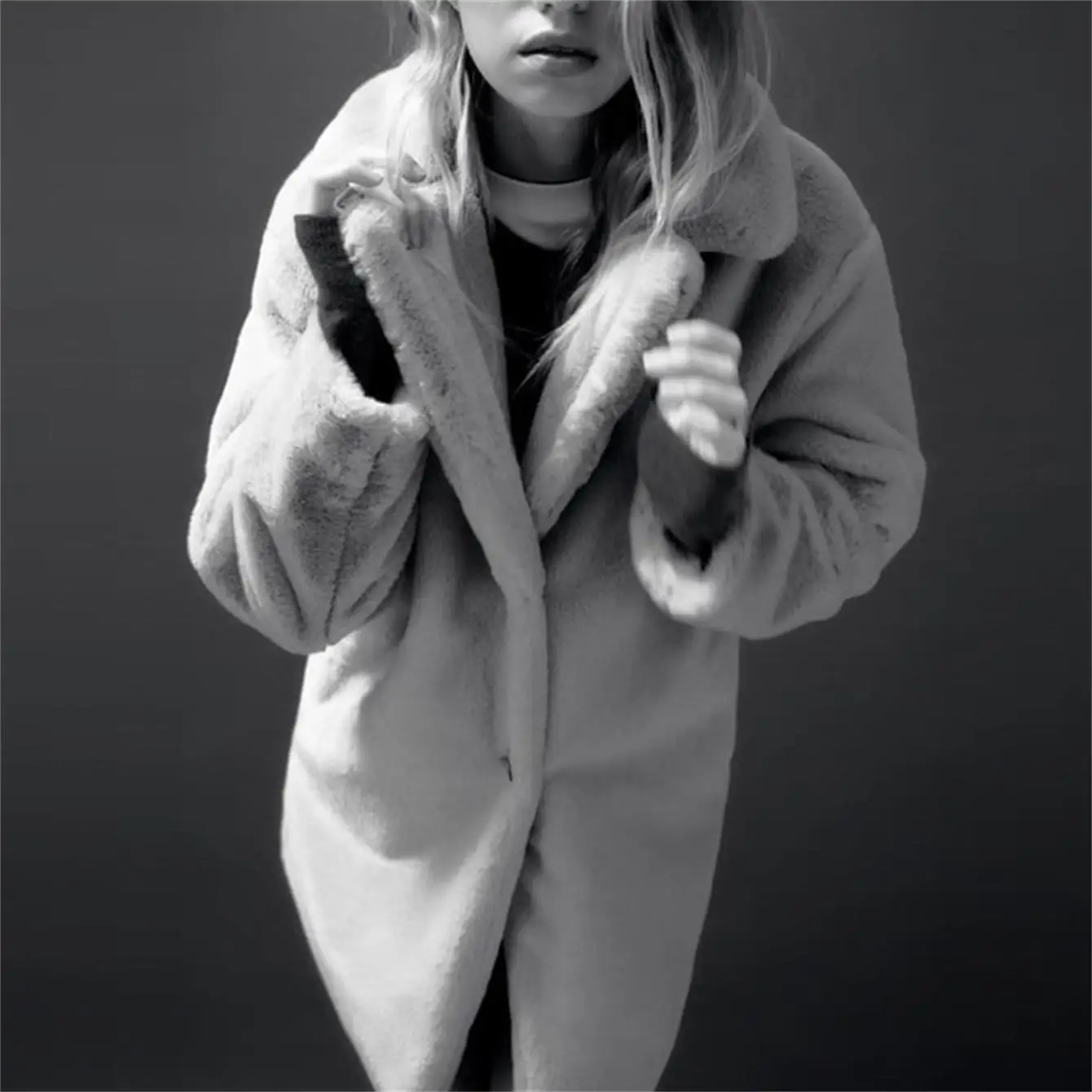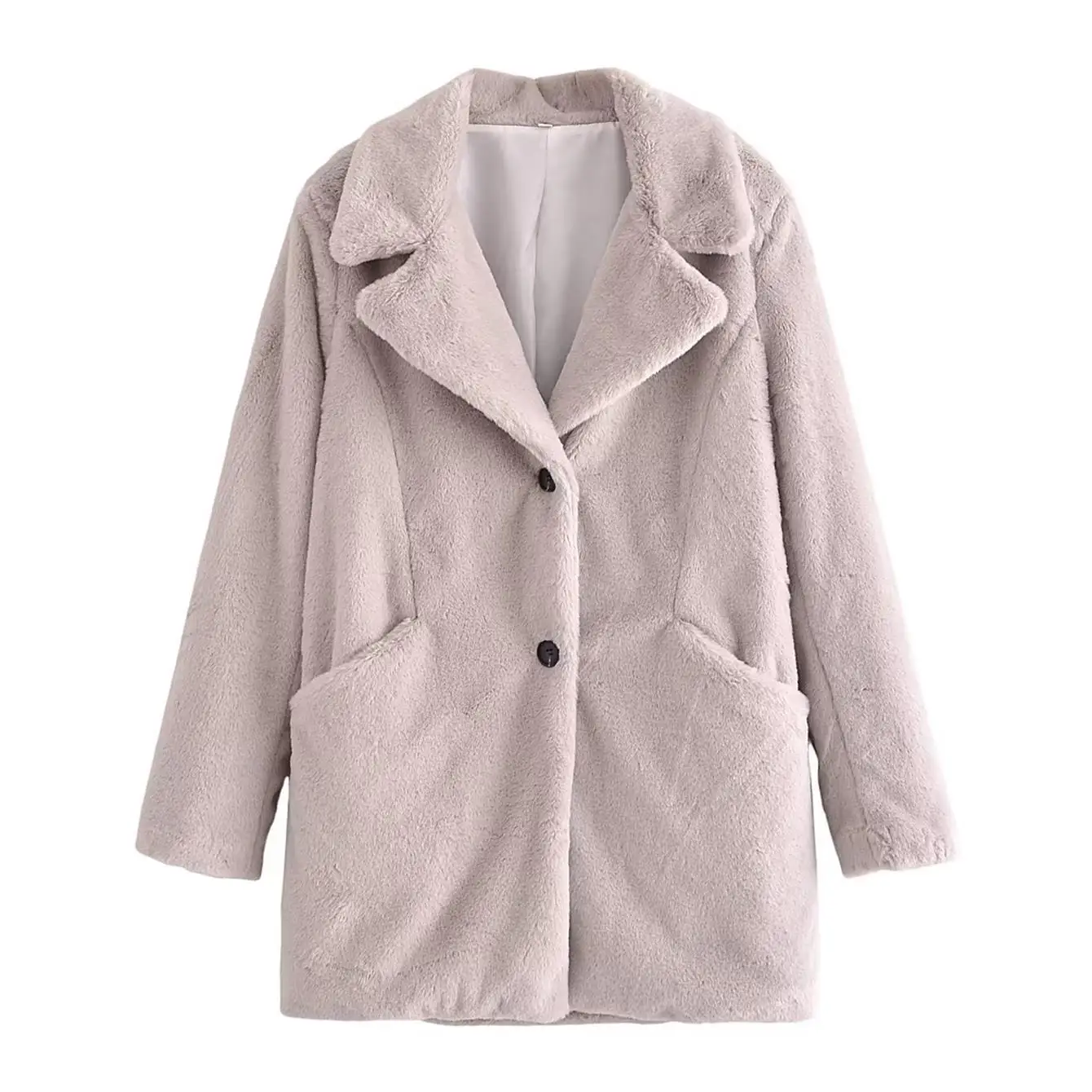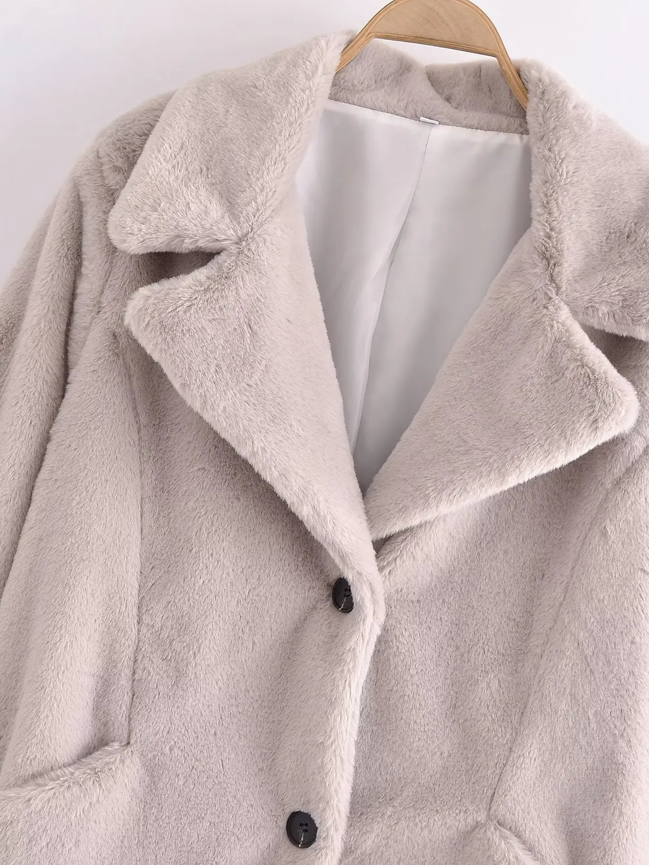 Yipinpay 2023 Women Faux Fur Thicken Coat Autumn Winter Vintage Warm Long Sleeve Pockets Female Single Breasted Outerwear Chic Tops