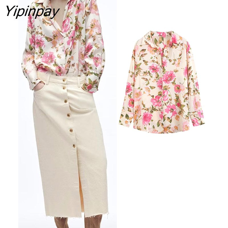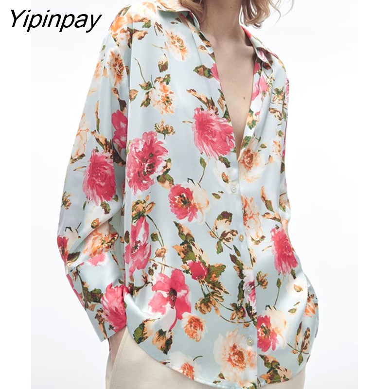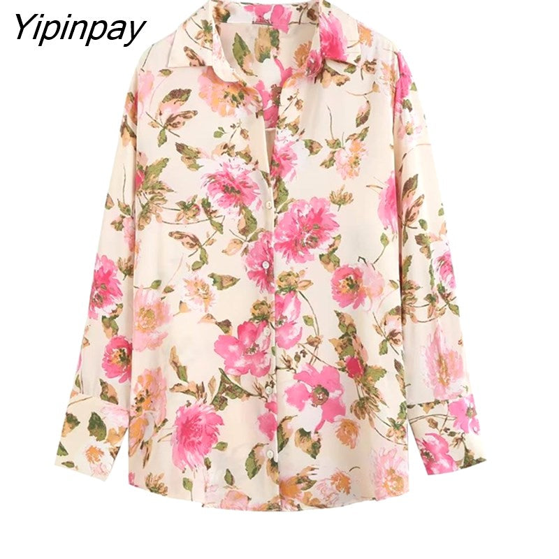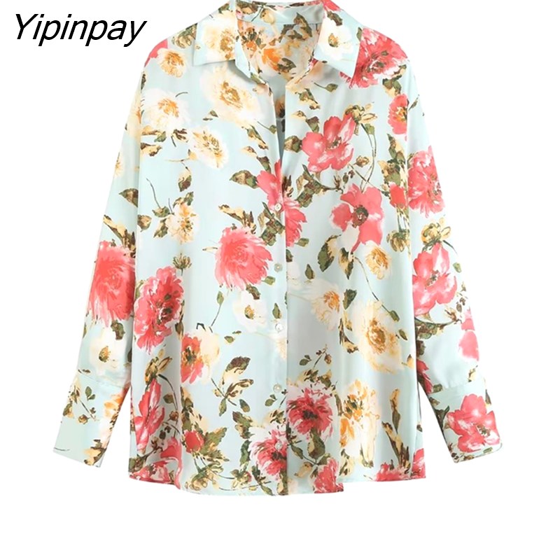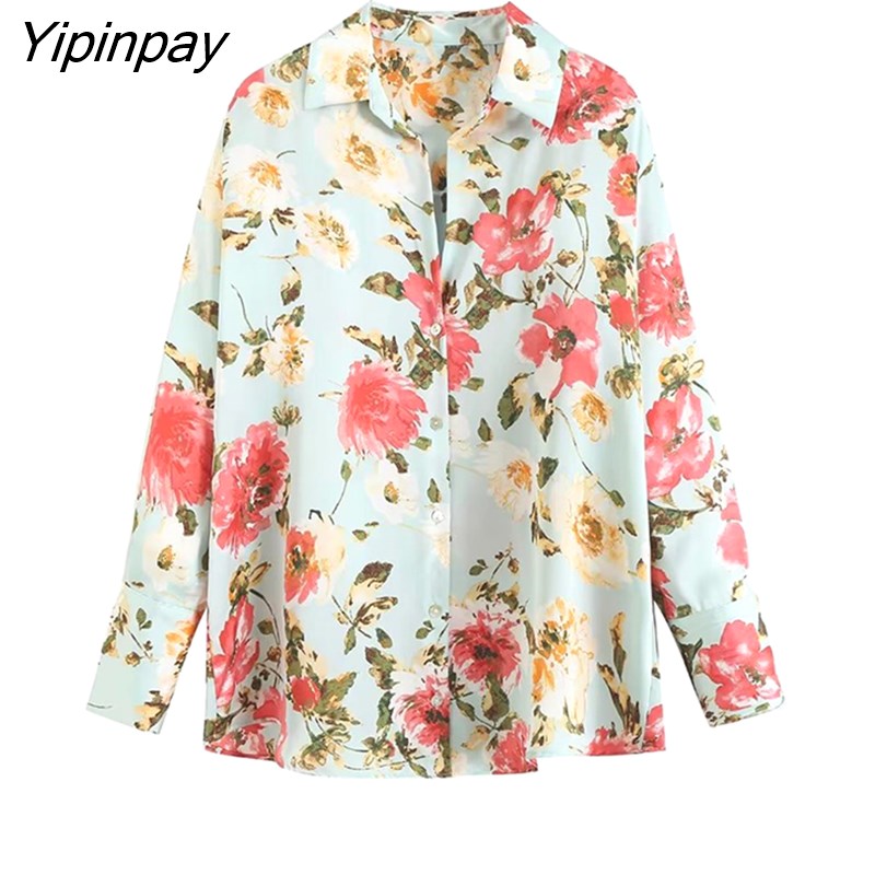 Yipinpay 2023 Women Floral Printed Thin Blouses Shirt Fashion Causal Loose Long Sleeved Tops Vintage Single Breasted T-Shirts