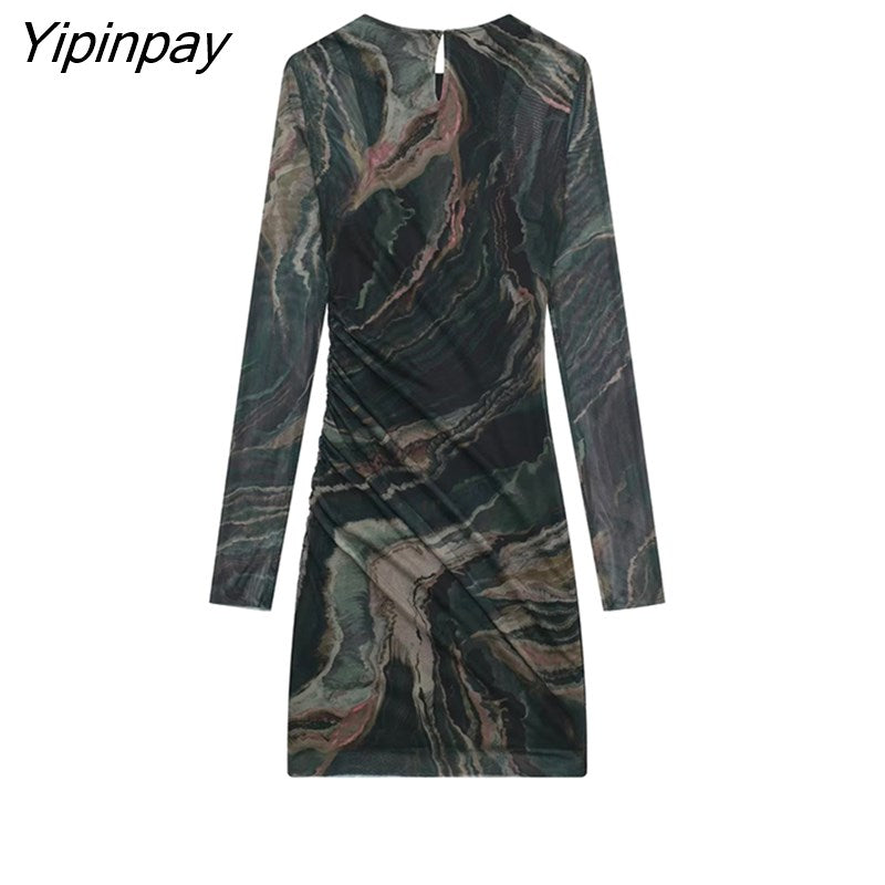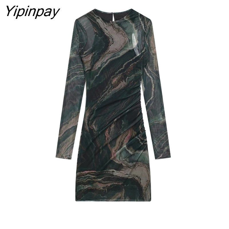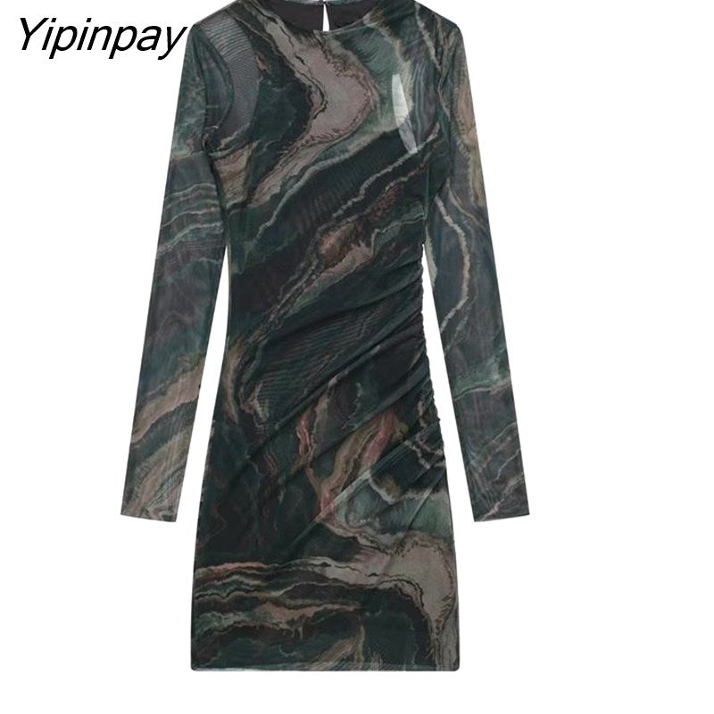 Yipinpay 2023 Women Mini SexyTulle Dresses Spring Summer Elegant Party Sheath Slim Dress Long Sleeve O-Neck Vestidos