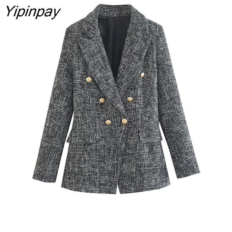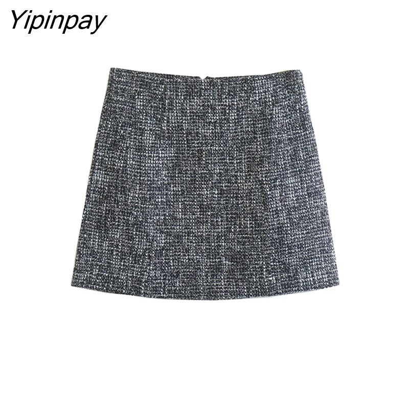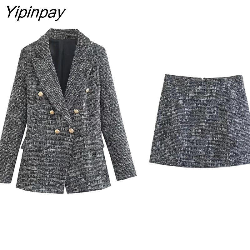 Yipinpay 2023 Women Office Lady Blazer Skirts Sets Autumn Winter Elegant Female Double Breasted Jackets Mini Skirt Long Sleeve Tops