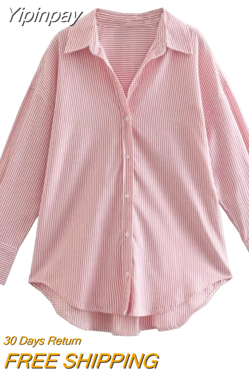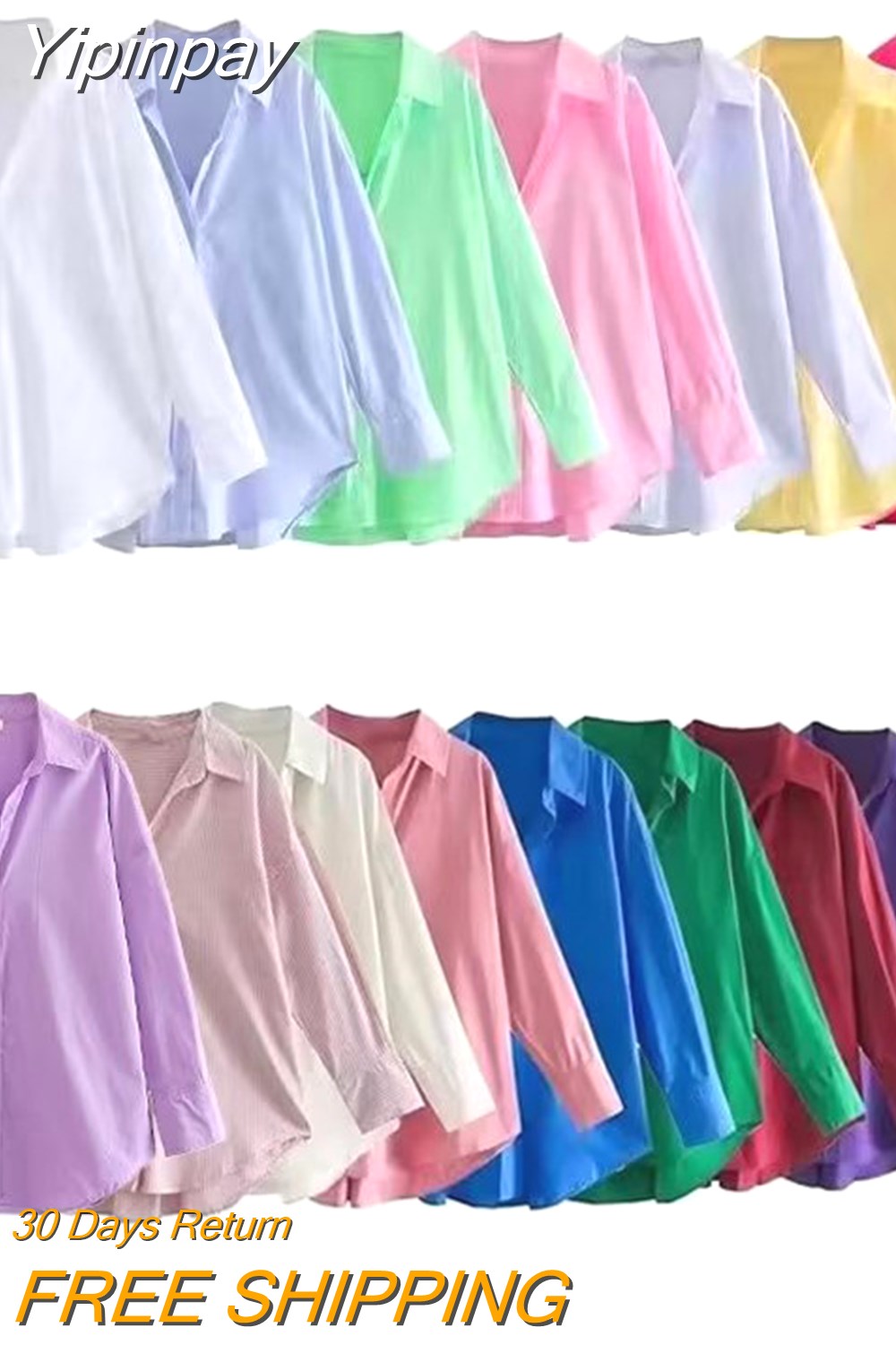 Yipinpay 2023 Women Shirt Multicolour Button Up Shirt Women Summer Long Sleeve Top Female Streetwear Oversize Shirts And Blouses