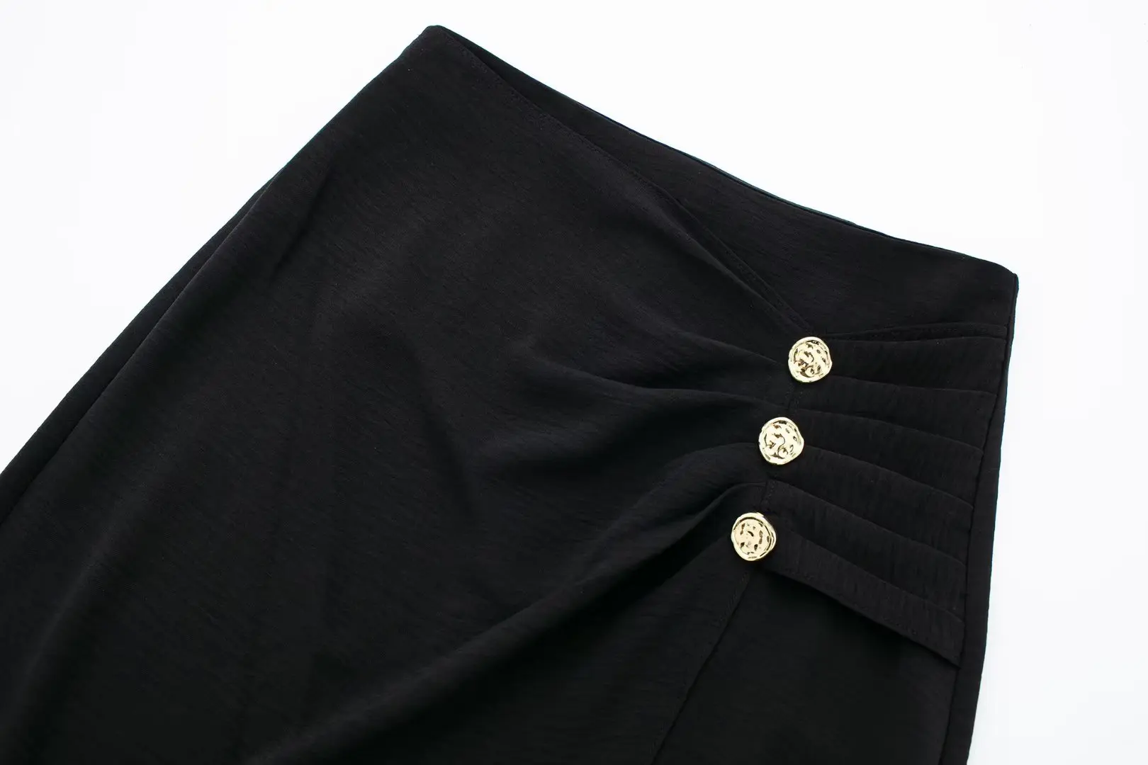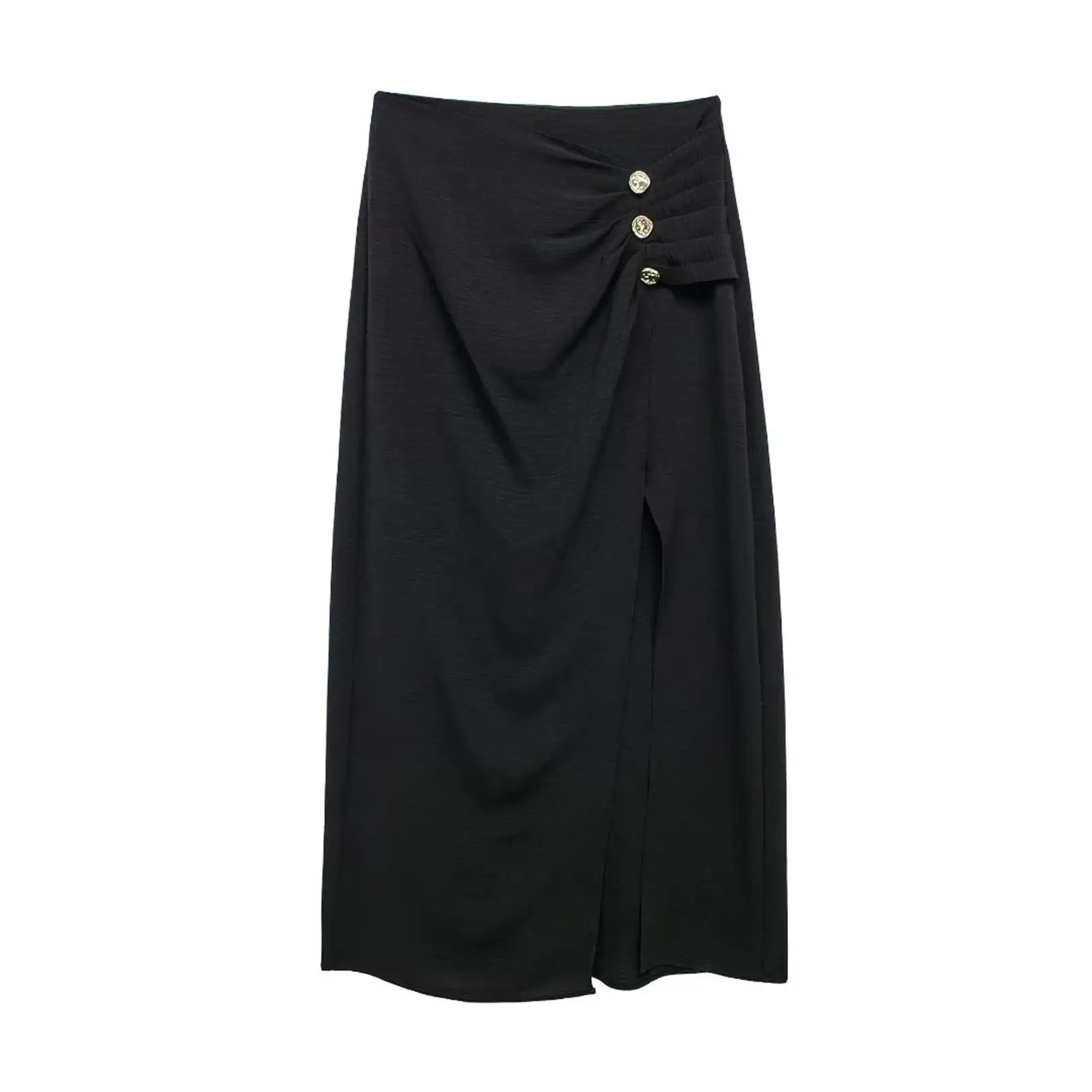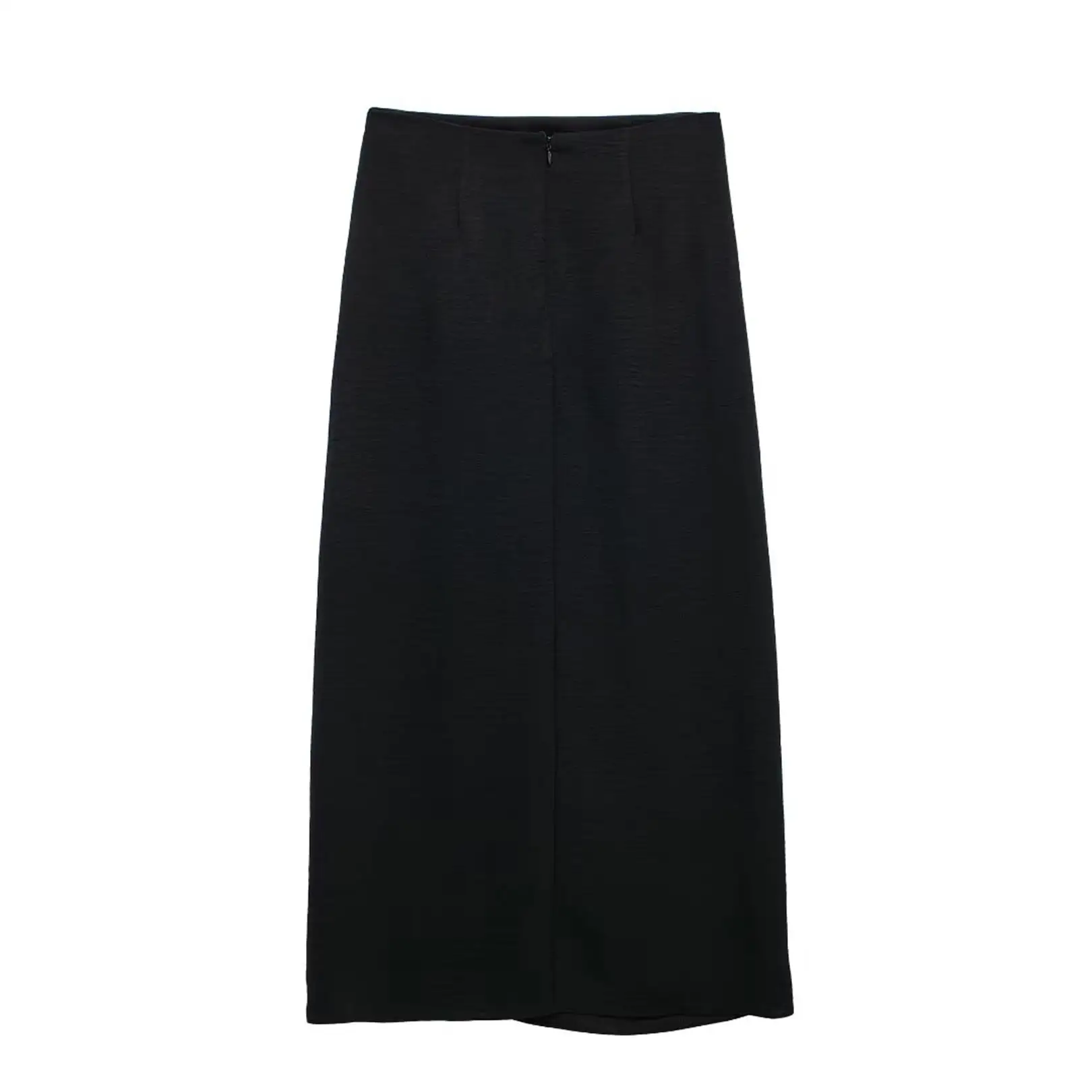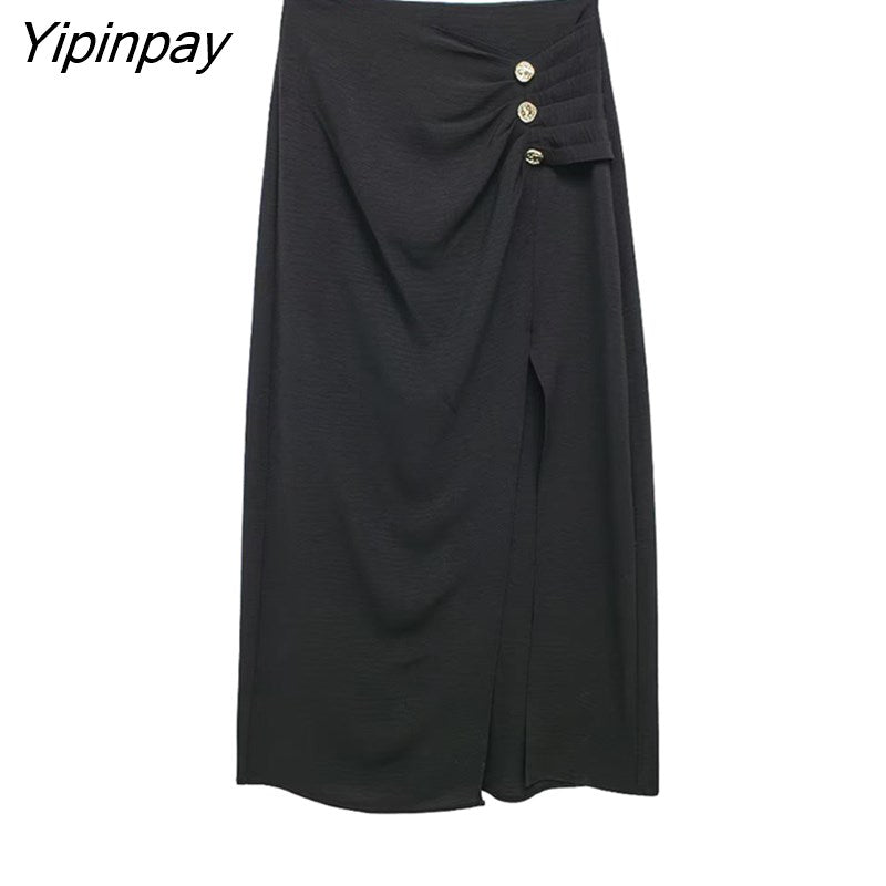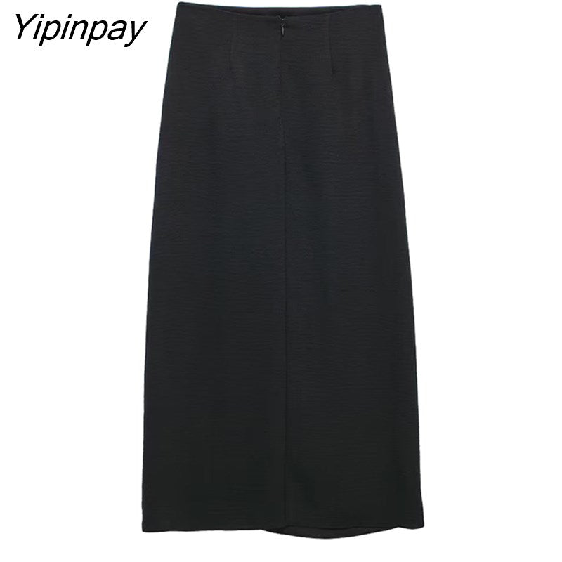 Yipinpay 2023 Women Solid Mid-Calf Skirts Summer Fashion High Waist Side Split Skirt Dress Female Vintage Straght Skirts