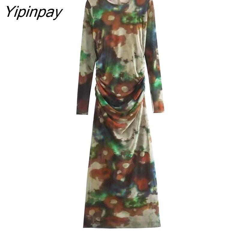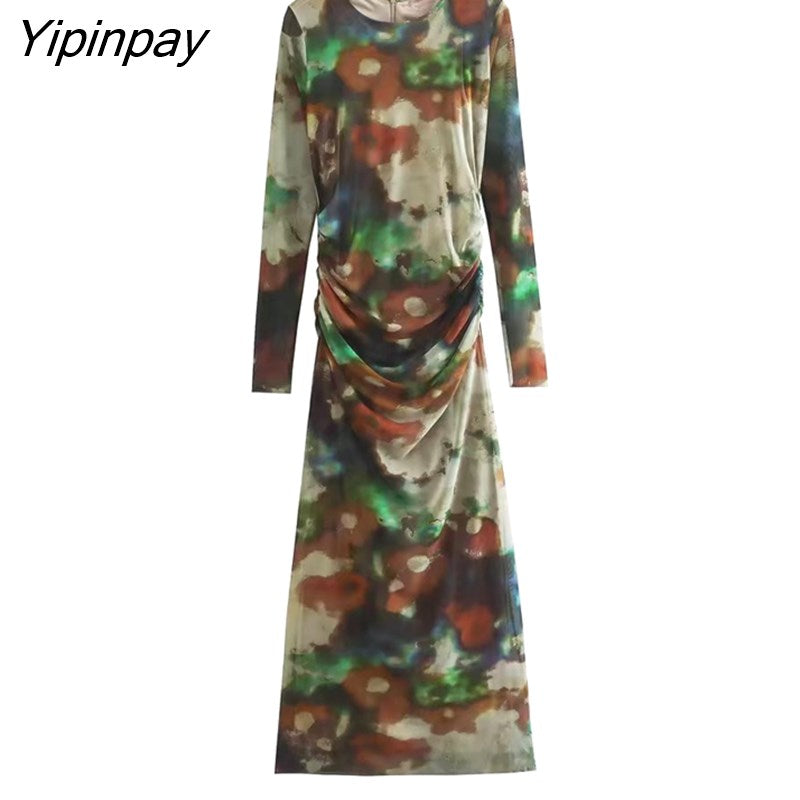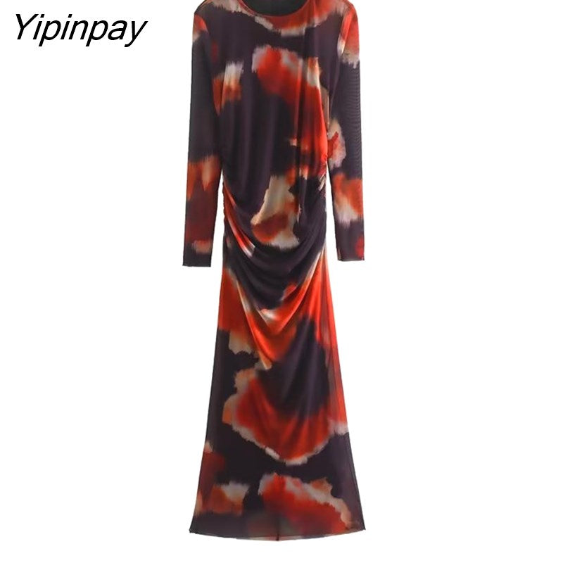 Yipinpay 2023 Women Tulle Mid-Calf Dresses Spring Elegant O-neck Slim Party Sexy Vestidos Fashion Long Sleeve Back Zipper Dresses