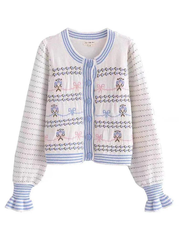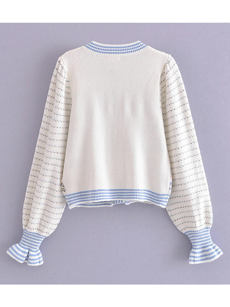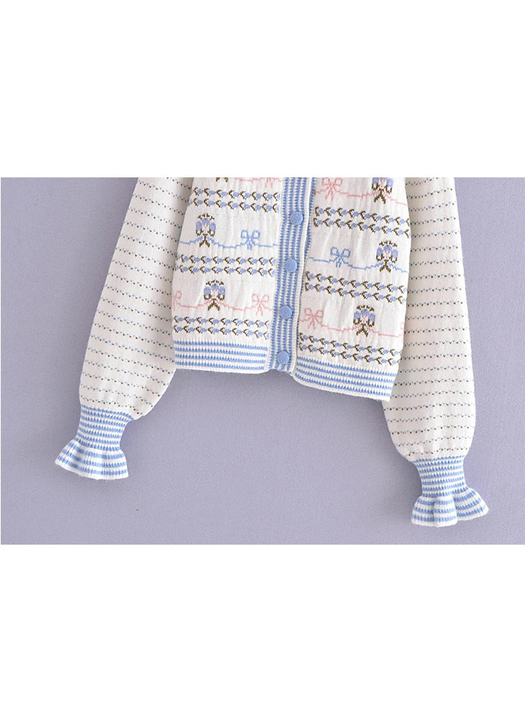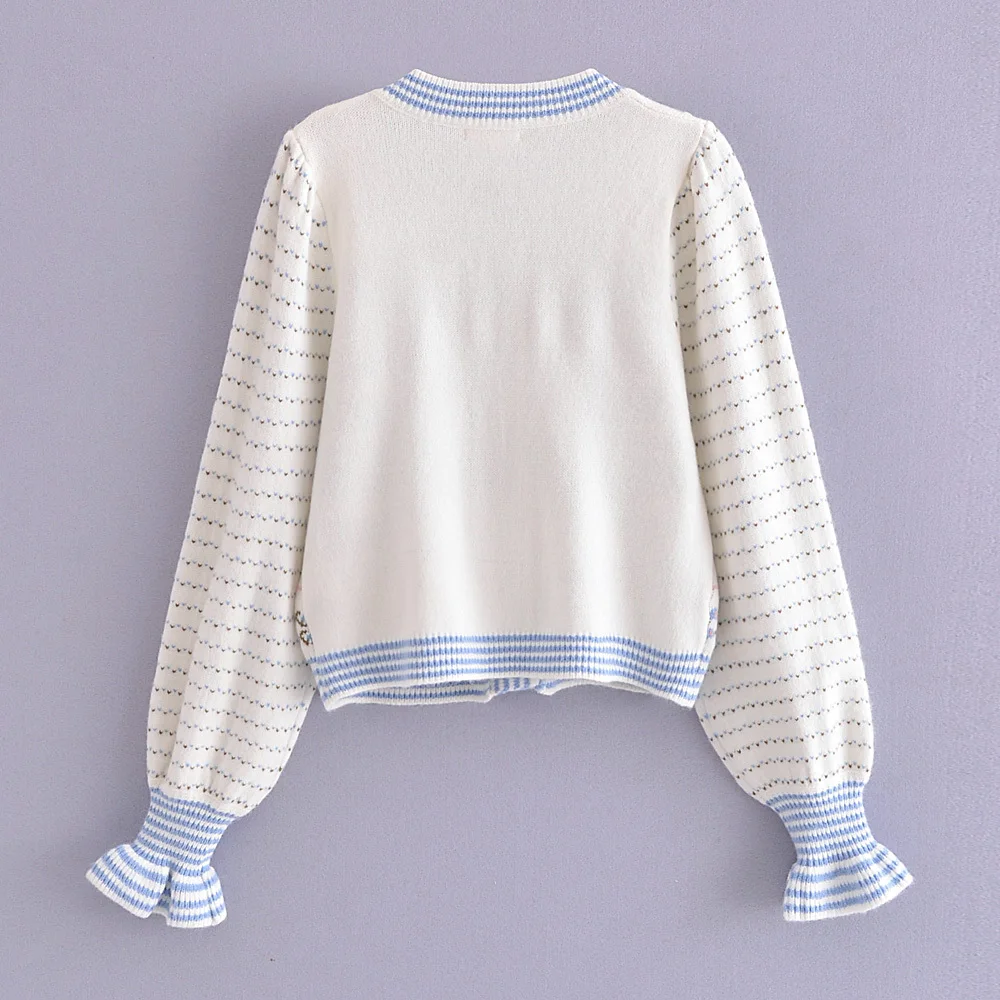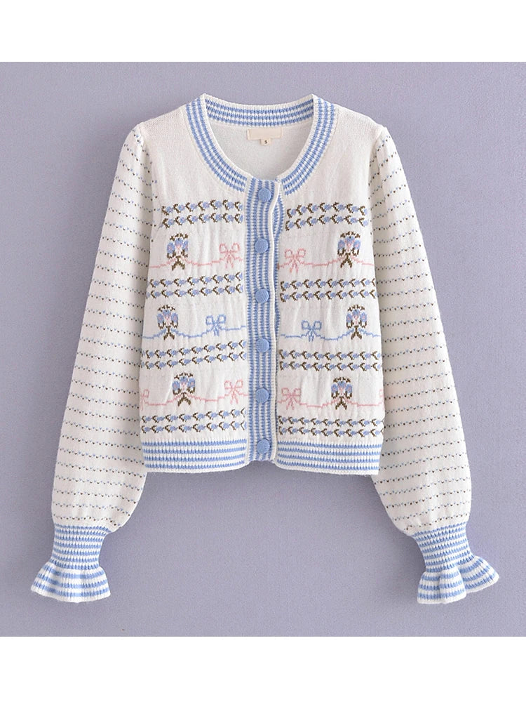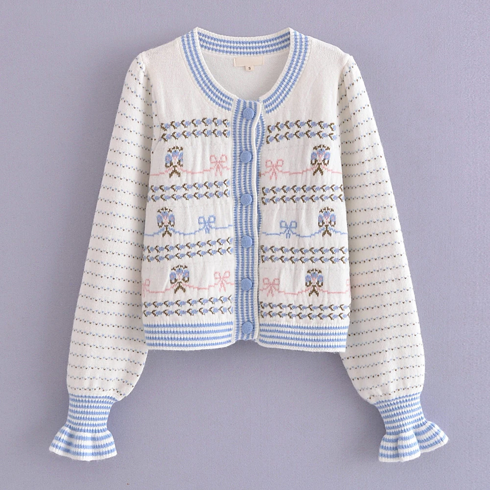 Yipinpay 2024 Fashion Women Single Breasted Cardigan Sweater Coat Vintage Lantern Sleeve Female Autumn Soft Outerwear