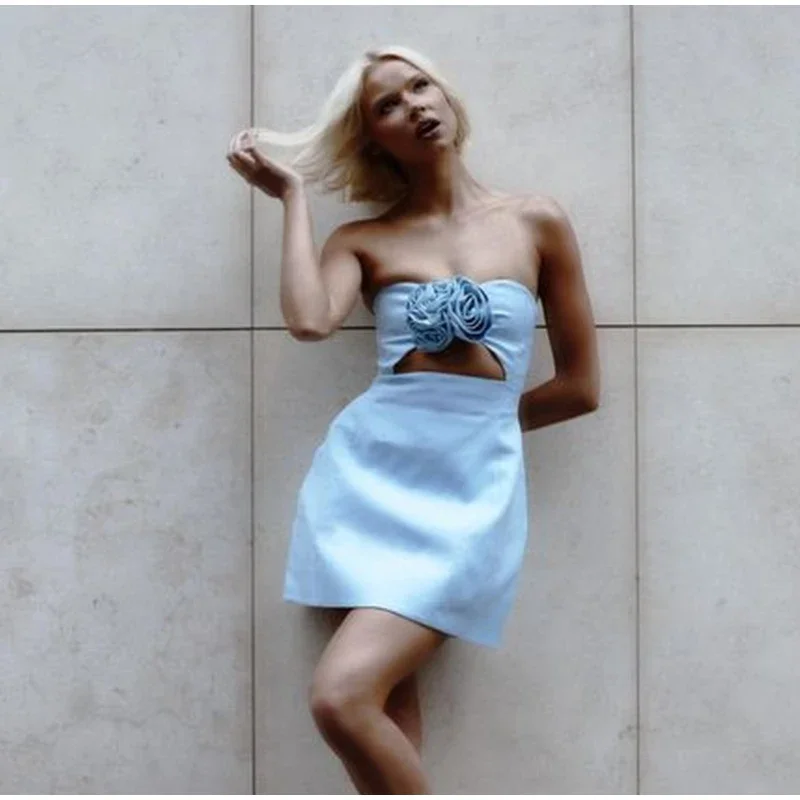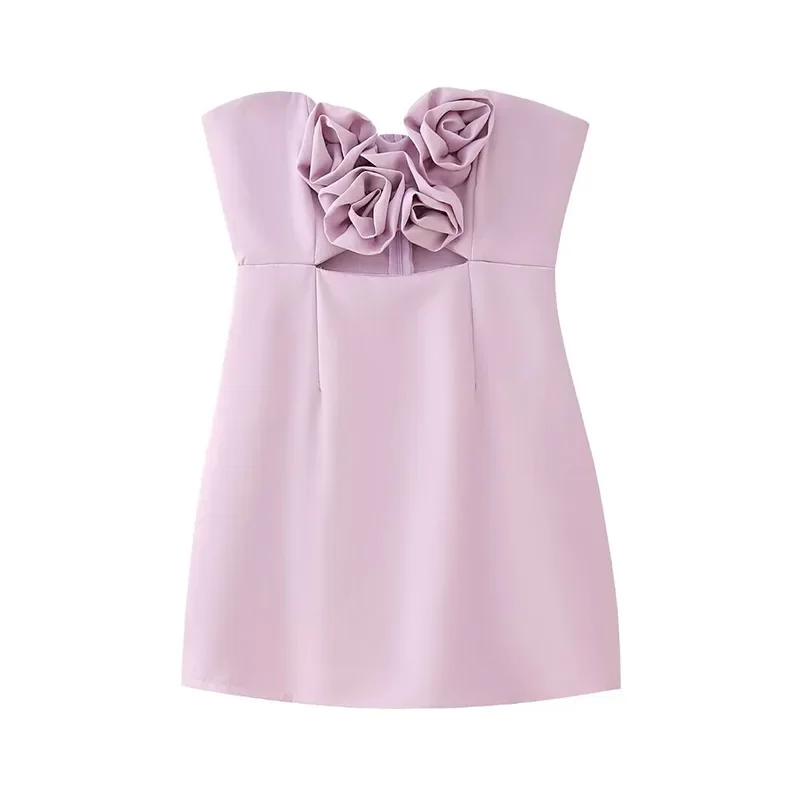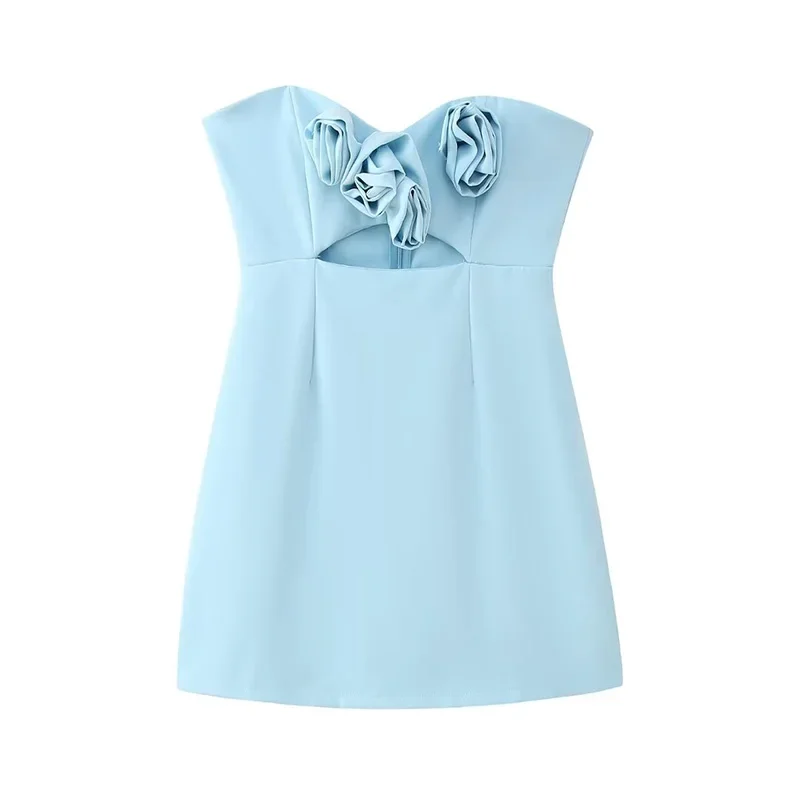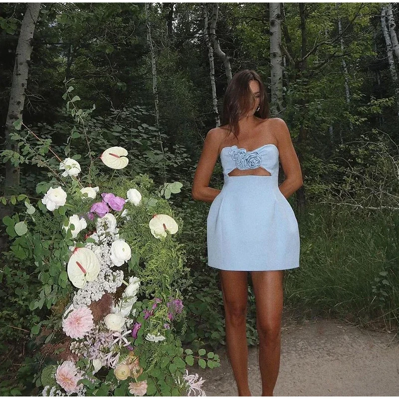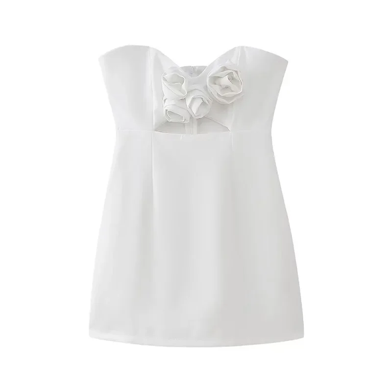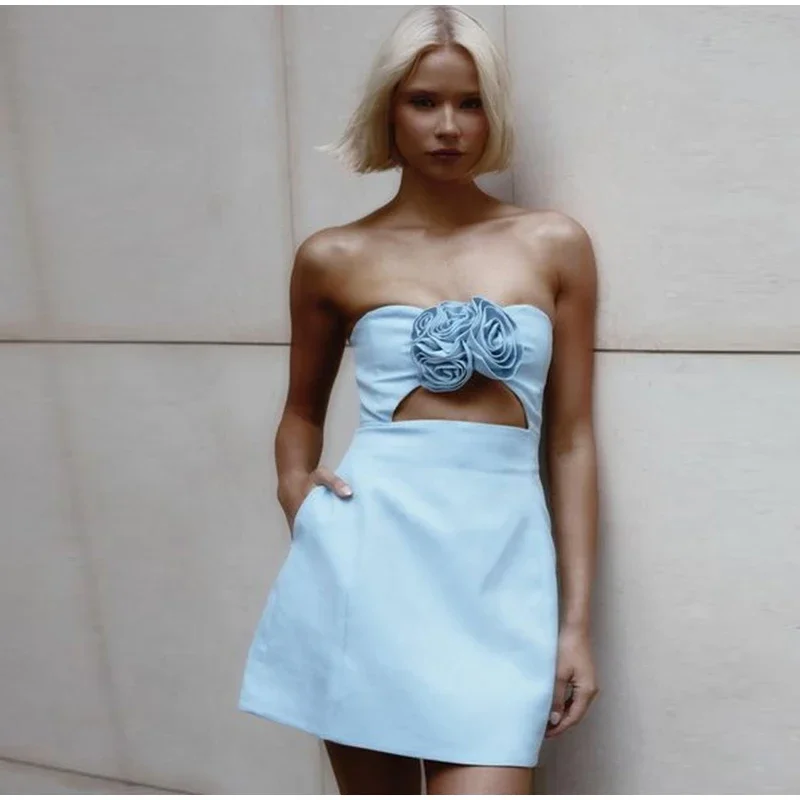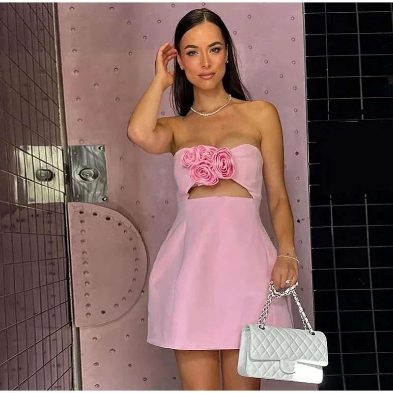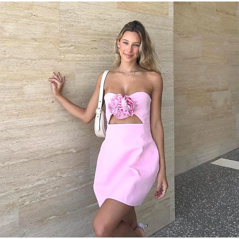 Yipinpay 3D Flower Strapless Dresses Women Hollow Out Sleeveless Backless Mini Dress 2024 Summer Ladies New Evening Party Vestidos