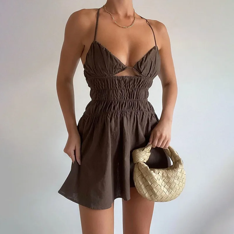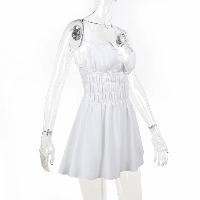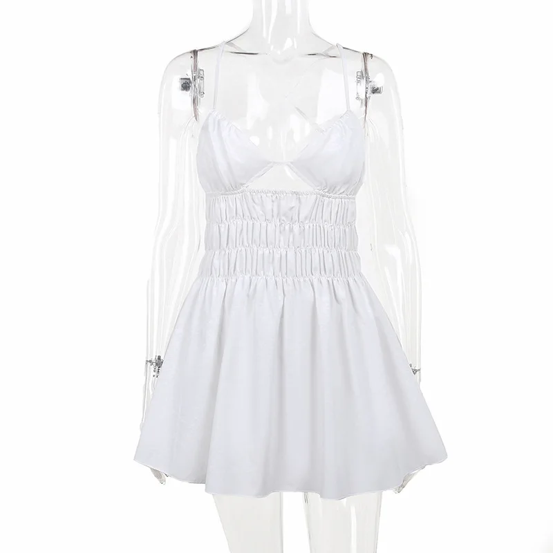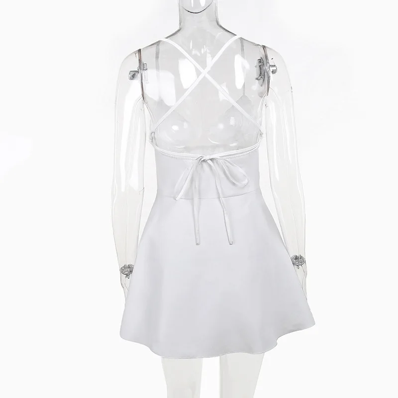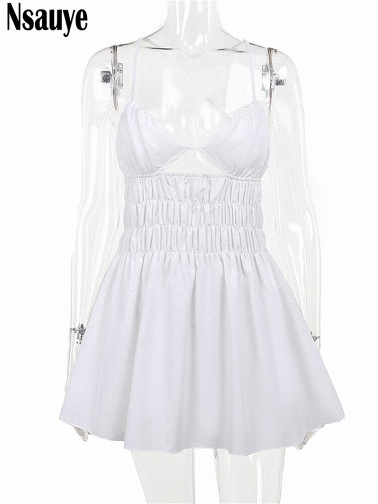 yipinpay A-Line Women Casual Holiday Beach Mini Sexy Hollow Out Summer Dress Outfits Backless White Fashion Party Club Dress Y2K