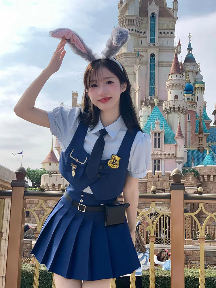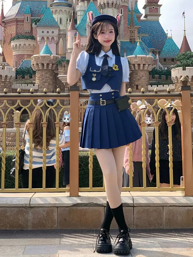 Yipinpay Academy Style JK Uniform Skirts Set Bubble Sleeve Shirt+Vest Cardigan+Pleated Skirt Spicy Girl Three Piece Set for Women