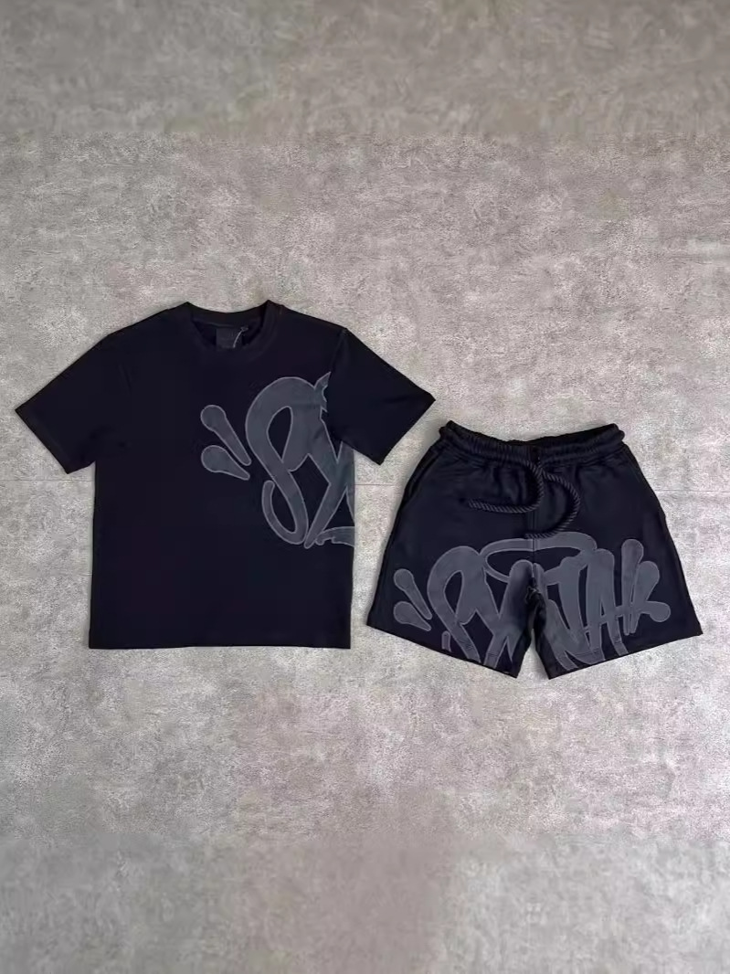 Yipinpay Aesthetic High Street Hip-Hop Printed Letter Short-Sleeved T-Shirt Shorts Men's Summer Tide Brand Leisure Sports Suit