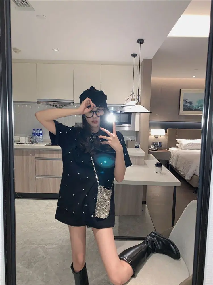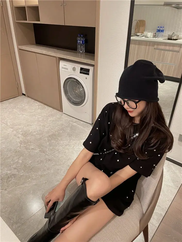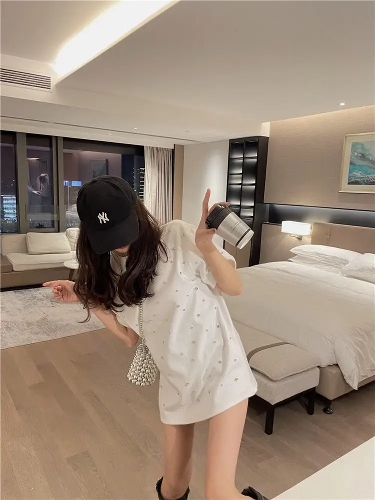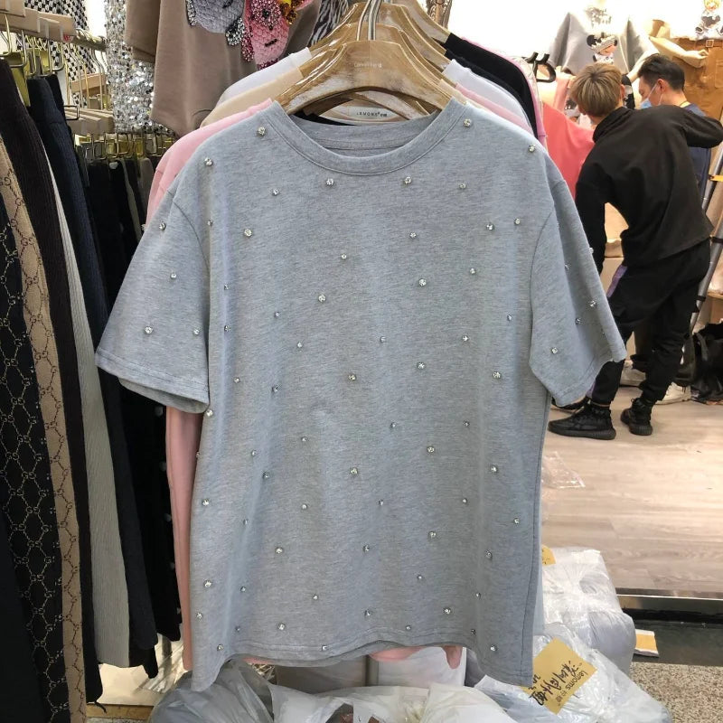 Yipinpay Aesthetics Grunge Graphic T Shirts White Diamond T-shirts Loose Cotton Tops Oversized Tee Y2k O Neck 2023 Summer New