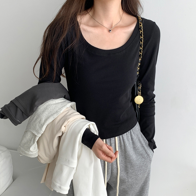 Yipinpay And Slim In Early Autumn, Small Gray T-Shirt Women's New Gentle Underwear Long-Sleeved Blouse